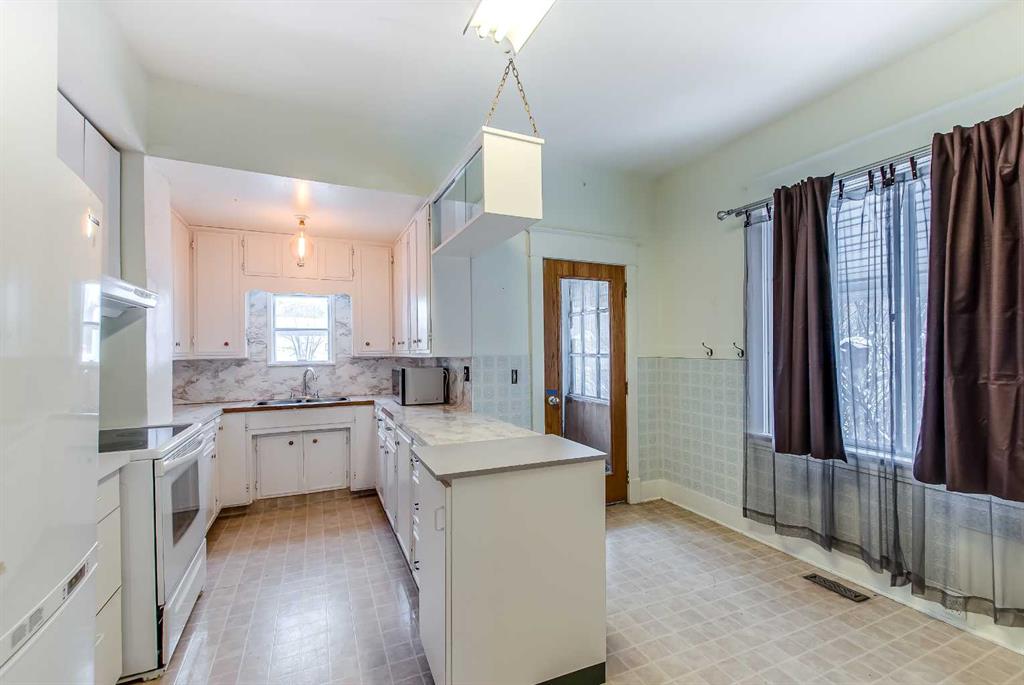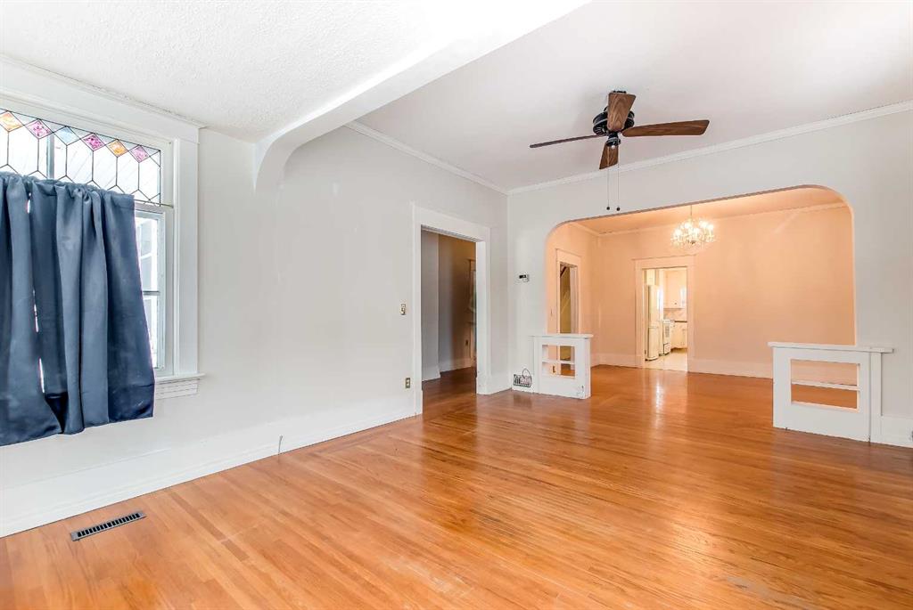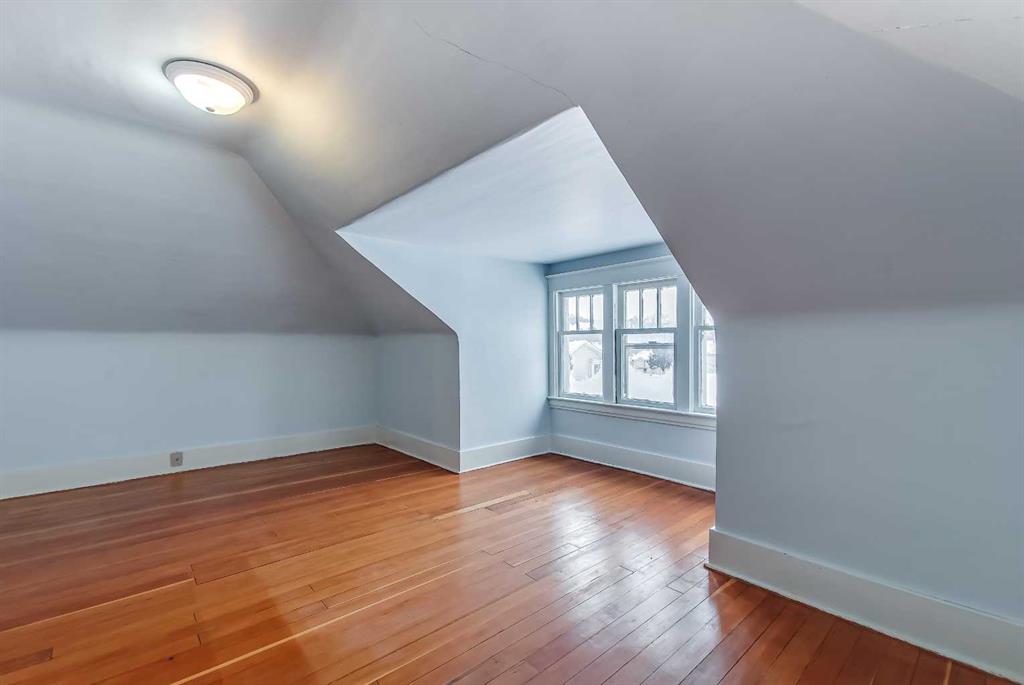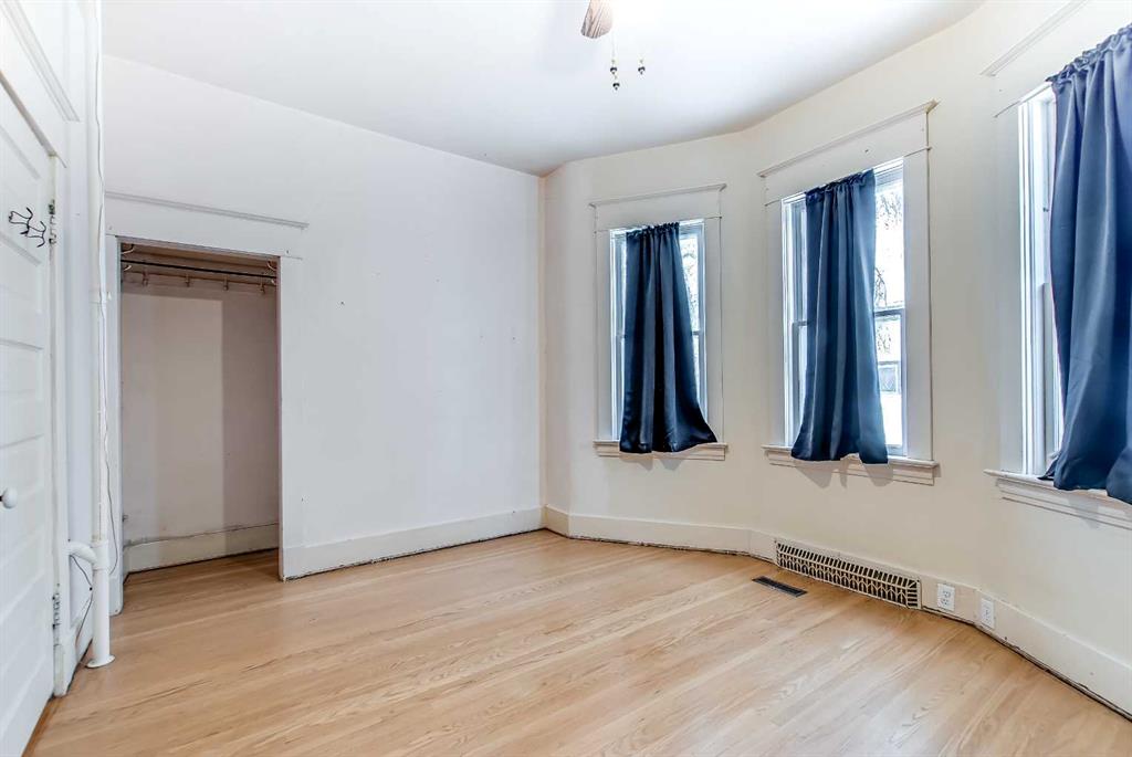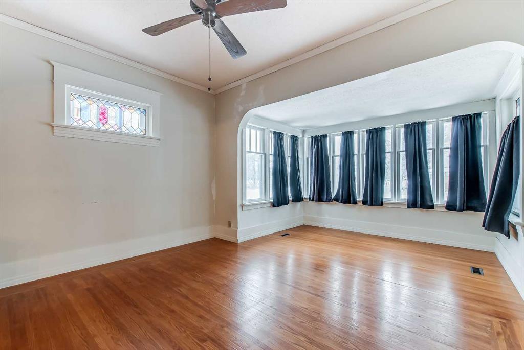 This 1.5-storey, 1,810 sq ft home is full of character and sits on an oversized corner lot in River Flats. The layout offers 5 bedrooms along with a sunroom and a double detached garage. The main floor features beautiful hardwood floors throughout, a large living room with multiple windows, and a spacious dining room that connects nicely to the kitchen. Two main-floor bedrooms, main-floor laundry, and an updated 3-piece bathroom with a clawfoot tub complete this level. Upstairs, you’ll find two additional bedrooms and an unheated sunroom. The basement includes one bedroom (the current window may not meet today’s egress requirements,) a storage room, a 1-piece bathroom, and plenty of space and potential to finish and make it your own. The hot water tank was replaced in 2019. Outside, the large corner lot offers excellent parking with a 28’ x 24’ detached garage, a large asphalt driveway, and an additional front parking pad. An affordable option in a mature, central neighbourhood.