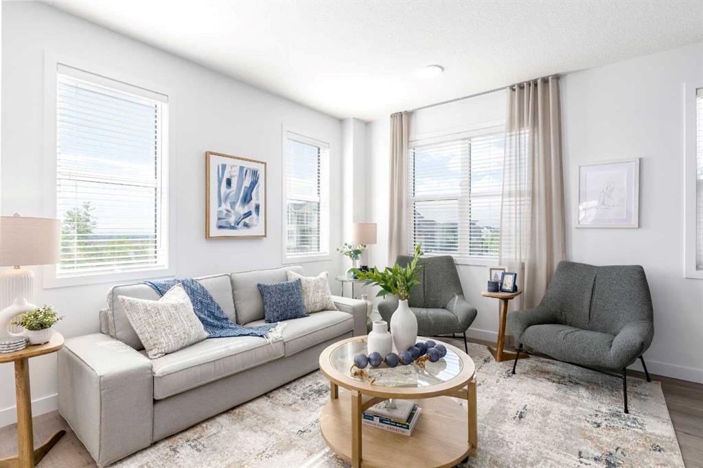 IF YOU’RE BUYING A TOWNHOME, POSITION MATTERS. And being an END UNIT changes the experience immediately. You get WINDOWS ALONG THE SIDE OF THE HOME pulling in extra daylight, only one attached neighbour, and a layout that simply feels more open and residential. Step outside from your east-facing entry, hit the sidewalk, and you’re already on your way—no winding through internal roads or weaving past rows of parked cars just to start a walk. Inside, the design keeps the same confident restraint. Bright cabinetry, QUARTZ COUNTERS, and MATTE BLACK HARDWARE create a clean, modern contrast that feels intentional without trying too hard. The main floor flows the way everyday life tends to unfold—coffee and emails at the KITCHEN ISLAND, groceries landing on the counter after work, and evenings drifting out to the WEST-FACING BALCONY when the sun starts its slow exit. Upstairs, THREE BEDROOMS strike the balance between practical and personal. The primary bedroom stays calm and well-scaled with its own ensuite and a closet that works well for daily life. The additional bedrooms flex easily—guests, office, hobby space, or a combination depending on the season of life you’re in. And the laundry sits exactly where you want it: upstairs, close to the bedrooms, not somewhere you forget about. Downstairs, the TANDEM DOUBLE GARAGE quietly solves more problems than it gets credit for. Two vehicles if you need them, or one vehicle plus bikes, gear, storage, and the inevitable extra freezer that somehow every household ends up owning. The location within the development is another quiet advantage. Positioned near the entrance, getting in and out is refreshingly simple—no maze of private lanes or long internal drives before you reach your door. Just pull in, pull out, and get on with your day. And beyond it all sits Alpine Park—one of southwest Calgary’s most thoughtfully planned new communities. WIDE BOULEVARDS, WALKABLE STREETS, parks placed where you’ll actually use them, and a neighbourhood design that feels intentional from the ground up. IMMEDIATE POSSESSION IS AVAILABLE, with flexibility for the right buyer. All that’s missing now is someone who appreciates good design when they see it. • PLEASE NOTE: Photos are of a finished Showhome of the same model – fit and finish may differ on finished spec home. Interior selections and floorplans shown in photos.