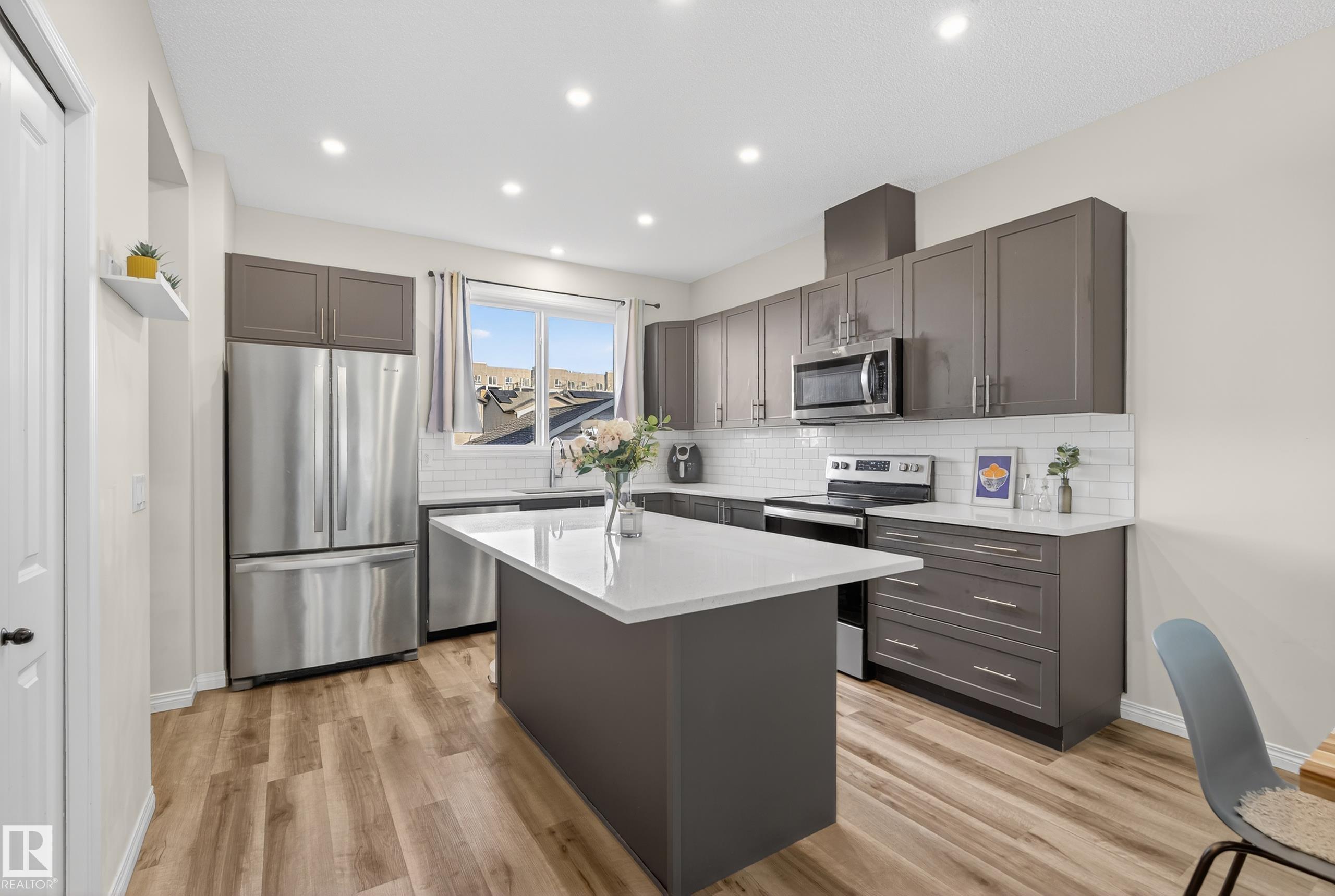 Built by Jayman Homes, this stylish 3-bedroom two-storey offers a perfect blend of modern design and comfort. The open-concept main floor features luxury vinyl plank flooring, a chef’s kitchen with rich dark maple cabinetry, quartz countertops, and stainless steel appliances. Large front windows fill the living and kitchen areas with natural light, creating a warm and inviting atmosphere. Upstairs, you’ll find three bedrooms, including a spacious primary suite with a 4-piece ensuite and walk-in closet, plus a bonus room, laundry area, and a 4-piece main bath. The partially finished basement includes LVP flooring, drywall, and electrical—ready for your finishing touches. Additional highlights include quartz countertops throughout, an HRV system, tankless on-demand hot water, a laundry sink, and solar panels to help reduce energy costs. The fully fenced and landscaped backyard features a deck and a double detached garage. Conveniently located close to schools, shopping, and transit!