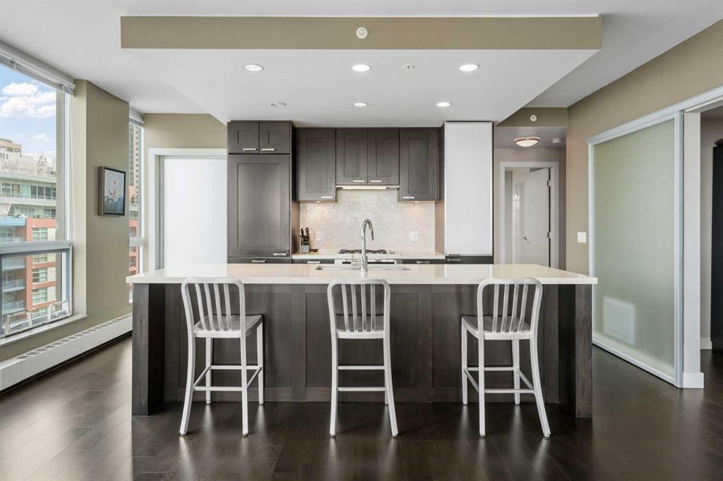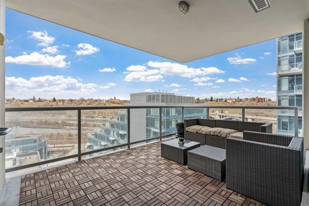 From the moment you arrive, it’s clear this isn’t just a home—it’s a full-service living experience in one of Calgary’s most amenity-rich buildings. This nearly 1,100 sq ft corner unit stands out as an incredible opportunity, offering the space, layout, and features rarely found at this price point in such a sought-after development. Step straight out onto your expansive 150 sq ft patio and take in the captivating river views—an ideal setting for morning coffee or evening unwinding. Inside, the thoughtfully designed layout delivers both function and style with 2 bedrooms, 2 bathrooms, and a versatile den perfect for a home office. The gourmet kitchen is built for entertaining, complete with a gas range, stainless steel and integrated appliances, a pantry, rich espresso cabinetry, and a large island that anchors the space beautifully. The primary suite is a true retreat, featuring continued river views, a walk-through closet, and a luxurious 5-piece ensuite. A well-separated second bedroom ensures comfort and privacy for guests. And yes—two underground side-by-side parking stalls add even more everyday convenience and long-term value. What truly elevates this home is the building itself. Waterfront is renowned for its exceptional, full-service amenities: a professional concierge, an expansive fitness centre, yoga studio, owner’s lounge, indoor jacuzzi, steam rooms, private movie theatre, guest suite, visitor parking, and even a car wash bay. It’s a lifestyle designed for comfort, wellness, and ease—all under one roof. Located just steps from Prince’s Island Park, the Bow River pathways, the +15 network, downtown core, and C-Train access, you’re perfectly positioned to enjoy both nature and city life. This is more than a home—it’s standout value in a premier building, offering space, views, and amenities that are hard to match.