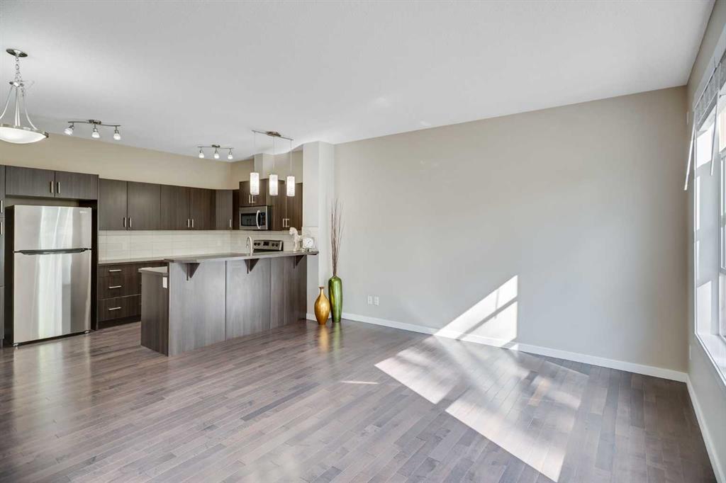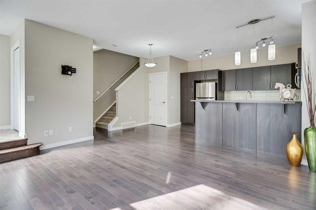 This 2-bedroom townhome with a spacious third-floor bonus room/den offers the perfect blend of comfort, style, and convenience. Set in the heart of Auburn Bay, you’ll enjoy year-round lake access, scenic walking paths, green spaces, and a true sense of community. Families will especially appreciate that the neighbourhood is full of kids and just steps to a nearby school—perfect for an active, connected lifestyle. Spend sunny days paddle boarding, kayaking, or relaxing at the beach, and in winter take advantage of skating, hockey, and more—right in your own neighbourhood. Step inside and be greeted by a bright, open-concept main floor where south-facing windows fill the space with natural light. The kitchen is well-appointed with plenty of counter space, while the adjoining living and dining areas make entertaining effortless. Fresh paint, gleaming hardwood floors, a new fridge (2024), and freshly cleaned carpets ensure this home is move-in ready. Upstairs, you’ll find two generously sized bedrooms plus a huge third-floor bonus room/den—ideal as a home office, playroom, or cozy media retreat. Nestled in a quiet, family-friendly complex with beautifully maintained landscaping, this home also includes two titled parking stalls and low condo fees for peace of mind. All of this in a prime location with quick access to Stoney Trail, Deerfoot Trail, South Health Campus, schools, shops, and Auburn Bay’s countless amenities. Whether you’re a first-time buyer, young family, or downsizer, this townhome is a rare opportunity to enjoy the full Auburn Bay lifestyle.