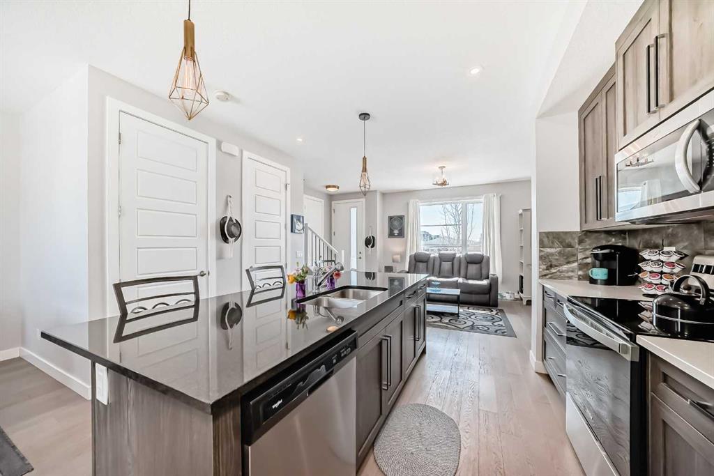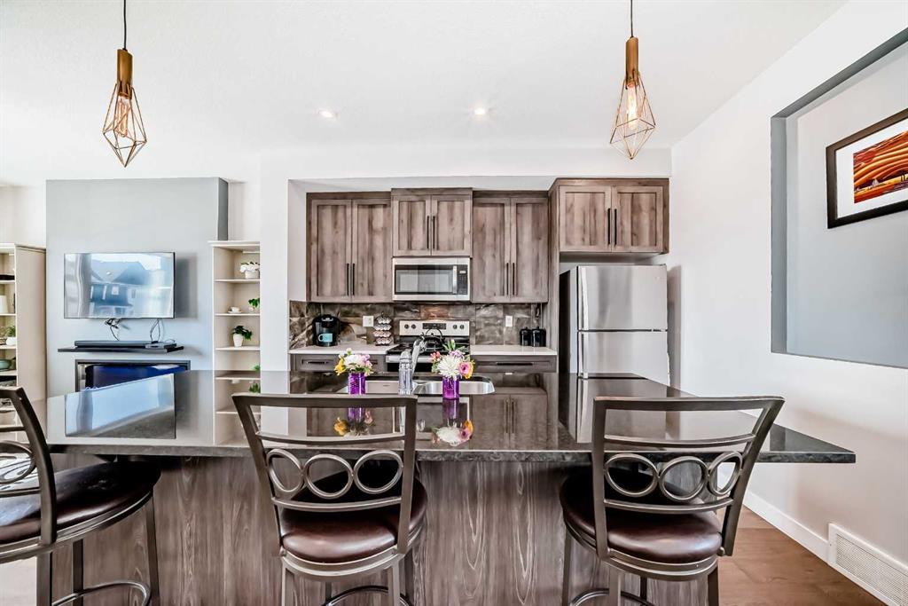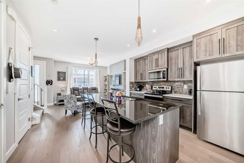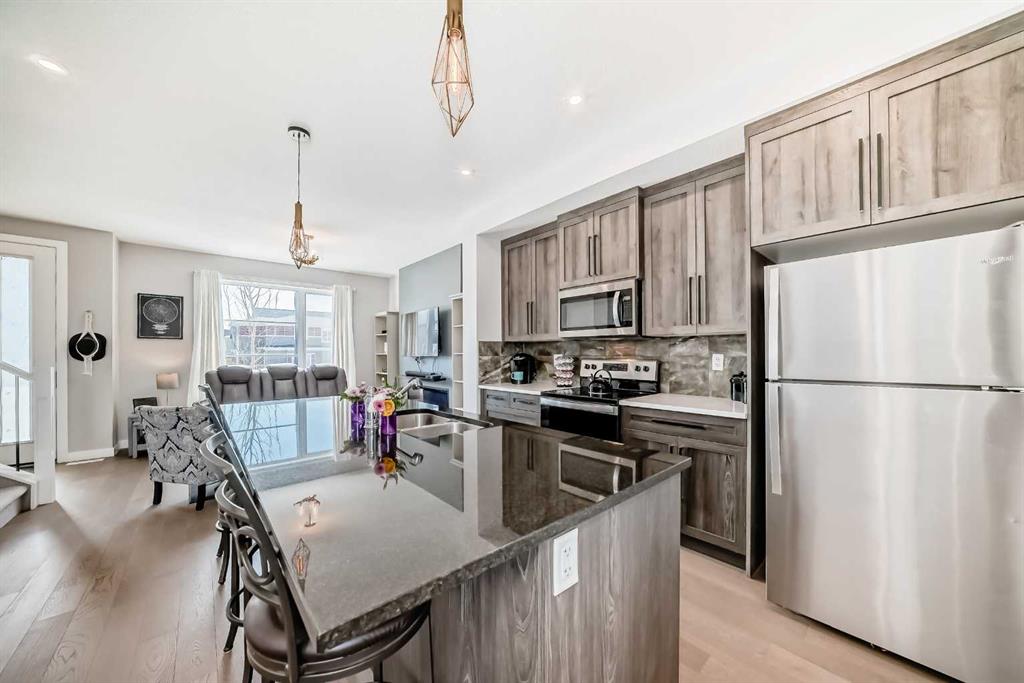 Welcome to Lanark, a community thoughtfully designed with pathways that connect you to scenic parks, playgrounds, picnic areas, soccer fields, a hockey rink, as well as nearby schools and shopping. This beautiful modern three-bedroom townhouse comes with no condo fees. The open-concept main floor is bright and spacious, featuring 9-foot ceilings and an inviting great room with an elegant fireplace. The kitchen is well-appointed with granite countertops, a centre island with breakfast bar, classic cabinetry, and updated stainless steel appliances. A cozy dining nook and convenient powder room complete the main level. Step outside to a rear deck that leads down to a fully landscaped yard, highlighted by a charming walkway to your double garage. The garage is a full double, and the back alley is fully paved for easy access. Upstairs, the primary suite offers a relaxing retreat with a walk-in closet and a four-piece ensuite featuring a granite vanity. Two additional bedrooms and a full four-piece bathroom provide comfort and convenience for the whole family. The unfinished lower level is ready for your personal touch—perfect for creating your dream space. As an added bonus, enjoy a south-facing front porch with a concrete pad, ideal for relaxing outdoors. This home also includes air conditioning for year-round comfort. A true gem with no condo fees—book your viewing today!