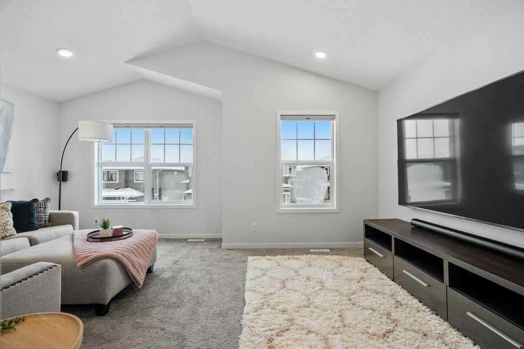 Welcome to this Morrison-built home that stands out for its smart layout, strong separation of spaces, and move-in-ready condition—set on a TRADITIONAL LOT with a fully landscaped and fenced yard. Main Floor The main floor is intentionally designed for both productivity and connection. Durable vinyl plank flooring runs throughout, while a private enclosed front den offers true separation—ideal for working from home or flex use without sacrificing quiet. A bright front entry with 9-foot knockdown ceilings and a generous coat closet creates an immediate sense of openness. The garage entry features a functional mudroom with a broom closet, pocket door, and direct access to a 2-piece bathroom. The open-concept rear of the home flows into a well-proportioned kitchen, dining, and lifestyle space suited for hosting and everyday living. The kitchen features quartz countertops, a central island, extended-height cabinetry, soft-close doors and drawers, tiled backsplash, corner pantry, and a stainless steel appliance package including a French door refrigerator with water line and slide-in range. The lifestyle room offers a cozy electric fireplace, while the dining nook opens to the backyard through a garden door for easy indoor–outdoor flow. Upper Level Carpeted stairs with open railing lead to a bright upper floor anchored by a front bonus room with a vaulted ceiling, ideal for movie nights or a kids’ zone. Laundry is conveniently located on this level with added shelving and dual doors for a clean, streamlined look. Two well-sized secondary bedrooms are positioned near a 4-piece bathroom with quartz countertop, tiled tub surround, and linen closet. Tucked away at the back of the home, the primary retreat offers excellent privacy and space, complete with a walk-in closet and a 5-piece ensuite featuring quartz finishes, a fully tiled shower with 10mm glass enclosure, soaker tub, and private water closet. Basement The unfinished basement is a major value-add, offering a layout that makes future development straightforward. With SIDE-LOCATED STAIRS on a traditional lot, bathroom rough-in, HRV, forced-air furnace, and water softener already in place, the space can accommodate a future bedroom, bathroom, recreation area, and additional storage—ideal for growing families or long-term planning. Outdoor Space The fully landscaped backyard is ready to enjoy, featuring a deck, lower patio, green space, full fencing, and a storage shed. Central air conditioning ensures comfort through Calgary’s warm summer months. Located in a vibrant South Calgary community with quick access to major routes, this home offers everyday convenience without compromising space or livability. Overall, this home delivers a well-balanced combination of quality construction, stylish finishes, and future potential, making it a standout option for buyers seeking comfort and flexibility in a modern family home.