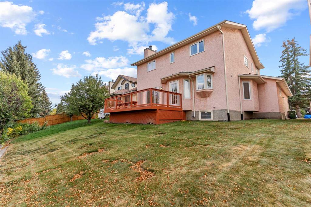 Located in the sought-after community of Santana Estates, this spacious six-bedroom home has been well maintained by its original owner. The property features a double attached garage, central air conditioning, and a recently replaced furnace for year-round comfort. The main floor includes a separate family room, a bedroom, and a full bathroom with a stand-up shower, suitable for guests or multi-generational living. A formal dining room with French doors can also function as a home office. The kitchen connects to a living room with a fireplace and a breakfast nook, with large windows providing natural light throughout the space. Upstairs includes the primary bedroom with a 5-piece ensuite bathroom, three additional bedrooms, and a 4-piece main bathroom. The fully finished basement offers a large recreation area, a sixth bedroom, and another full bathroom. Outside, the property features a large backyard deck surrounded by mature trees. The home is located near schools, off-leash dog parks, green spaces, and essential amenities, with convenient access to downtown, Country Hills Golf Club, Nose Hill Park, Beddington Trail, Deerfoot Trail, and Stoney Trail.
