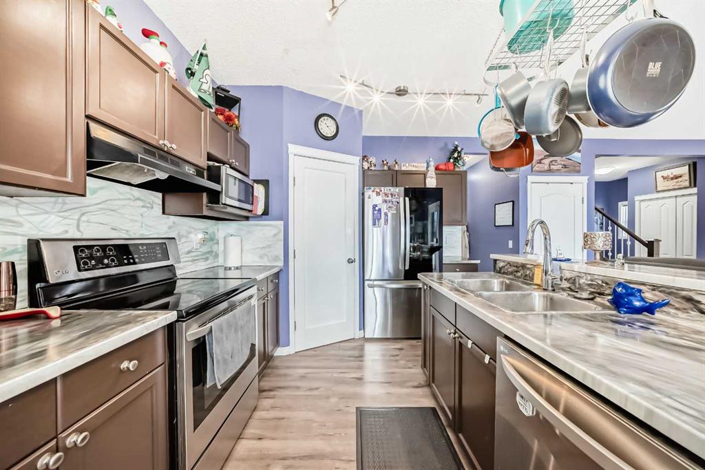 Looking for the home that has it all. You found it! Lake community, walking distance to schools for all ages, golf course, brand new pickleball courts opening soon and all season lake! This home offers a corner lot, 3 plus bedrooms upstairs. The bonus room can also be a fourth bedroom with a closet. Laundry room is also conveniently located upstairs. Mountain views from the large primary and back bedroom. Main floor has new vinyl plank flooring throughout and going up the stairs. All appliances are bought within the last four years including the smart fridge and dishwasher. The new composite deck is a great size for all those out door bbqs. The permanent lights all around the outside of the house helps you light up the family functions. Don't worry about watering. You have irrigation ready to go. You also have Greendrop paid for this spring summer season. You are also lucky to have only one neighbour and a walking path to the parks and loke behind you. Crystal shores in the only LAKE community in Okotoks. It can be enjoyed in the summers for swimming, fishing, kayaking and the beach. Winters you can take the family skating! You are located by 32 street giving you easy and quick access for commuting to the city. Call your favourite realtor to come check out your new home!