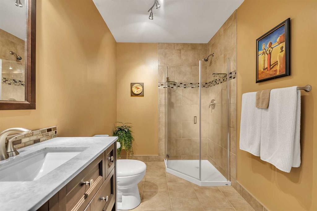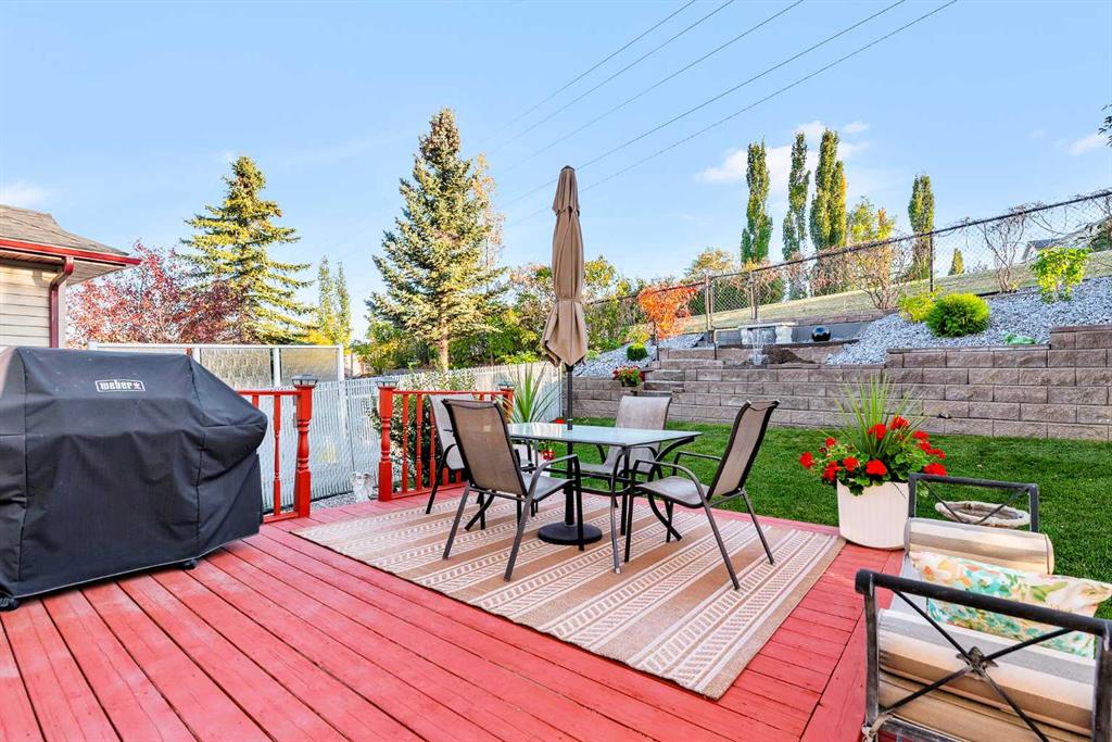 Phenomenally located and set at the end of a whisper quiet street, this Panorama Hills home is stunning inside and out. A neatly landscaped front yard invites you inside, where soaring ceilings and upper storey windows in the entry set a tone of airy natural light that continues throughout. The main living space is bright and open, with windows along the back wall showcasing the south-facing backyard and the green space beyond. Luxury vinyl plank flooring in the living room pairs with the gas fireplace for a sense of cozy warmth. Light maple cabinetry in the kitchen provides a homey elegance, and the eat-up island is sure to be the hub of your gatherings. Newly upgraded appliances include an induction range, and a full pantry makes staying stocked up on snacks easy. Full height windows and a glass pane patio door merge your indoor and outdoor spaces, allowing your summer get-togethers to flow from snacks in the sunny dining area to alfresco eating. New paint throughout enhances the fresh aesthetic, and all the windows are new triple pane. A powder room on this level adds convenience, and the entryway from the double-attached garage includes a washer and dryer and added storage cupboards. Upstairs, the bonus room has its own wing along the front of the house, ideal for families with different bedtimes. New carpet on this level feels luxurious, as do the custom Zebra blinds throughout the home. The primary bedroom is spacious and serene, overlooking the pathway behind the house. This self-contained retreat is complete with blackout blinds, a walk-in closet, and a full ensuite bathroom. Two more bedrooms are generously sized, and the main bathroom design is timeless; perfect for a busy household. Downstairs, the finished basement is the ultimate chill zone. Architectural ceilings and recessed lighting add unique interest, and shiplap wainscoting elevates the style. A dry bar makes this space the perfect game day hangout. Another bedroom and remodeled bathroom are fantastic for guests or a bigger family. Functional upgrades include a Kinetico water softener. Outside, a picturesque, professionally landscaped yard is sure to be your favourite spot. A huge, tiered deck offers lounging, grilling, and eating areas. Kids or pets will love playing in the lush lawn, and the retaining wall was done in a low maintenance style. Stone stairs give you direct access to the green belt and pathway that connects throughout the community to parks, playgrounds, and the local hiking area. This home is also only steps to the newly renovated community centre and the Country Hills shopping area, which holds a vast array of stores, restaurants, and services. Both public and Catholic schools and the transit terminal are nearby – convenient for families and commuters – and the Vivo Centre offers recreation facilities, activities, and a public library just up the street. If you leave the community, Deerfoot and Stoney Trails are close, connecting you to the rest of the city.