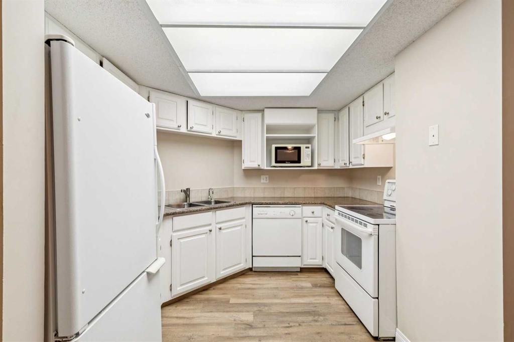 Bayshore Park is a well-managed condo community offering a fantastic location just steps from the many amenities of South Glenmore Park, including an extensive pathway system for walking and cycling, tennis courts, and more. You’ll also appreciate the easy access to shopping, restaurants, transit, and a myriad of other conveniences. With over 1,000 sq ft of living space, this spacious ground-floor condo offers an inviting and highly functional floorplan. The home features a large primary bedroom with full ensuite bathroom, along with an additional guest bathroom. The kitchen boasts crisp white cabinetry and generous counter space, and the adjoining dining area provides the perfect place to gather with family and friends. The bright living room is centered around a cozy wood-burning fireplace. A bright flex space with windows overlooking the courtyard makes an ideal home office, reading nook, or hobby area. You’ll enjoy the convenience of in-suite laundry and a spacious in-unit storage room, plus the added benefit of a separate storage locker and underground parking. The ground-floor location allows you to step directly outside to your large, brand new composite deck with access to the grassy courtyard beyond, and the unit can be accessed from the parking garage without encountering any stairs. Bayshore Park is a responsibly managed, age-restricted (25+) building offering excellent amenities including a hobby and woodworking room, games room, library, and more. Please note that pets are not permitted. This is an excellent opportunity to enjoy comfortable, low-maintenance living in a prime location. Call your favorite Realtor to schedule a private viewing!