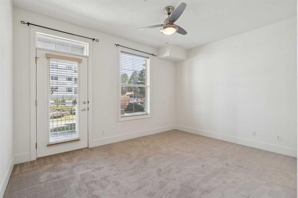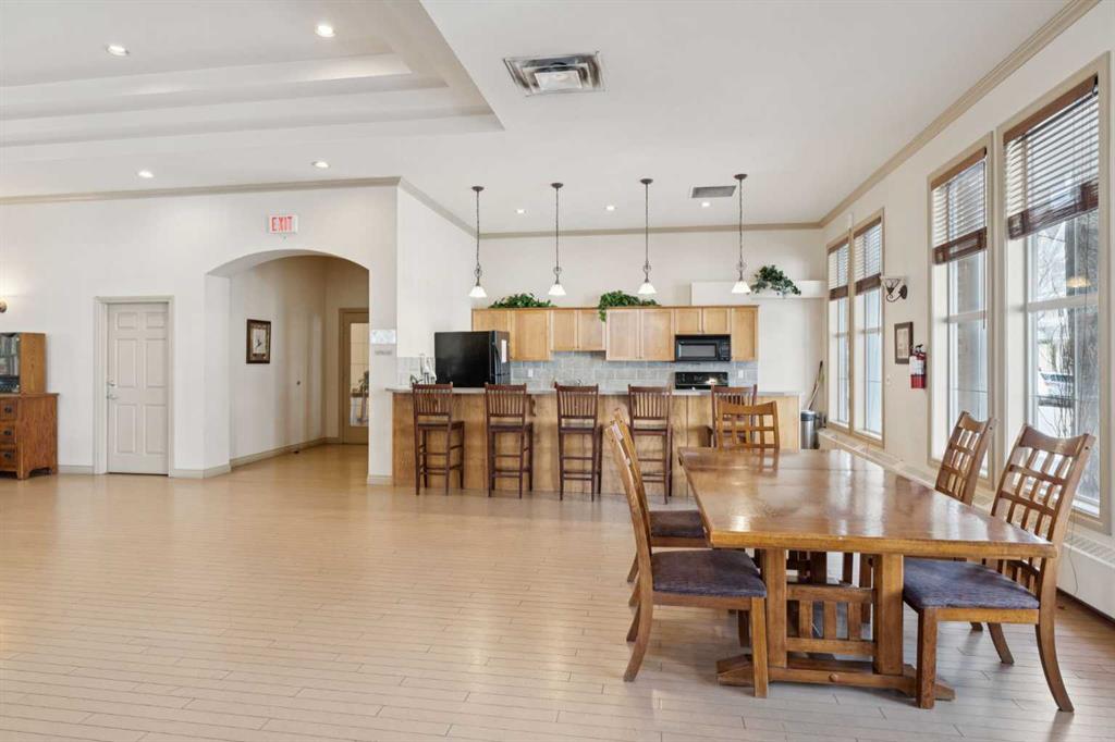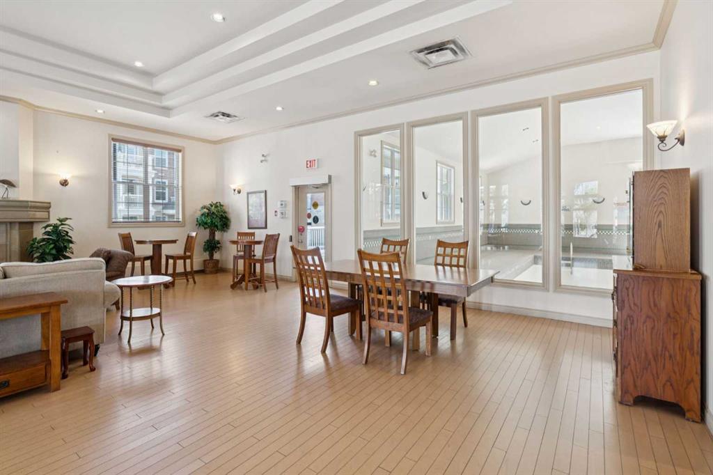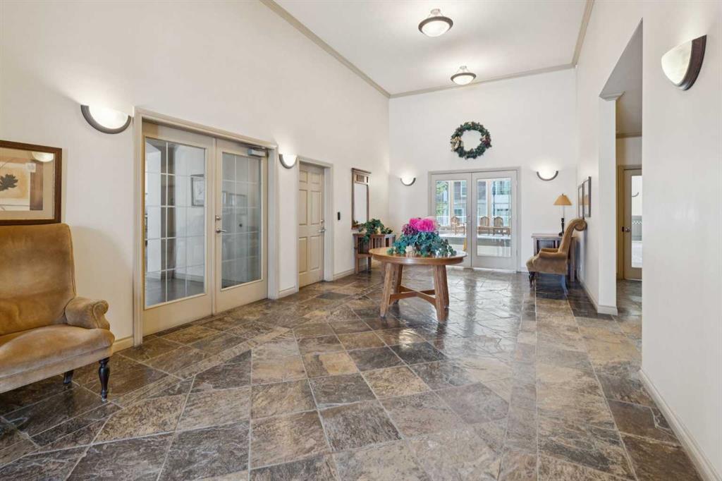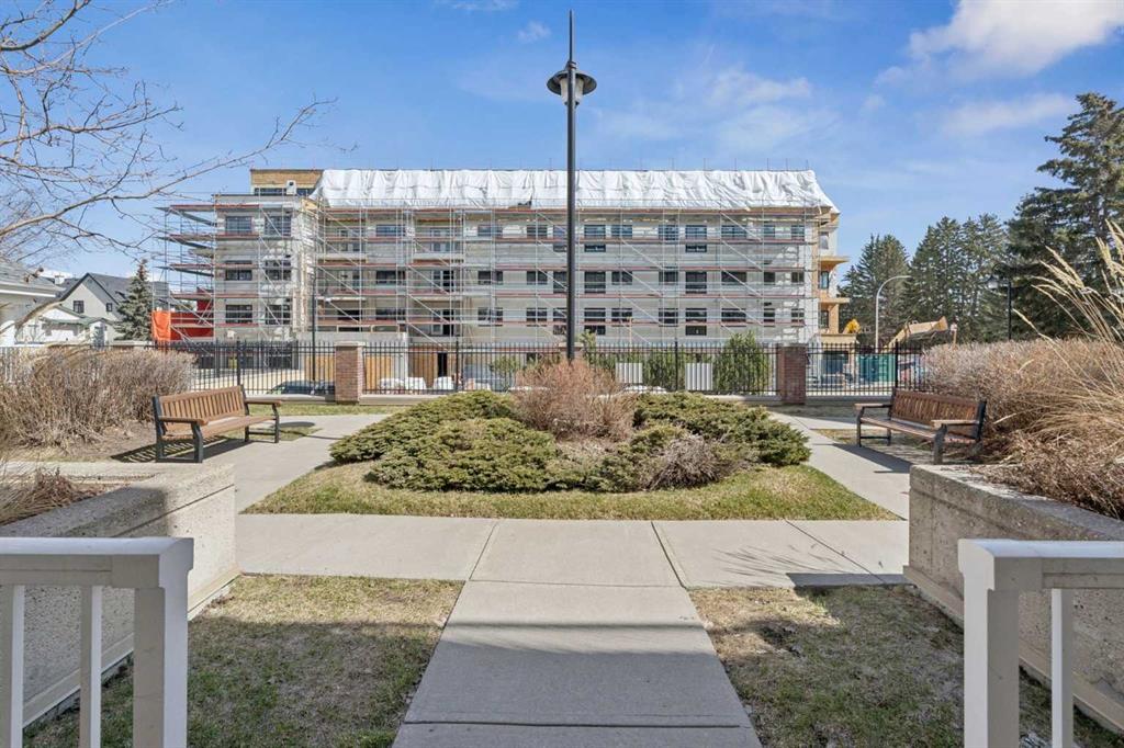 This premier main floor residence within the prestigious Courtyards of Garrison Woods offers a sophisticated blend of executive style and effortless accessibility. Located in a secured +18 adult living building, this one bedroom, one bathroom floor plan is designed for the discerning homeowner who prioritizes both scale and functionality, featuring an expansive open concept layout enhanced by high ceilings. The principal living area is anchored by a dedicated dining space, a rare find in urban condominiums that allows for authentic hosting and formal gatherings. For the modern professional, a concealed built-in desk provides a streamlined "tuck-away" office solution. The interior living transitions naturally to a private back patio, providing a distinct advantage for outdoor grilling and social engagement. This exterior retreat offers direct access to the beautifully landscaped courtyard and visitor parking. Residents of The Courtyards of Garrison Woods benefit from an exceptional suite of clubhouse amenities, including a private indoor pool, a fitness center, and a complete social room tailored for larger events. Situated in one of Calgary’s most walkable enclaves, this residence represents a unique opportunity for a refined, adult-oriented urban lifestyle in a highly sought-after location.