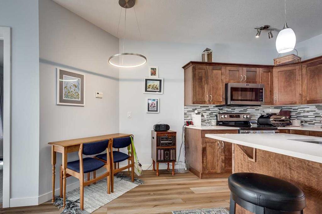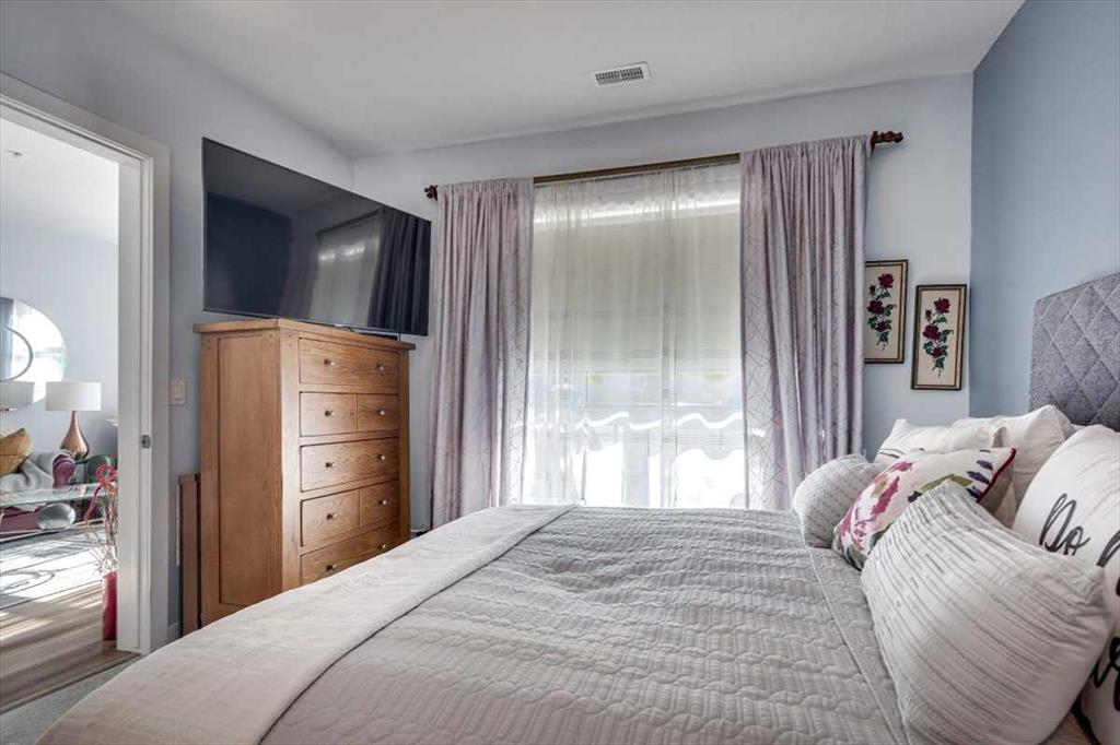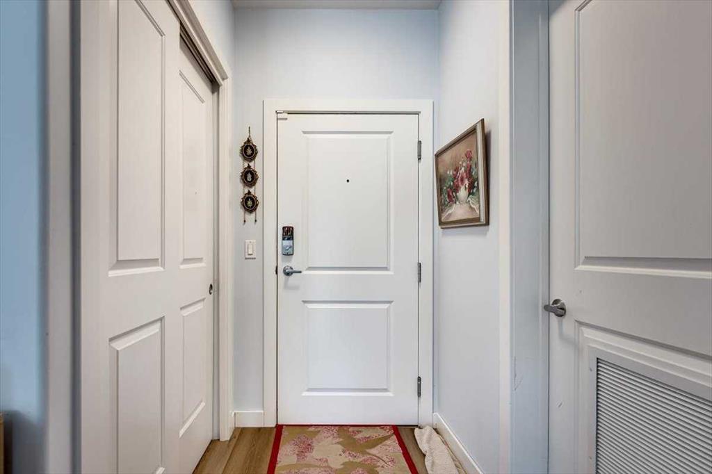 Impressive and Modern! This beautifully updated 2-bedroom, 2-bathroom condo offers style, comfort, and convenience in a sought-after building close to the hospital and all amenities. The bright, open layout features 10-ft ceilings and durable vinyl plank flooring throughout the kitchen and living room. The well-designed kitchen includes a pantry, center island with eating bar, quartz countertops, newer stainless steel appliances, and a built-in hutch for extra storage. The spacious primary bedroom offers a large window, a walk-through closet with custom Canadian Closet shelving, and a stunning 4-piece ensuite with glass shower, built-in seat, and an 8-ft double vanity. The second bedroom is versatile—perfect for guests or a home office—and comes complete with a Murphy bed. Enjoy the convenience of in-suite laundry and modern lighting throughout. Step outside to your huge, sunny south-facing deck overlooking a peaceful treed reserve—ideal for relaxing, entertaining, or letting a small pet enjoy the outdoors. Heated underground parking (titled stall) ensures comfort all year round. Residents enjoy fantastic amenities including a theatre room, rooftop terrace, fitness room, games area, and party room.