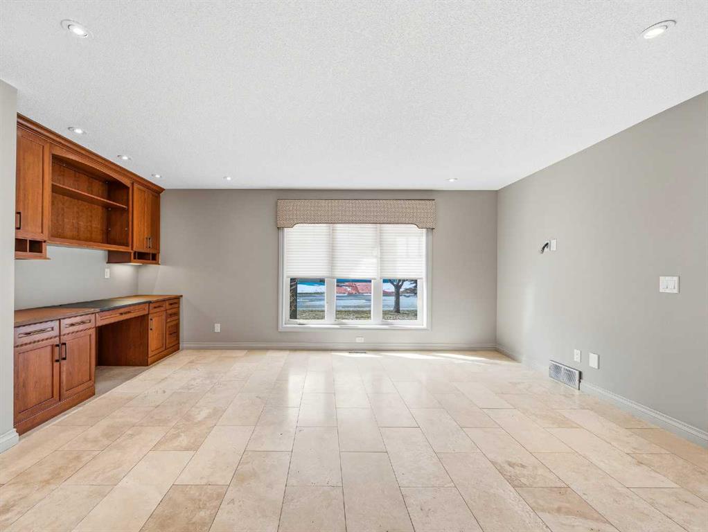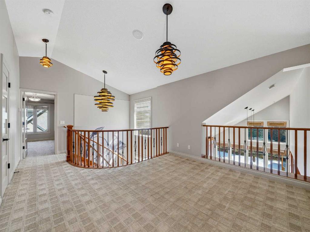 Master bedroom on the MAIN level | Rebuilt Luxury on a Massive Lot Completely redesigned, expanded, and rebuilt in 2011, this exceptional home sits on a huge lot offering a rare “country feel” in one of Calgary’s most established communities. Taken to the studs in 2011, it features updated mechanical systems, windows, roof, and exterior — delivering modern comfort with timeless quality. The bright, open main floor showcases a stunning spiral cherry staircase, dual-sided fireplace, and seamless flow between the living, dining, and family spaces. The main floor primary retreat offers a luxurious 5-piece ensuite. Upstairs features a unique loft-style gallery, two bedrooms (one with a secret room), a 5-piece bath, and convenient upper laundry. The fully developed basement is built for entertaining with a two-tier theatre room, games area, curved feature wall, and an impressive wet bar, beverage fridge, and dishwasher. A fourth bedroom, full bath, and wine/storage room complete the space. Outside, enjoy a triple heated garage with built-in shed, underground sprinklers, wrought iron fencing, and a spacious hardwood deck. A rare opportunity in Willow Park Estates — beautifully rebuilt, move-in ready, and tough to replace at this price.