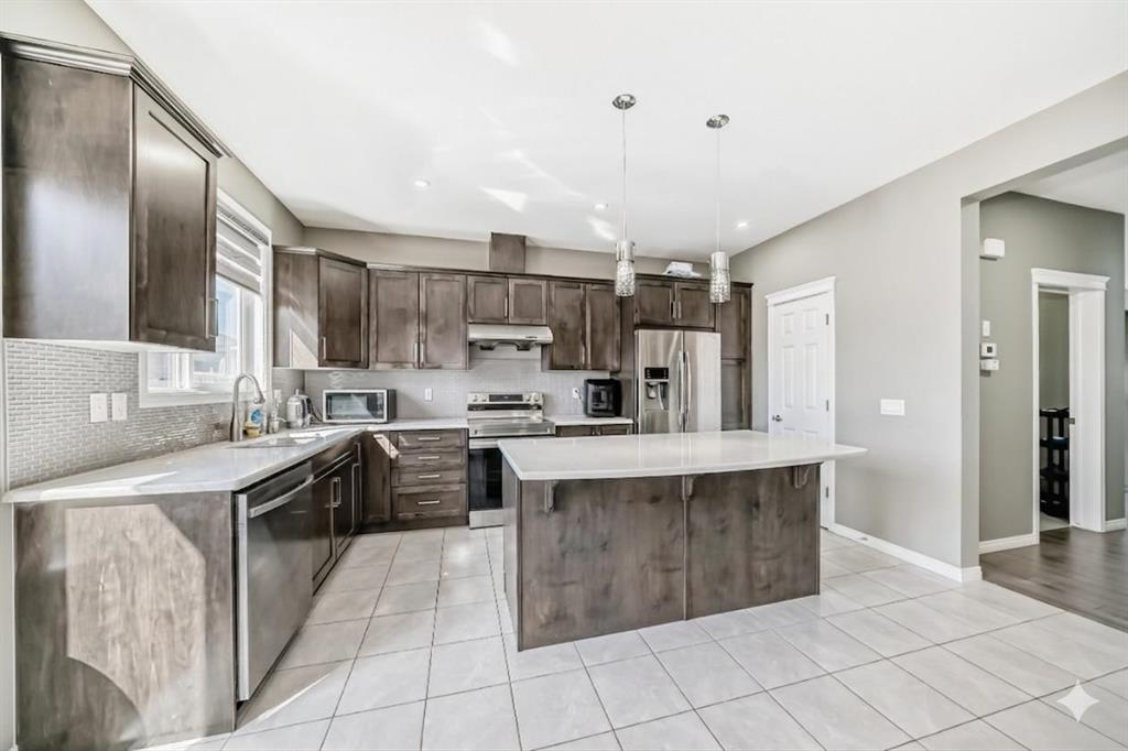 Welcome to this exceptional, fully developed 5 level split home perfectly positioned on a premium pond-facing lot in the sought-after community of Cityscape! Offering over 3,000+ sq.ft. of developed living space, this beautifully maintained residence combines luxury, space, and functionality for the growing family. From the moment you arrive, you’ll be impressed by the striking curb appeal, oversized double attached garage, and inviting front entry. Step inside to discover a bright open-concept main floor featuring soaring ceilings, elegant finishes, a spacious living room, large dining area, convenient main floor laundry, and a stunning chef-inspired kitchen complete with stainless steel appliances, oversized island, pantry, and abundant cabinetry. Large windows flood the home with natural light while showcasing breathtaking views of the pond and greenspace directly across the street. Upstairs offers a rare and highly desirable layout with a massive bonus room that opens to your own private front balcony—perfect for morning coffee while enjoying the scenic water views. The upper level also features 4 spacious bedrooms, including a generous primary retreat with walk-in closet and private ensuite, plus an additional full bathroom for the family. The professionally finished basement adds even more value with a huge recreation/family room, stylish wet bar area, full bathroom, and endless possibilities for entertaining or future customization. Enjoy summer evenings in the fully fenced backyard with deck, plus separate side access to the basement. Located close to parks, schools, shopping, transit, and major roadways, this is the perfect blend of location, layout, and lifestyle. Homes with this much space, a finished basement, balcony, and pond views rarely come available—book your private showing today!