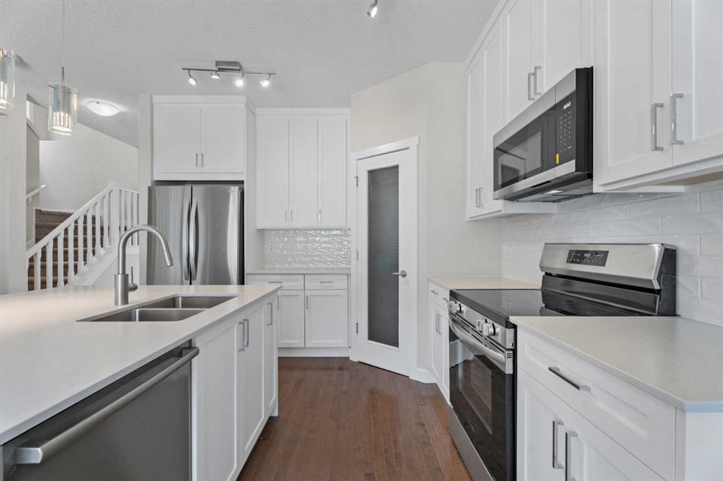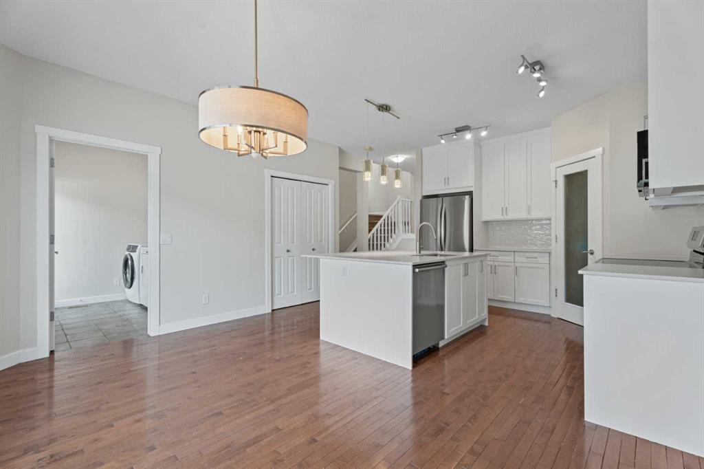 Welcome to this beautiful detached two storey home offering 2,431 sq. ft. of developed living space, complete with 4 bedrooms and 3.5 bathrooms, 21’4”x 21’1” detached garage, paved laneway, plus an additional covered carport. Ceramic and hardwood flooring carries through the main, with fresh carpet upstairs, and LVP at the lower level. This home was part of Drake Landing Solar Community, decommissioned in 2024 this home was converted to traditional heating systems, all the homes’ major components are freshly installed! Roof 18 months new, Stove, Fridge within 2yrs. Kitchen just received a new facelift as well. Home also includes AirConditioning. Inside, you’re greeted by a bright foyer with Neutral finishes that carry throughout this freshly painted home. The living room feels warm and comfortable, centered around a gas fireplace, an ideal spot to relax or entertain. The kitchen truly anchors the main level, showcasing updated cabinetry, quartz countertops, stainless steel/black appliances, and a central island perfect for prep or casual meals. Laundry on the main is conveniently tucked near the back entry. The main level half bath is centrally located within the main level. Upstairs, you’ll find three bedrooms, including a spacious primary suite with a walk in closet and a private 4 piece ensuite. The additional two bedrooms are well sized and share a 4 piece bathroom. The fully finished basement offers even more living space with a large family/rec room, a fourth bedroom, and a 3 piece bathroom perfect for guests or teens. Did I mention the mechanical room – with NEW Furnace and Hot Water Tank. Outside, the home is sitting on a generous 4130 sq. ft. lot. With a mature tree in the front for added privacy. Low maintenance garden beds fully fenced back yard features a deck and lots of space ideal for summer evenings or letting kids and pets play. Drake Landing is a vibrant, family friendly community with parks, pathways, playgrounds, and nearby schools, including French and English elementary and high schools just a short walk away. You’re also close to shopping, amenities, and major routes. This home is truly move in ready and offers the perfect blend of space, style, and location in one of Okotoks’ most sought after neighbourhoods.