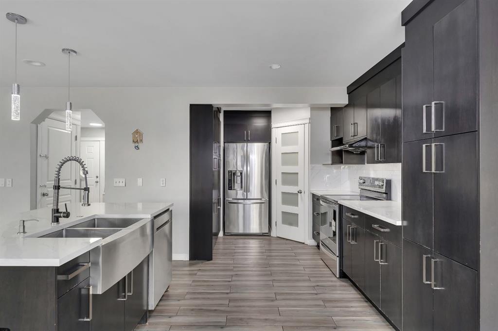 PRICED TO SELL!!! Welcome to this stunning fully upgraded east-facing 2-storey home in the desirable community of Saddlebrook, perfectly situatedbacking onto GREENSPACE, PARK AND SCHOOL. This elegant residence features 3 bedrooms, 2.5 baths, and a professionally finished basement witha separate entry. The main floor offers a spacious, sun-filled family room and a beautifully renovated gourmet kitchen complete with granitecountertops, a pantry, island, electric stove, and refrigerator. A charming dining nook overlooks the backyard, while the convenience of main floorlaundry and elegant ceramic tile flooring add to the home’s appeal. Upstairs, the luxurious primary suite boasts a walk-in closet and upgraded ensuitewith a multifunction shower panel and glass doors. Two additional bedrooms and a generous bonus room with a cozy corner fireplace complete theupper level, which features modern laminate flooring and no popcorn ceilings. The basement provides excellent versatility with a one-bedroom pluslarge den setup, a full kitchen, and a 4-piece bath—ideal for extended family or rental potential (illegal suite). Outside, the yard includes qualityconcrete work and a 10x10 storage shed, and the heated garage is equipped with a 50,000 BTU Big Maxx Mr. Heater and Costco panel storage foroptimal organization. Conveniently located near bus stops, Genesis Centre, Saddletowne C-Train Station, schools, and all major amenities, thisbeautifully upgraded home offers the perfect blend of comfort, style, and functionality. DON'T MISS THIS OPPORTUNITY FOR OWNING THIS HOMEBACKING ONTO GREEN SPACE! BOOK YOUR SHOWING TODAY!!!