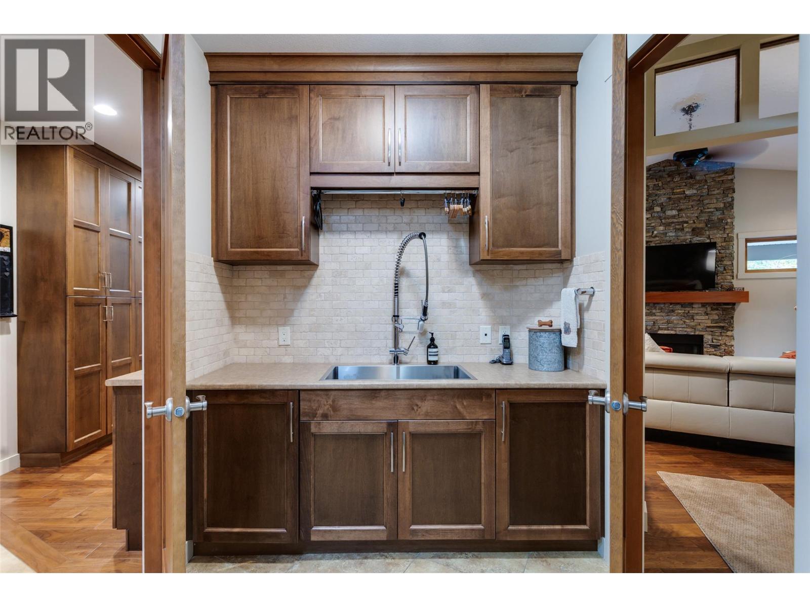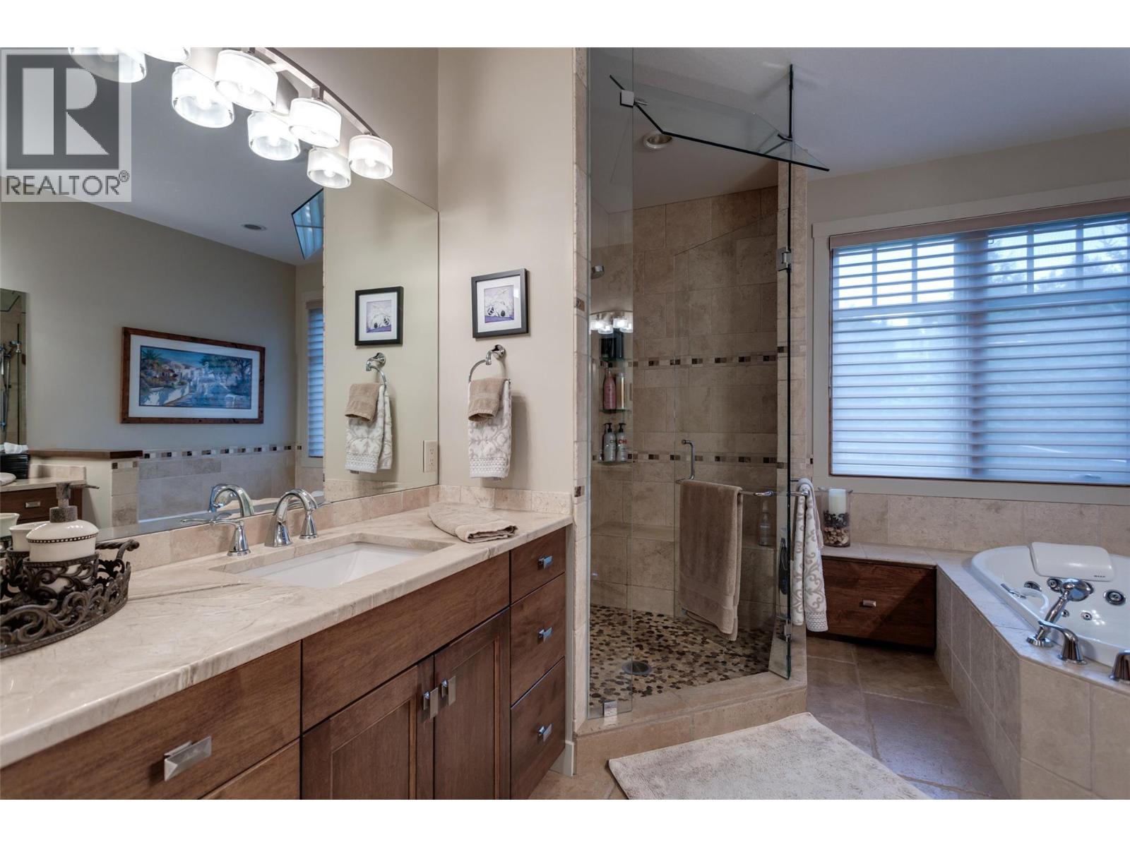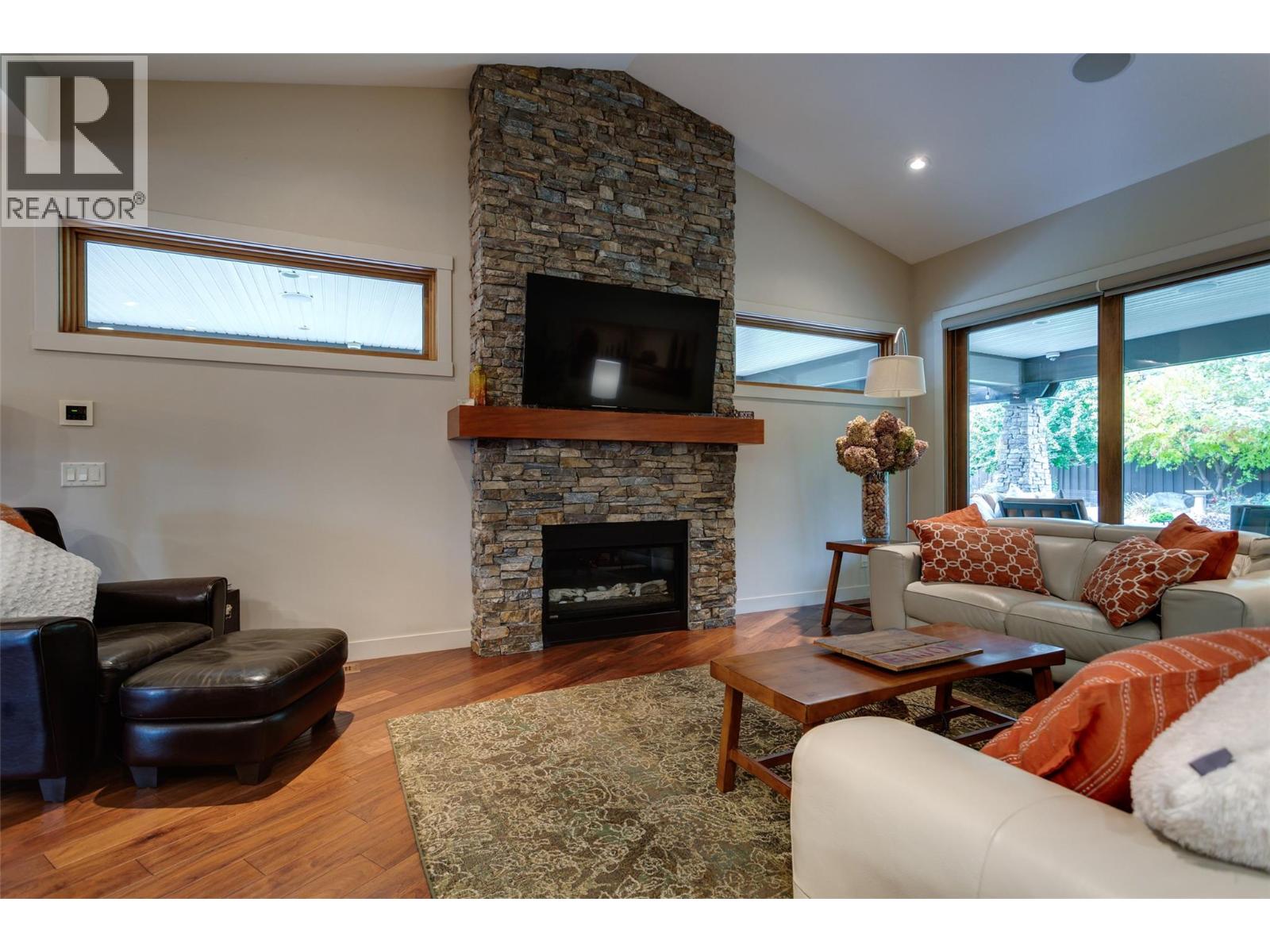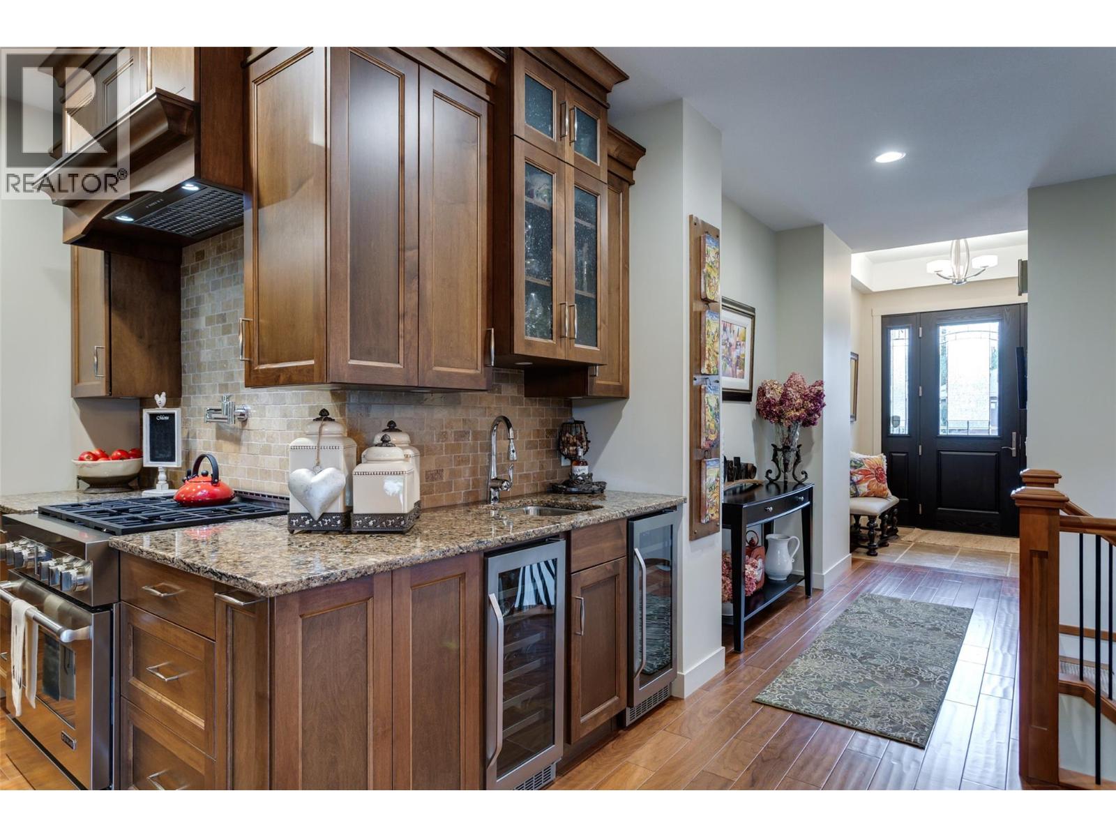 First time on the market for this gorgeous, custom built rancher with a full basement. Luxuriously appointed, this 3 bed/3 bath executive home boasts a large, fully landscaped and fenced lot. With incredible architectural touches like the cocktail patio off the office at the front of the home, soaring vaulted ceilings, 2 floor to ceiling stone fireplaces, gourmet kitchen with 6 burner gas range as well as electric wall oven, custom wine room and a drive through, triple garage which is a homeowners dream ... this home has it all and is centrally located within minutes to downtown, shopping, dining and the lake. The tranquil master also suite boasts heated ensuite floors and a jetted tub. Enjoy a perfect backyard for entertaining and gardening with covered patios and expansive grassy space for the kids and pets or plenty of room for a pool. There is so much to see and enjoy in this incredible home nestled in a corner cul-de-sac in prestigious Bridges in Glenview Ponds. This private strata community enjoys a private park with water features and a low strata fee of only $350 per month .The geothermal heating and cooling also ensures reasonable utility costs. Call today for your private tour and come home to the Okanagan's best!