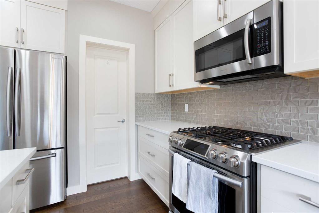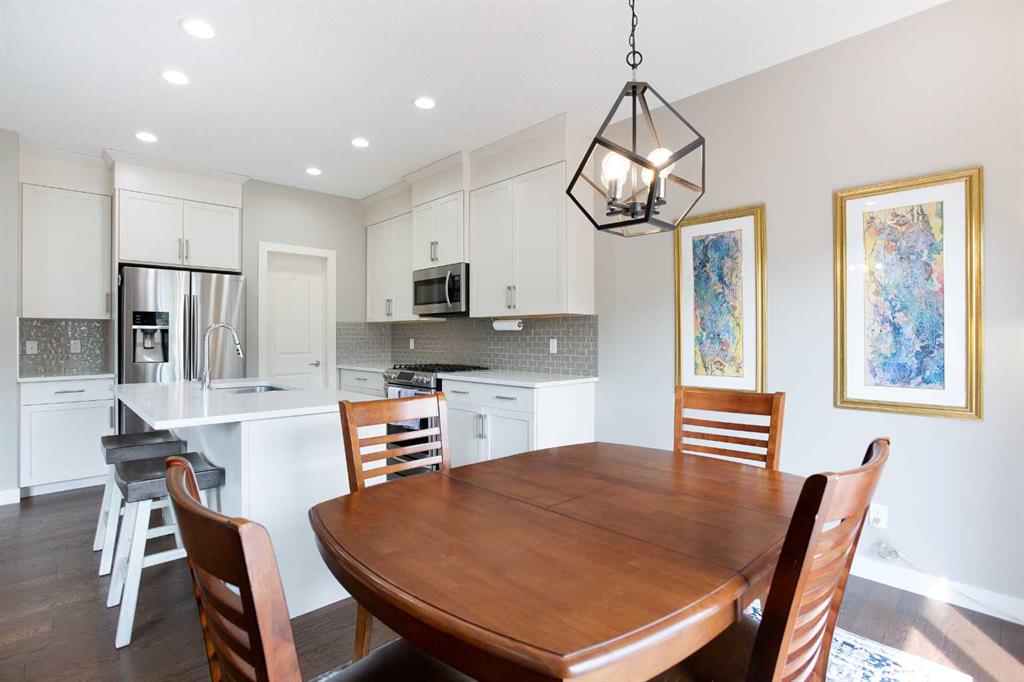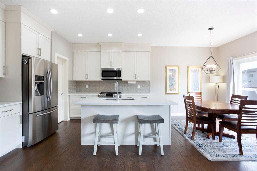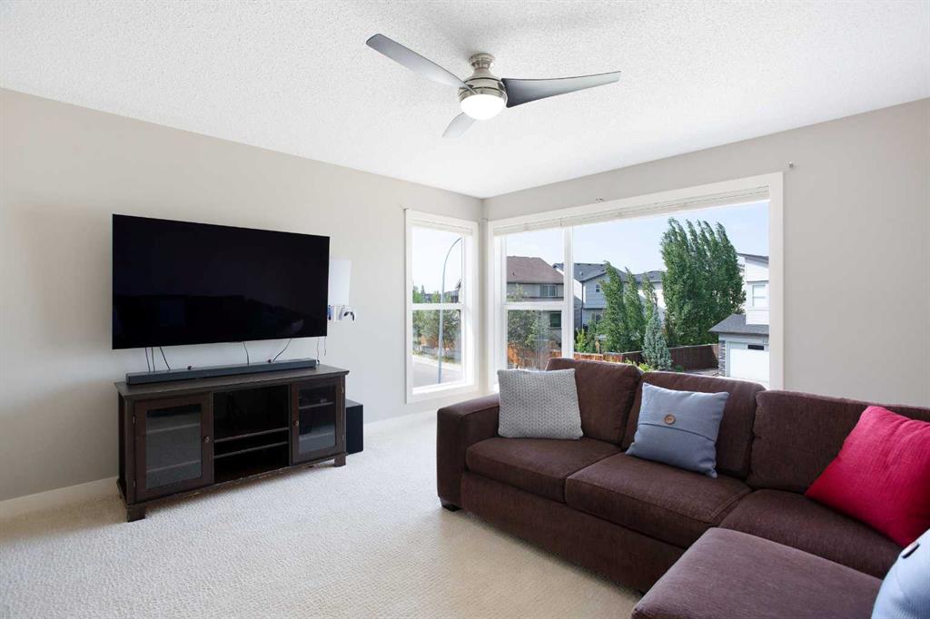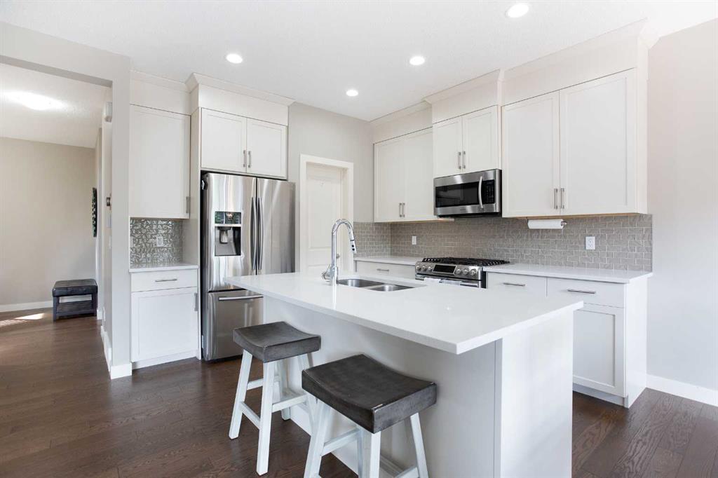 Welcome to this air-conditioned, move-in ready home just steps from the park, green space, and shopping. Located on a quiet street, this property offers over 1,800 square feet of functional living space with upgrades throughout. The main floor features 9-foot ceilings, hardwood floors, and a spacious open-concept layout. The kitchen is built for both function and style, featuring sleek white cabinetry, a massive central island, quartz countertops, and an abundance of storage. A convenient walk-through pantry connects directly to the mudroom and garage, making grocery hauls effortless. The dining area opens onto a sunny south-facing deck and a private backyard—perfect for summer gatherings—while the bright and airy living room, anchored by oversized windows and a gas fireplace, offers a warm and welcoming space to relax or entertain. Upstairs, the primary bedroom easily fits a king-sized bed with room to spare, and includes a walk-in closet and a full ensuite with an oversized shower. Laundry is conveniently located just outside the primary suite. Two generously sized kids' bedrooms share a full bathroom down the hall. The showstopper? A massive bonus room over the garage with oversized windows that flood the space with natural light—perfect for a playroom or media space. The basement is untouched and ready for your future development. You’ll love the easy access to top-rated schools, scenic walking and biking trails, and a full range of amenities—from grocery stores and fitness centers to coffee shops, restaurants, and the vibrant Gates of Walden shopping district—all just minutes from your front door. Freshly painted, professionally cleaned, and ready for your to make it your new home.
