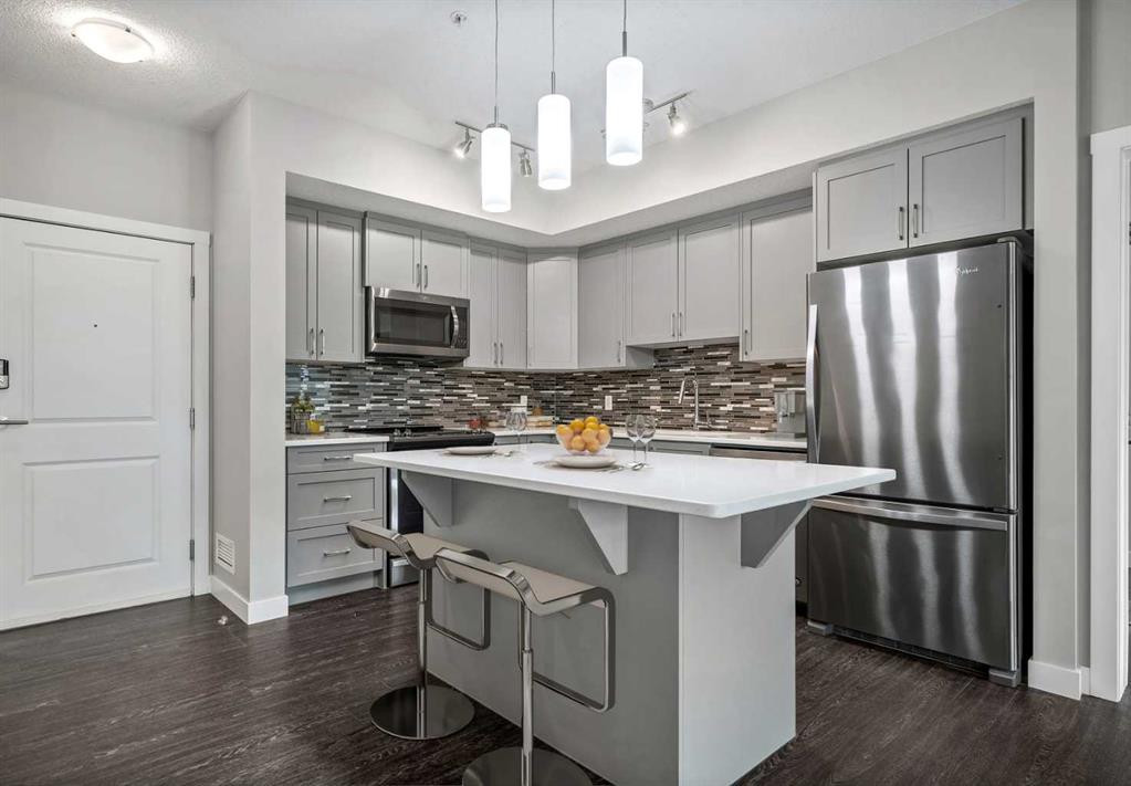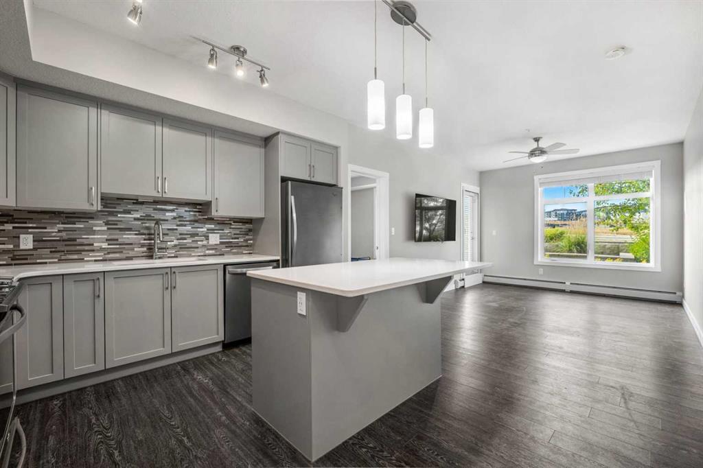 Welcome to Suite 1112 at 3727 Sage Hill Drive NW, a beautifully upgraded MAIN-FLOOR CONDO that combines MODERN STYLE, FUNCTIONALITY, and COMFORT in one of Calgary’s most desirable northwest communities. This thoughtfully designed home features HIGH-QUALITY FINISHES and a SMART, EFFICIENT LAYOUT, making it an excellent choice for FIRST-TIME BUYERS, DOWNSIZERS, or INVESTORS looking for low-maintenance luxury. Step inside to discover a BRIGHT, OPEN-CONCEPT LIVING SPACE with LUXURY VINYL PLANK FLOORING throughout and an abundance of NATURAL LIGHT. The UPGRADED KITCHEN stands out with QUARTZ COUNTERTOPS, a FULL-HEIGHT BACKSPLASH, and PREMIUM STAINLESS STEEL APPLIANCES, including an oven that has been rarely used. Designed for both cooking and entertaining, the kitchen flows seamlessly into the DINING AND LIVING AREAS, creating a warm and inviting atmosphere. Enjoy WEST-FACING SUNSETS from your PRIVATE BALCONY, complete with a GAS LINE FOR YOUR BBQ—the perfect setting for summer evenings and gatherings with friends. The SPACIOUS PRIMARY BEDROOM offers a DOUBLE-SIDED WALK-IN CLOSET and a PRIVATE ENSUITE BATHROOM with a WALK-IN SHOWER, creating a MODERN, SPA-LIKE RETREAT. A SECOND BEDROOM provides flexibility for a HOME OFFICE, GYM, or GUEST ROOM, while IN-SUITE LAUNDRY adds everyday convenience. Additional features include a TITLED PARKING STALL, SECURED BUILDING ACCESS, and ACCESS TO WELL-MAINTAINED COMMON AREAS. Situated in the VIBRANT COMMUNITY OF SAGE HILL, this home offers close proximity to SHOPS, RESTAURANTS, GROCERY STORES, FITNESS STUDIOS, and WALKING PATHS. With quick access to STONEY TRAIL and SHAGANAPPI TRAIL, commuting across the city is simple and efficient. Suite 1112 at 3727 Sage Hill Drive NW delivers MODERN FINISHES, A FUNCTIONAL FLOOR PLAN, and A PRIME LOCATION—a perfect combination of STYLE, COMFORT, and CONVENIENCE.