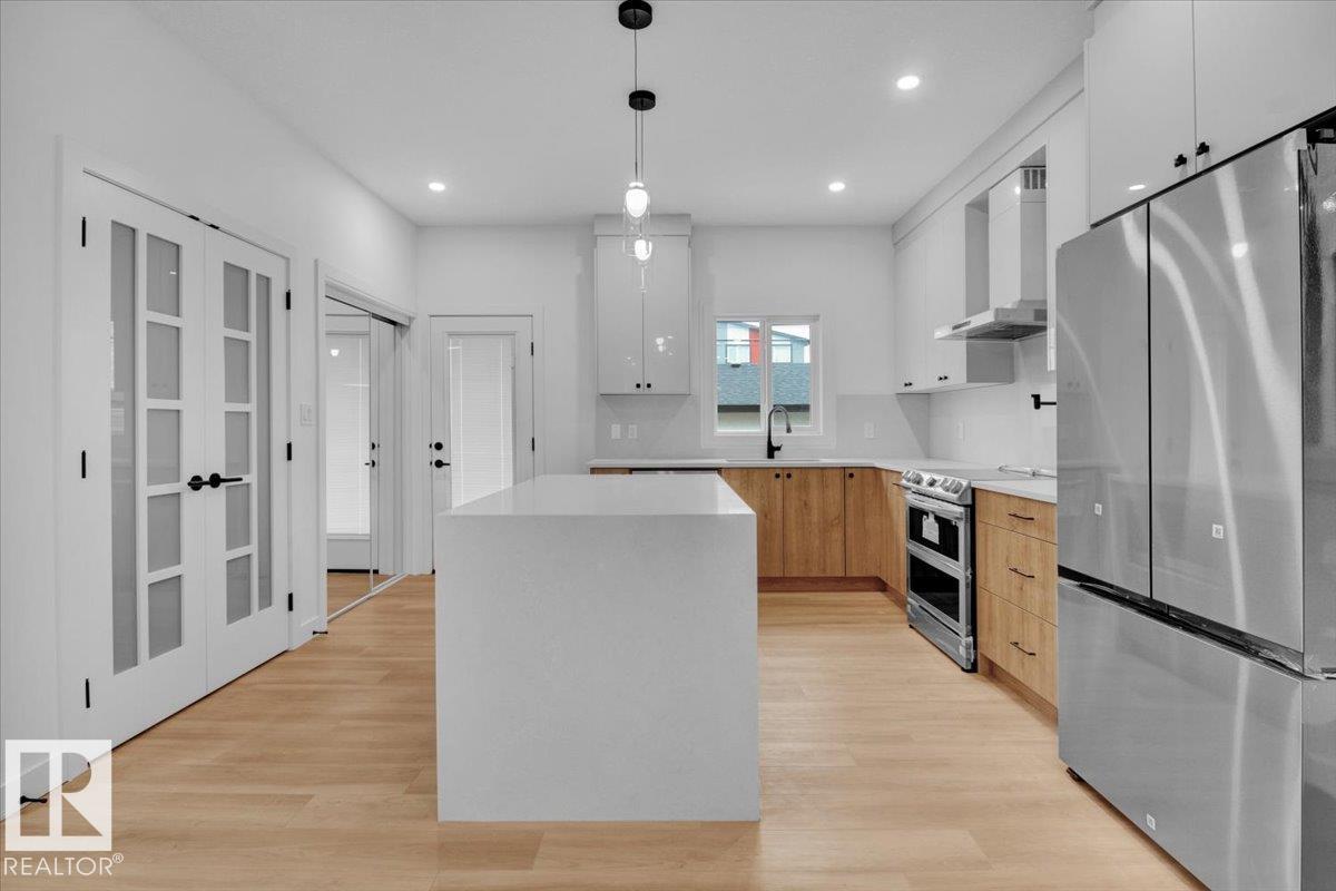 This beautifully built, move-in-ready 5-bedroom, 4-bath home offers the perfect blend of style, space, and flexibility. Designed with an open-concept main floor that includes a full bath and a versatile office/bedroom—ideal for guests or multi-generational living. The chef’s kitchen features stainless steel appliances, quartz countertops, a large island, and custom cabinetry, flowing seamlessly into the bright living and dining areas. Enjoy upscale finishes throughout: luxury vinyl plank flooring, elegant tile work, an electric fireplace, LED lighting, sleek black hardware, and more. Upstairs offers generous bedrooms, while the legal side entrance to the fully finished basement provides incredible potential for a future suite or rental income. A private backyard and double detached garage complete the package. All this in a prime Inglewood location—just minutes from downtown, the river valley, schools, parks, shopping & major routes. A smart investment in a high-demand, central location.