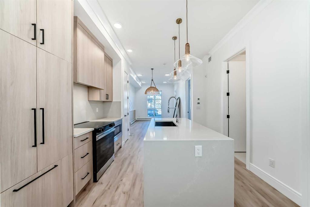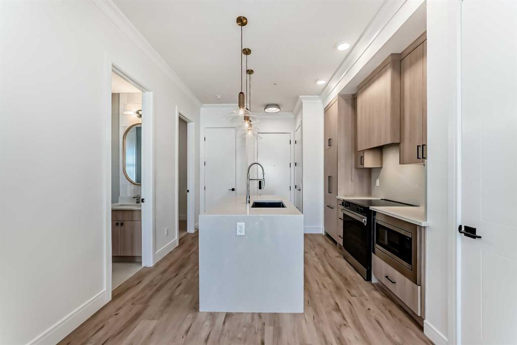 Step into modern luxury with this 1 bedroom + den 603 square feet home located on the ground floor of the award-winning University District. From the moment you walk in, you’ll notice the attention to detail—sleek quartz countertops, panel-ready appliances, soft-close cabinetry, and designer finishes that make every space feel elevated. The thoughtful floor plan includes a bright entrance, a contemporary kitchen with dining area, a spacious living room with oversized windows, and direct access to your private patio—perfect for morning coffee or winding down in the evening. The primary bedroom features a walk-in closet and a 4-piece bath completes the floor plan of this home. A versatile den offers endless possibilities, whether as a home office, study space, or guest room. Added conveniences include in-suite laundry, underground parking, and a dedicated storage unit. Outside your door, you’ll enjoy a vibrant, walkable community with boutique shops, cafés, restaurants, parks, and green spaces. The building itself offers exclusive brand-new amenities designed to complement your lifestyle. With quick access to the University of Calgary, Market Mall, Foothills Medical Centre, and endless conveniences, this home offers the perfect blend of luxury and location. This is more than a home—it’s your gateway to elevated living in one of Calgary’s most sought-after communities.
