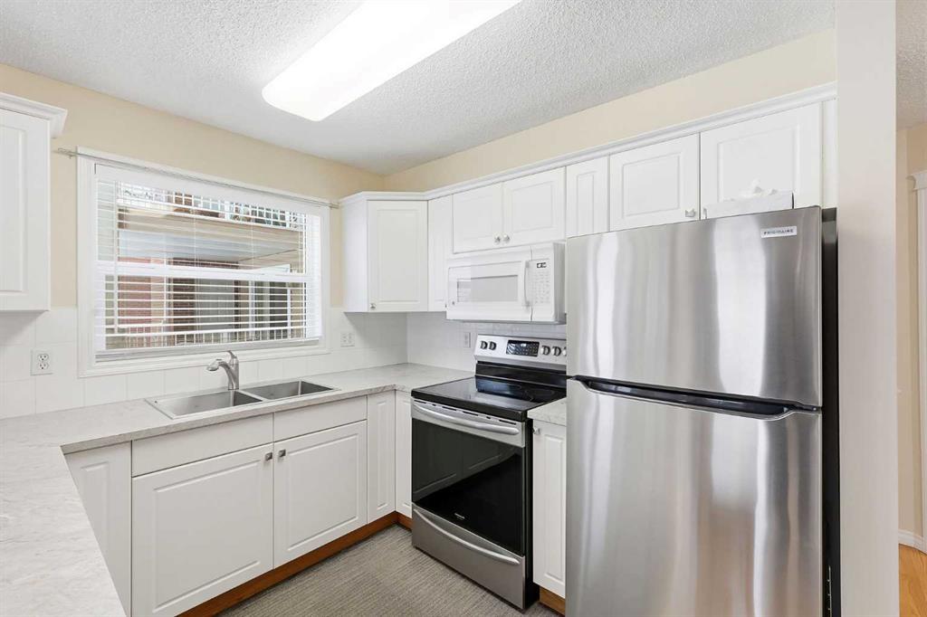 Nestled in in the desirable community of Huntington Hills, this large, bright, and airy 2-bedroom, 2-bathroom unit offers exceptional space and abundant natural light, featuring one of the largest floor plans in the building—shared by only six units. Ideally situated on the quiet side of this popular complex , it avoids the traffic noise from Hunterview Drive and, as a corner end unit, looks out onto a tranquil green space with sweeping views across the city to the airport. Enjoy relaxing on your private deck as planes come and go or taking in the twinkling city lights at night. The location is outstanding, with quick access to Deerfoot Trail, 14 Street NW, shopping, amenities, and schools. Children from grade 1 through high school can walk to class each day, offering exceptional convenience for families. Accessibility is another key advantage. Located on the main floor, the unit provides easy walk-in or wheelchair access. The primary bedroom ensuite includes a stand-up shower with room for a chair, and the heated underground parking stall is just one space away from the elevator. A bus stop right outside the building adds even more ease to daily living. This no-pet, no-smoking unit offers excellent storage, including a large exterior storage room off the deck, a spacious walk-in closet in the primary bedroom, and a dedicated storage cage with the parking stall. In a well-managed, friendly building with a healthy reserve fund, this home provides a worry-free lifestyle. Say goodbye to yard work, furnace or hot-water-tank maintenance, and roof concerns—your condo fees cover all of that and more. The heated underground parking means no winter scraping and no sweltering summer car, and there is even a convenient car wash in the parkade. The unit has benefited from numerous upgrades in recent years, including upgraded bedroom carpet, new kitchen countertop, microwave, fridge, stove, and washer/dryer, updated window coverings throughout, and a brand-new A/C unit installed in 2025. Lovingly cared for and beautifully maintained, this impressive home shows exceptionally well and is truly not to be missed. It won’t last long.