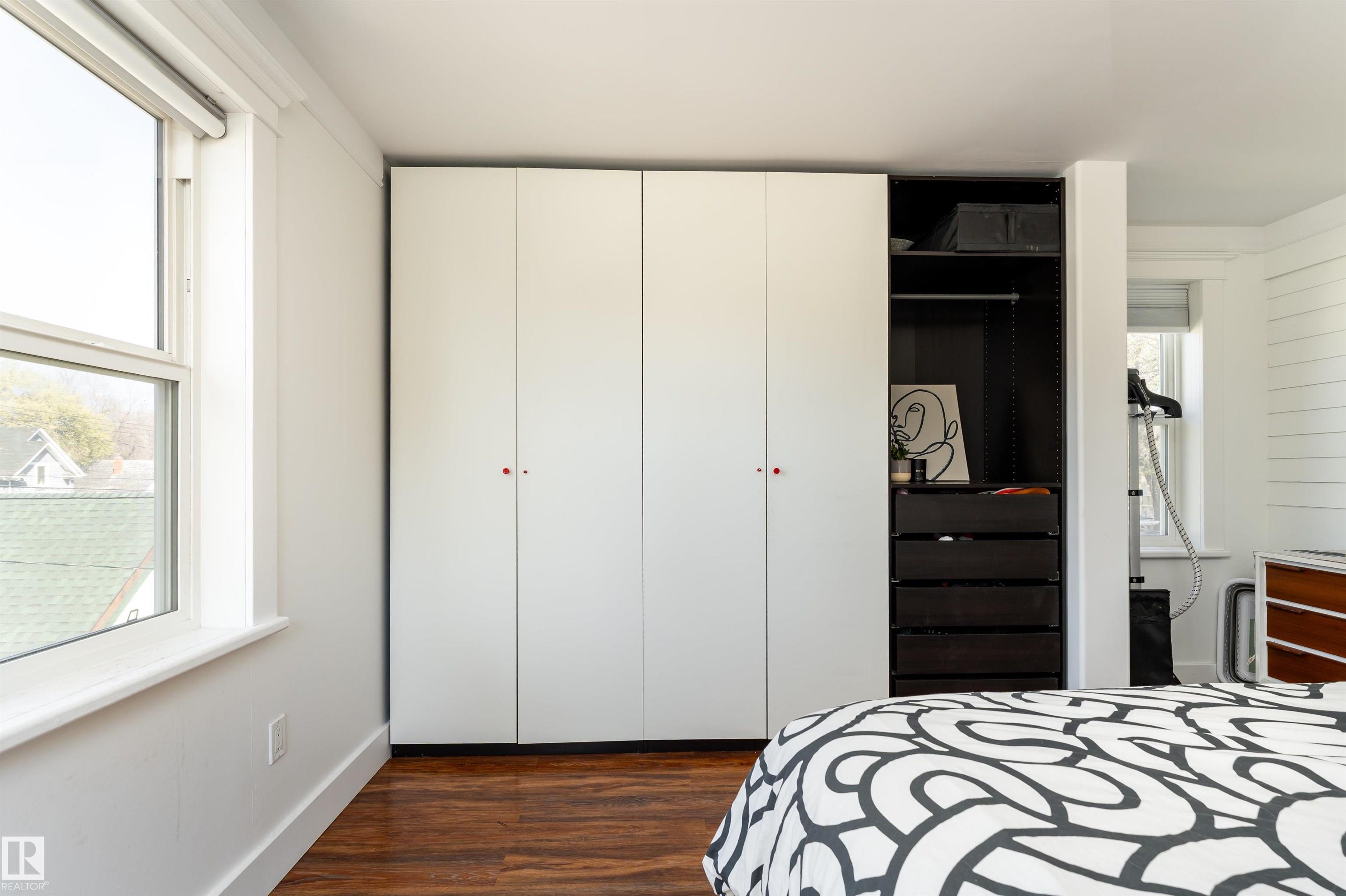 Charming 2-storey home in Alberta Avenue offering 1,650 sq ft of well-designed living space. The main floor features a bright, airy living room that flows into a spacious dining area and a kitchen with ample cabinetry and stainless steel appliances. Upstairs includes 3 bedrooms, a 4-piece bath with stand-up shower and clawfoot tub, and a new primary ensuite bathroom. The primary suite has opportunity to add an ensuite bathroom as labeled in the home. Outside, enjoy a fenced backyard with deck—perfect for relaxing or entertaining. The double detached garage provides ample parking and storage and includes SOLAR PANELS FOR ENERGY EFFICIENCY! Recent improvements and upgrades include central AC, new furnace, new hot water tank completed in 2018. Located close to schools, playgrounds, and shopping. A great blend of character, comfort, and smart living!