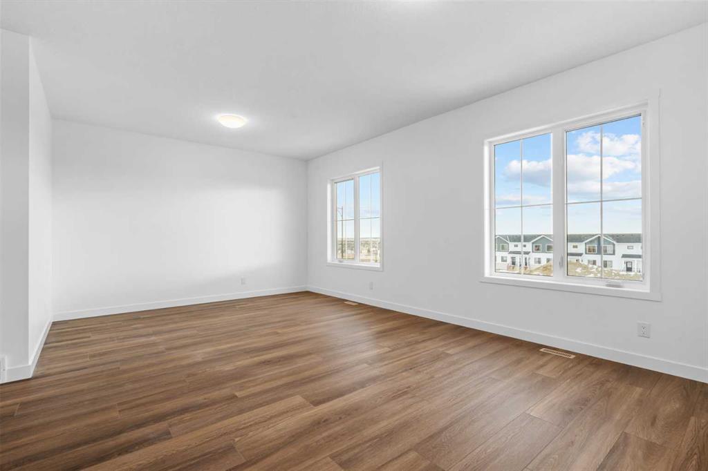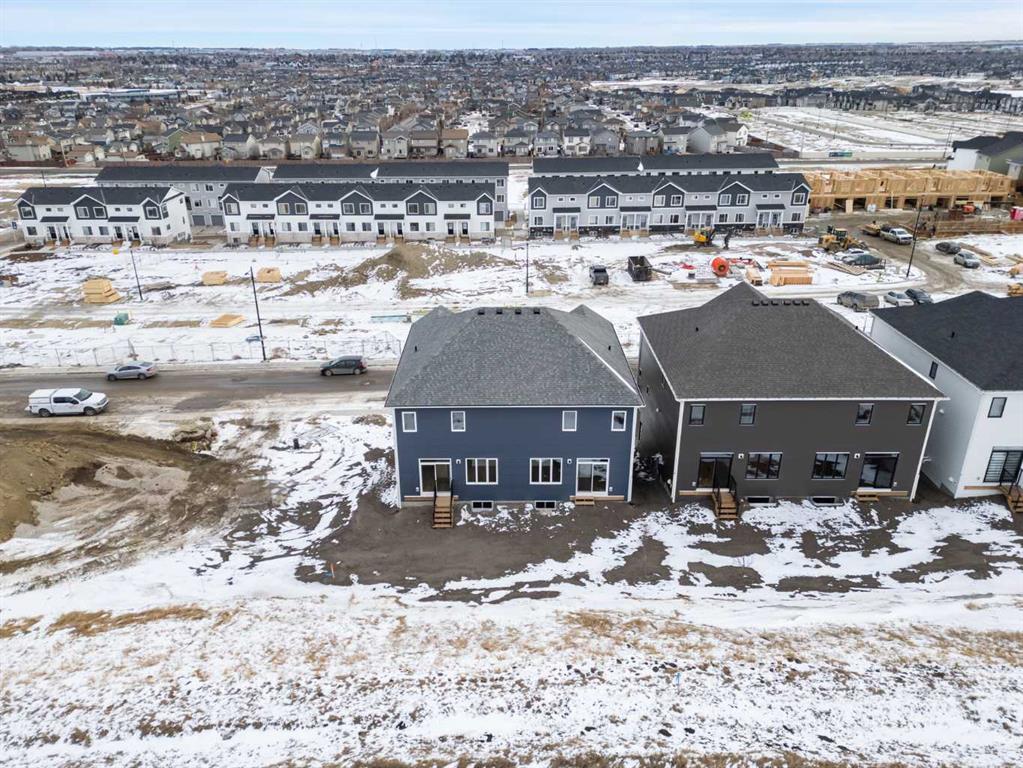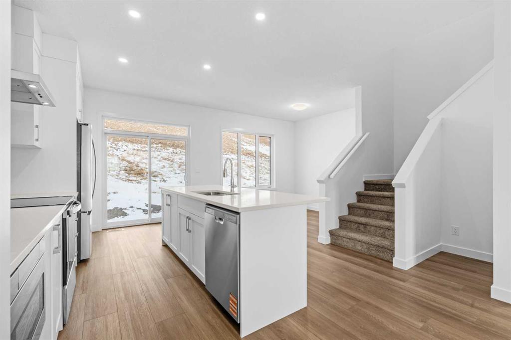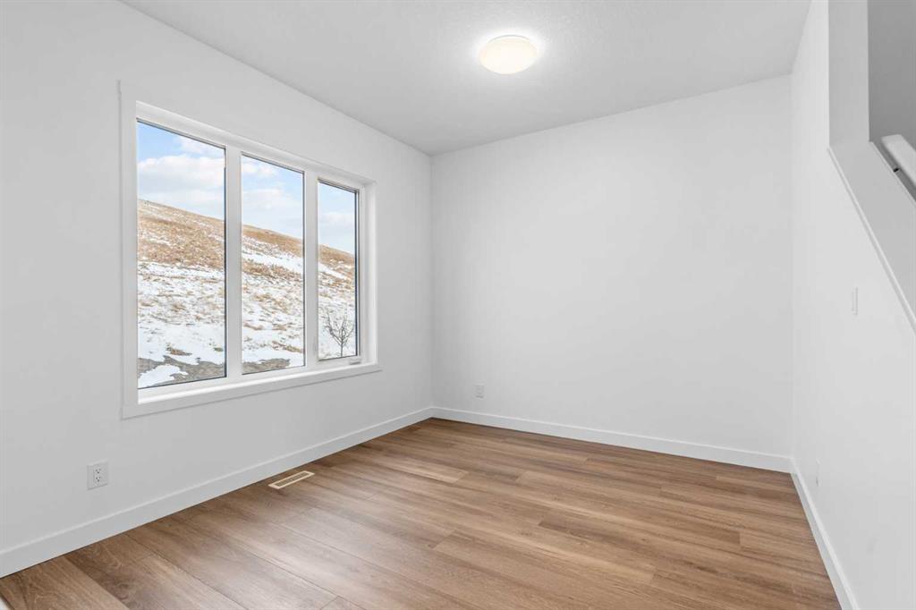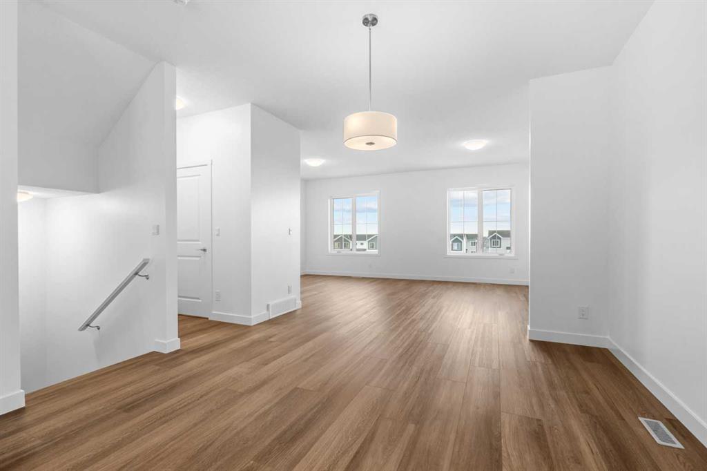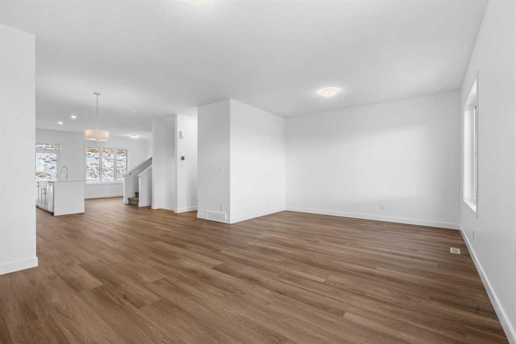 NEW BUILD SEMI-DETACHED | OVERSIZED SINGLE GARAGE | 3 BED / 2.5 BATH / 1995 SQ FT | WEST-FACING BACKYARD | IMMEDIATE POSSESSION – Welcome to this beautifully designed semi-detached duplex by Minto Communities, an award-winning Canadian builder, located in Wildflower, proudly voted Best New Community in Canada (2025). This vibrant, master-planned community in Airdrie is designed with lifestyle and connection in mind, offering an exciting mix of home styles in a neighbourhood built to grow with you. Finished in a charming traditional farmhouse elevation, this spacious home offers a thoughtfully planned layout ideal for modern family living. The main floor is designed for both everyday comfort and entertaining. The kitchen is positioned at the back of the home and features a central island, stainless steel appliances, and gorgeous modern finishes, with a bright breakfast nook just off the kitchen overlooking the west-facing backyard. Moving toward the centre of the home, you’ll find a dedicated dining area, while the large, light-filled living room anchors the front of the home. A convenient half bath and storage closet complete this level. Upstairs, the spacious primary bedroom easily accommodates a king-sized bed and includes a walk-in closet and a private 4-piece ensuite. Two additional well-sized bedrooms share this floor, one with a walk-in closet and the other featuring a sliding-door closet. A second 4-piece bathroom and a large, functional laundry room round out the upper level. The ground level welcomes you with a beautiful entryway that leads to the rest of the home and an undeveloped space that offers flexibility for future development. This level also includes additional storage space, a mechanical room, and direct access to the oversized single attached garage. A large driveway provides ample parking, adding everyday convenience. Residents of Wildflower enjoy exclusive access to The Hillside Hub, a standout amenity centre featuring Airdrie’s first outdoor pool, a hot tub, an open-air sports court, and a variety of shared indoor and outdoor spaces designed for gathering, recreation, or quiet retreat. With nearby parks, pathways, amenities, and easy access to major routes, Wildflower delivers a truly well-rounded lifestyle. Combining award-winning community planning, modern design, and immediate possession, this is an outstanding opportunity to own a stylish new home in one of Canada’s most celebrated communities. Don’t miss your chance to call Wildflower home! Book your visit today!