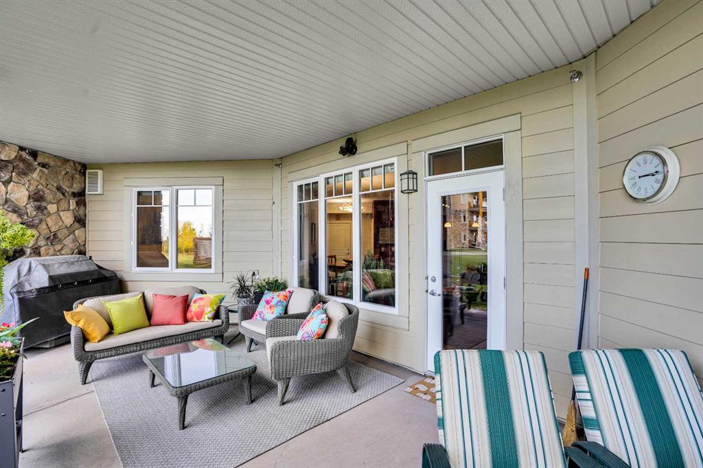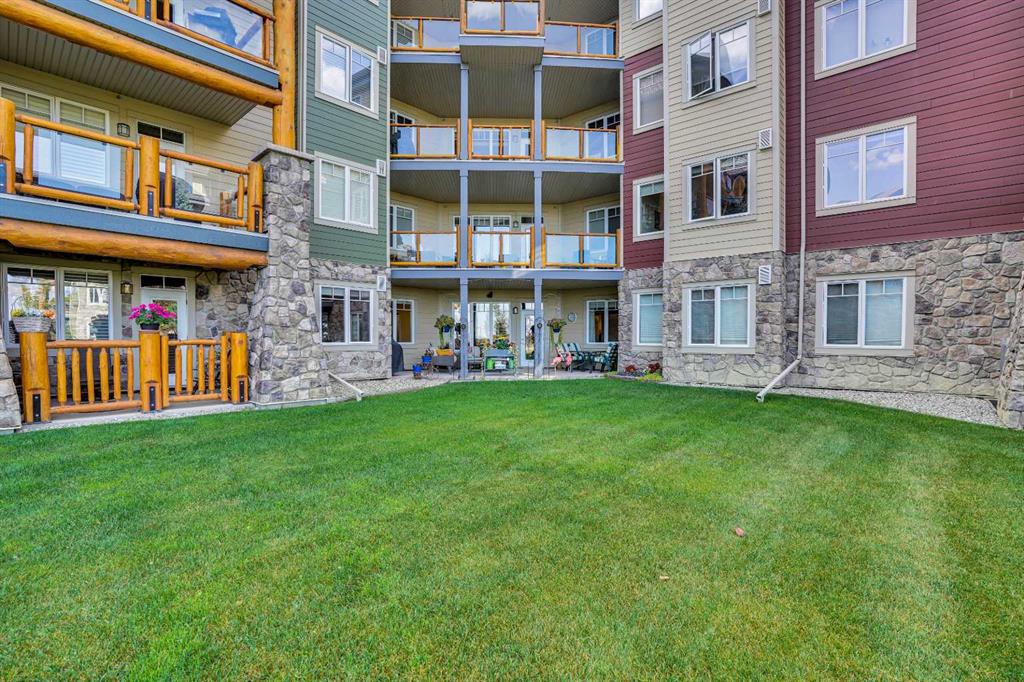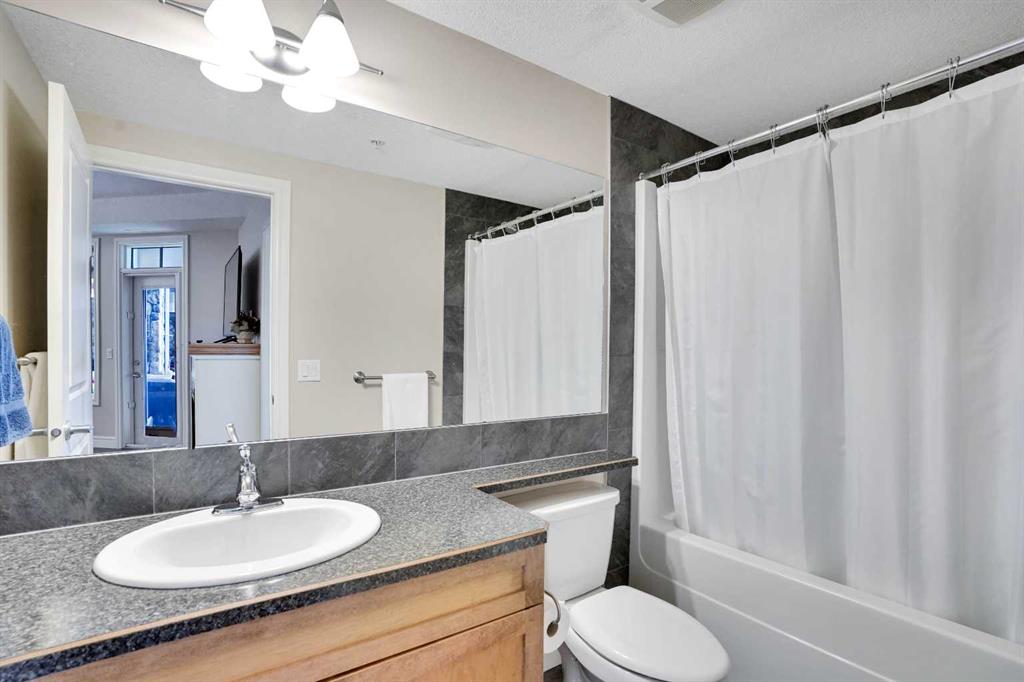 Welcome to this bright and charming 2-bedroom, 2-bath plus den condo with private garden access in the highly coveted Sanderson Ridge—Fish Creek Side. This immaculate, ground-level unit features a secluded patio that opens directly to lush gardens—perfect for small dog owners and nature lovers. Enjoy a spacious open floor plan that seamlessly connects the modern kitchen, equipped with stainless steel appliances and an eat-up bar, to the inviting living area and patio—ideal for entertaining or relaxing. The versatile den offers space for a home office, hobby room, or TV room. The primary bedroom boasts a 3-piece ensuite and a large walk-in closet, while the second bedroom also features a walk-in closet and is conveniently located next to a 4-piece bathroom. Additional highlights include in-suite laundry with storage, heated underground parking right by the elevator, and a large storage room. This one-owner unit is immaculately maintained and small-dog friendly. Sanderson Ridge offers exceptional amenities: bowling lanes, indoor swimming pool, movie theatre, wine room with private lockers, fitness centre, guest suites on each floor, billiard room, woodshop, car wash bay, card rooms, hair salon, heated underground parking with storage, a grand front entrance and lobby, and active community groups for quilting, crafts, woodworking, cards, and more. Located on the peaceful Fish Creek side of the building, this condo provides a tranquil retreat with vibrant community life and top-tier amenities. You’ll hardly ever need to leave the complex!