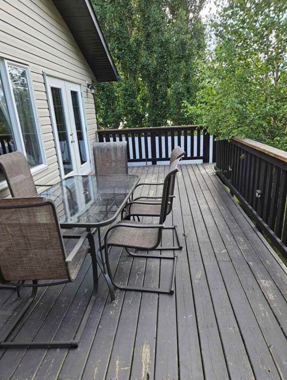 2004 executive bungalow situated in a very desirable neighborhood backing Graham Acres ball diamonds, close to parks, walking paths, schools, golf course, quadding and sled trails. 3 bedrooms on main floor all with built in closets. Master bedroom has walk thru closet and 3 piece en-suite with entry to a huge 28'x10' private deck for possible future hot tub access. Custom maple cabinetry thru out including in main floor laundry. Beautiful kitchen with pantry, peninsula bar, stainless steel appliances including a dishwasher. It opens up to a living room with tiled electric fireplace with custom shelving. The stairs lead to a partially developed basement with one large bedroom and 3 piece bathroom. This area has a wood stove and has excellent potential for a rec room or what ever your heart's desire. The stylish exterior is black and tan with rock accents. The front covered deck is great for morning coffee, or choose the rear deck which is large enough for gatherings or bbq's. The heated 26'x26' double car garage has lots of room including hot & cold water taps, and dog door access. The yard is perfectly landscaped with shrubs, perennials, mature trees, fire pit, garden area, rocks, and fence rear access. Included is a fantastic 12'x24' shed with roll top door large enough for big toys. Shingles were replaced in 2020, vinyl flooring was installed thru out in 2023, newer hot water tank and microwave, brand new gas/electric stove . 2025 property taxes were $3787.49. This house has it all, waiting for your personal touch. Some furniture and outside accessories can be negotiated with sale.