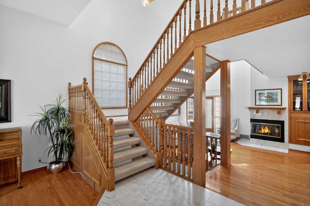 Welcome to Stathcona Park, truly one of Calgary's most family oriented and sought after communities. This home is a fantastic, custom built gem that brings a very unique and desirable layout to your families next home. As you take in the gorgeous curb appeal you'll notice the tiled roof , brick and stucco exterior lending to a durable and reliable home that will last through the ages along with quaint gardens and mature trees. As you enter your new home you are greeted with a blend of tile and gleaming hardwood floors that will invite you in to high ceilings, see through stair cases, windows everywhere and a fantastic open floor plan. A formal sitting room overlooks your front yard and is the perfect place for reading or conversation with guests. Your sunken living room with soaring ceilings is a focal point of the home and a show stopper to say the least accompanied by your gas fire place and door leading to the wrap around deck. Your dining room is the perfect size for entertaining or for quite nights home with the family. Your well equipped kitchen features thick granite counter tops, stainless steel appliances, a gorgeous breakfast nook surrounded by windows overlooking the back yard and access to the rear deck, perfect for indoor/outdoor dining and entertaining. Another sitting room with gas fireplace is attached to the kitchen and is perfect for a home office, library or TV room. Your half bathroom/laundry room finishes off the main floor before heading upstairs. On the upper level you have a perfect layout starting with a small seating area leading through french doors to your primary suite. Opulence is the word to describe your primary retreat. Large enough for an oversized king bed, all of your additional bedroom furniture and a seating nook bathed in light, overlooking your back yard. The spa style ensuite gives luxury hotel vibes with a large soaker tub, walk-in shower, beautiful tile work and dual sinks. The second and third bedrooms are a great size and each have a door to the full bathroom directly from the bedrooms. The basement is fully finished as an entertainment space and includes the pool table making it the perfect area for family game night or to host your friends for the big sporting event on that weekend. The outdoor space is really what makes this home special with a large deck, expansive yard with mature trees and backs directly on to a playground that you can access from a gate in your back fence. Truly one of the most special features of this home. Your new home is right in the middle of 3 amazing schools within minutes from your front door, Strathcona Park Board Walk down by the river, soccer fields, parks, pathways and playground's making this a unique opportunity to own this stunning home in one of Calgary's most desired communities. Welcome Home