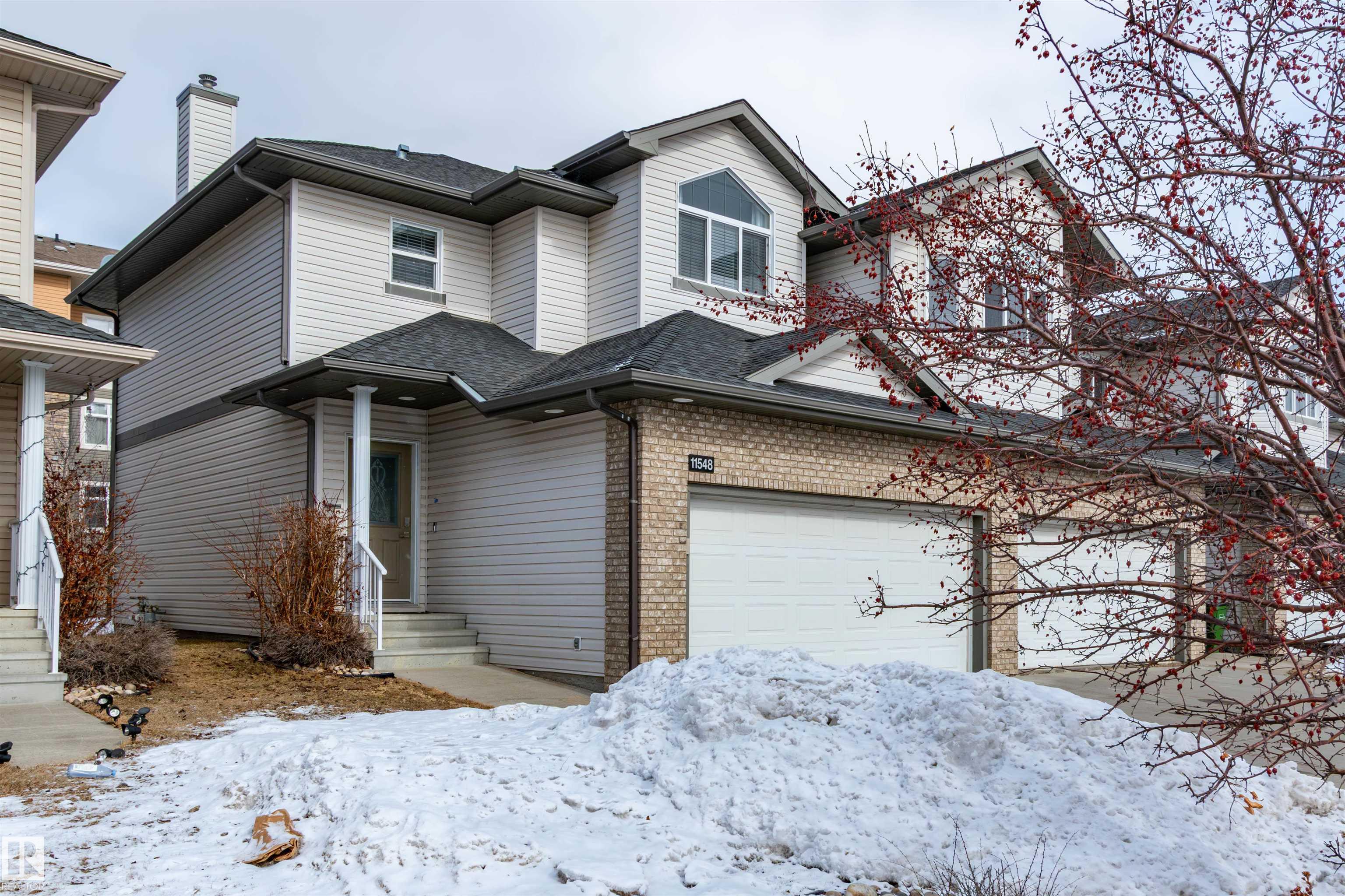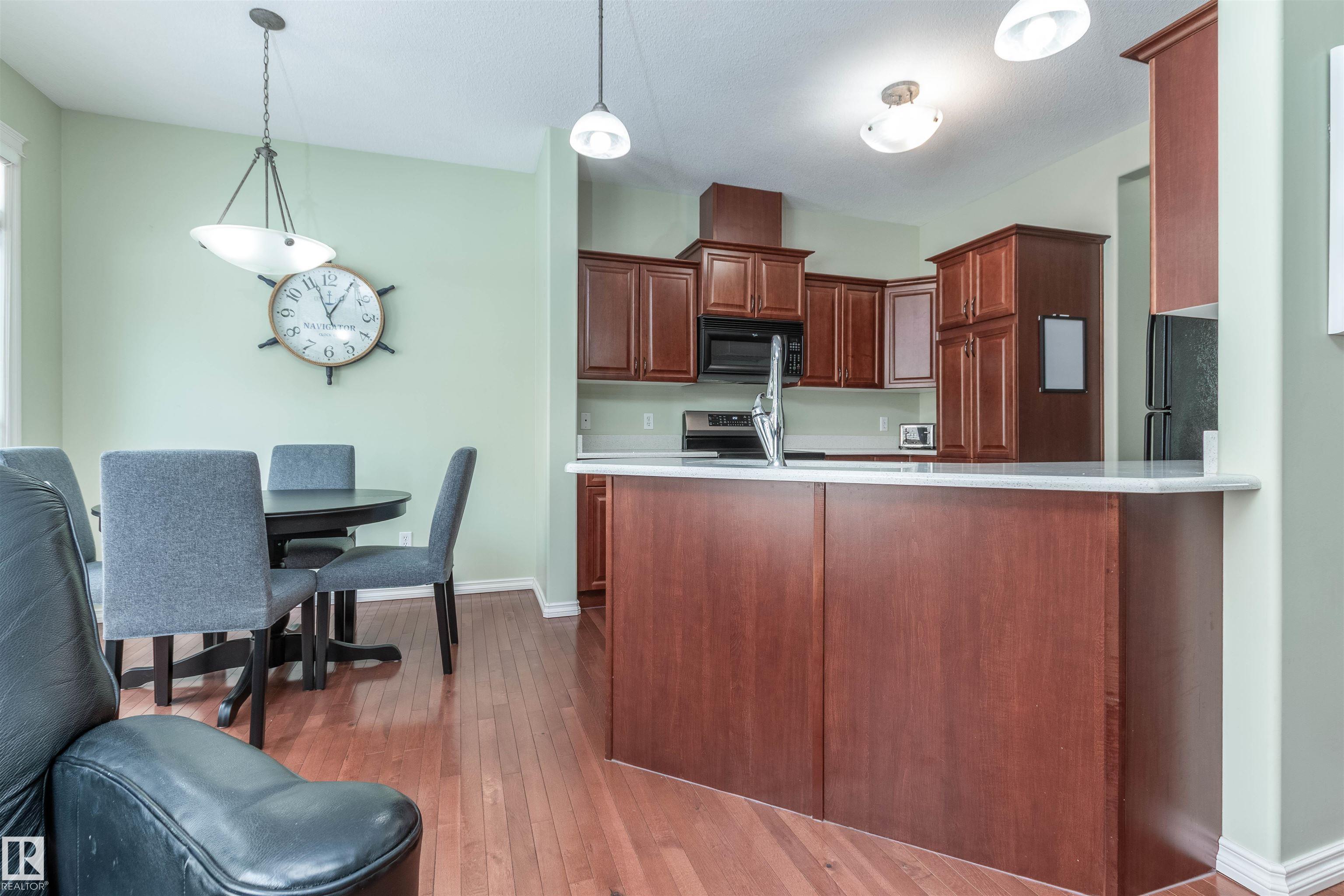 Welcome to this lovely END UNIT in Rutherford Lane! Prime location in south Edmonton. This impeccably maintained home offers excellent value. Modern and functional floor plan with a spacious living room and attractive corner gas fireplace. Beautiful eat-in kitchen with plenty of cabinetry, countertops, and appliances including a new induction stove with convention oven. Open and generous dining area. 2 piece powder room and direct access to the DOUBLE attached garage complete the main floor. Upstairs are 3 bedrooms and a 4 piece bathroom. The Primary Bedroom features its own private and lovely 3 piece ensuite plus TWO CLOSETS. The basement is FULLY FINISHED with a large family room, storage space and Samsung washer & dryer in laundry area plus its plumbed-in for a future bathroom. Low monthly condo fees of $278.00 Prime location close to major amenities, parks, transit and shopping. A wonderful place to call HOME! Visit REALTOR® website for information.
