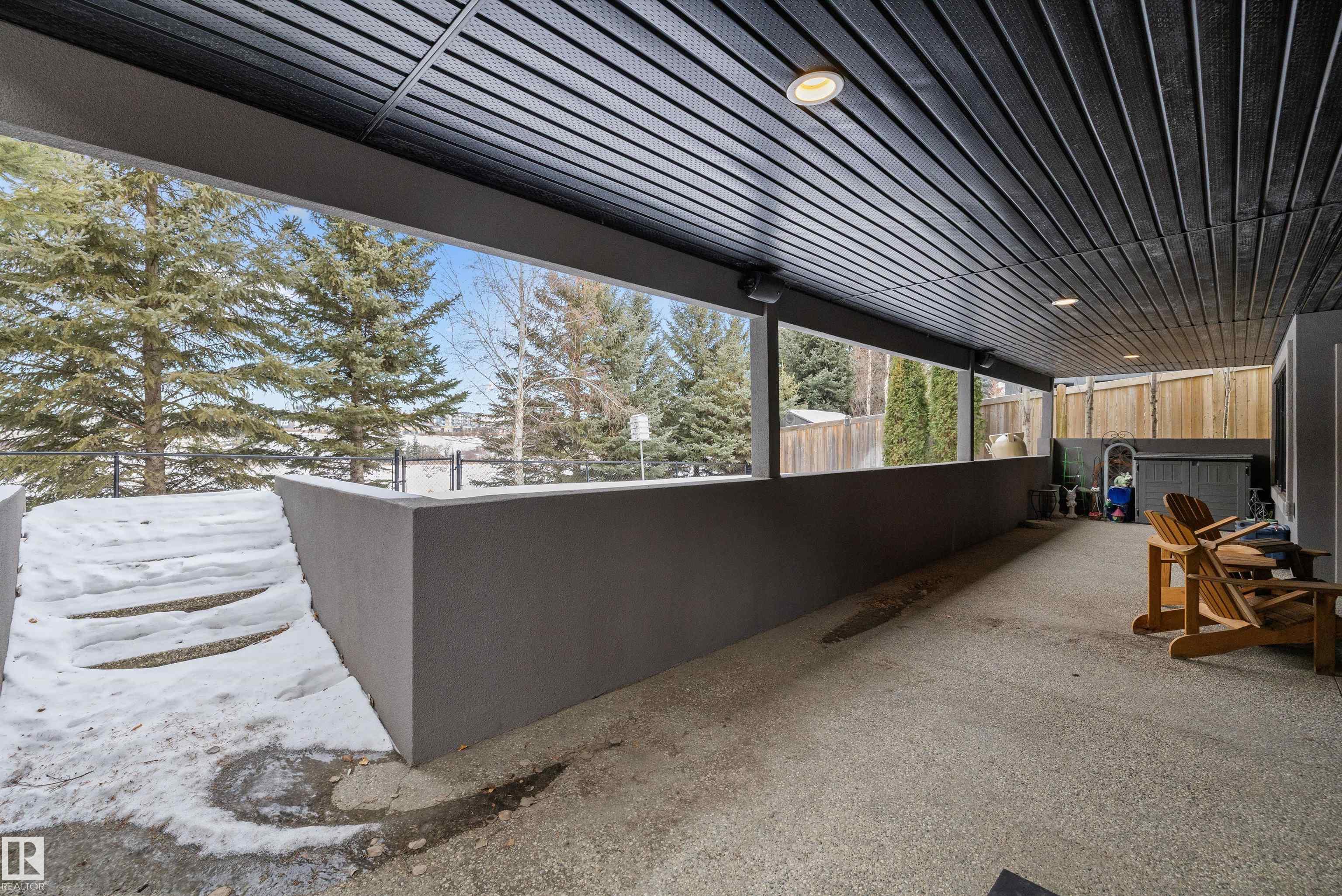 Executive WALKOUT bungalow in Allard backing onto a protected Reserve & Ravine with Triple Side-Load garage & sweeping aspen-lined driveway & grounds that beautifully frame the breathtaking interior design and finishes! This rare showpiece showcases 10-ft ceilings, 8-ft doors, expansive windows & doors that bathe the home in natural light. An open-concept main floor is tailored for upscale entertaining with a dramatic coffered-ceiling great room, lush treed-view dining area, chef-inspired kitchen w/ premium appliances, ovszd island, bar & walk-through pantry. A lavish primary retreat w/ balcony access overlooks ravine & features a spa-worthy ensuite with solar tube, jetted tub, custom shower & large WIC. A flexible 2nd bed/den & mudroom complete the main.The lower level stuns with a curved staircase, in-floor heating, wet bar, gym, gas fireplace,family room & 2 bedrooms. Step outside to a sprawling covered patio, perfect for entertaining. Prime location near walking trails, schools, shopping, QE2 & Henday