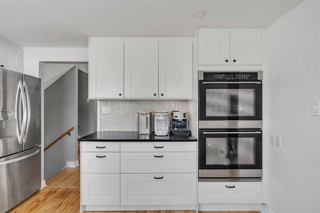 ** CHECK OUT THE VIDEO TOUR ** Welcome home to 12 Oakvale Place SW — a beautifully renovated 5-LEVEL SPLIT tucked into one of OAKRIDGE's most established and family-friendly CUL-DE-SAC streets. Offering over 2,850 sq ft of developing living space, 5 bedrooms and 2.5 bathrooms, every detail in this home has been thoughtfully designed for both style and everyday functionality. From the moment you step inside, you'll be captivated by the SOARING VAULTED CEILINGS, rich hardwood floors, and an abundance of natural light pouring through oversized windows. The heart of the home is the open and airy main floor, anchored by a cozy WOOD-BURNING FIREPLACE in the sun-filled living room and flowing seamlessly into a spacious dining area — perfect for everything from quiet weeknight dinners to hosting the whole family. The FULLY RENOVATED CHEF'S KITCHEN is a true showstopper, featuring crisp white shaker cabinetry, sleek black quartz countertops, a designer herringbone backsplash, stainless steel appliances with double wall ovens, and a wall pantry. Upstairs, you'll find three generously sized bedrooms and a full 4-piece bathroom — ideal for growing families. A few steps up, a unique LOFT-STYLE SPACE overlooks the main living area, offering a bright and airy spot that works beautifully as a home office, reading nook, or kids' play area. The PRIVATE PRIMARY RETREAT occupies its own level and feels like a true escape. Wrapped in warm wood paneling with a vaulted ceiling, it features a walk-in closet, 2-piece ensuite, and not one but TWO PRIVATE DECKS — one facing northeast to catch the morning sun with your coffee, and another facing northwest, perfect for unwinding with a glass of wine as the sunset paints the Alberta sky. The lower levels extend your living space with a versatile den, a 5th bedroom, a 3-piece bathroom, and a large rec room — perfect for a media room, home gym, or guest suite. A dedicated laundry and ample storage round out the basement. Step outside to a generous, NW-FACING BACKYARD on a LARGE 5,736 Sq Ft LOT — ideal for summer barbecues, kids and pets at play, or quiet evenings under mature trees. An ATTACHED OVERSIZED SINGLE GARAGE with additional driveway parking and separate covered storage offers plenty of room for vehicles, tools, and hobbies. Updated TRIPLE-PANE WINDOWS keep the home quiet, efficient, and cozy year-round. Oakridge is known for its mature, tree-lined streets and strong sense of community. Top-rated schools, parks, playgrounds, and everyday amenities are all just minutes away, with SOUTH GLENMORE PARK and the Glenmore Reservoir around the corner offering endless pathways for biking, walking, and weekend adventures. Homes like this — MOVE-IN READY, full of character, and on a quiet cul-de-sac in such a sought-after neighbourhood — don't come along often. Renovated, Reimagined, Ready — Your Oakridge Dream Awaits. BOOK YOUR PRIVATE SHOWING TODAY and come see why this is the perfect place to call home!!
