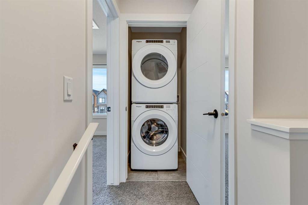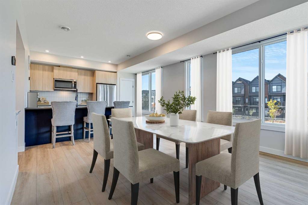 Welcome to the Brubeck floorplan – a thoughtfully designed 2 bed, 2.5 bath townhouse with a single attached garage in the vibrant community of Seton. Offering 1083 sq. ft. of modern living, this home features an open-concept layout with luxury vinyl plank flooring, large west-facing windows, and a stylish kitchen with quartz countertops, upgraded stainless steel appliances, full-height cabinetry, and a spacious peninsula island. Upstairs, you’ll find two generous bedrooms, each with a walk-in closet and its own ensuite. The primary bedroom includes a private balcony, while a convenient laundry area completes the upper level. Additional highlights include central air-conditioning, upgraded tile, and a west-facing balcony off the dining area. Perfectly situated near parks, playgrounds, shops, and restaurants with easy access to major roadways, this home is ideal for first-time buyers or investors. Don’t miss this fantastic opportunity to own in one of Calgary’s fastest-growing communities!