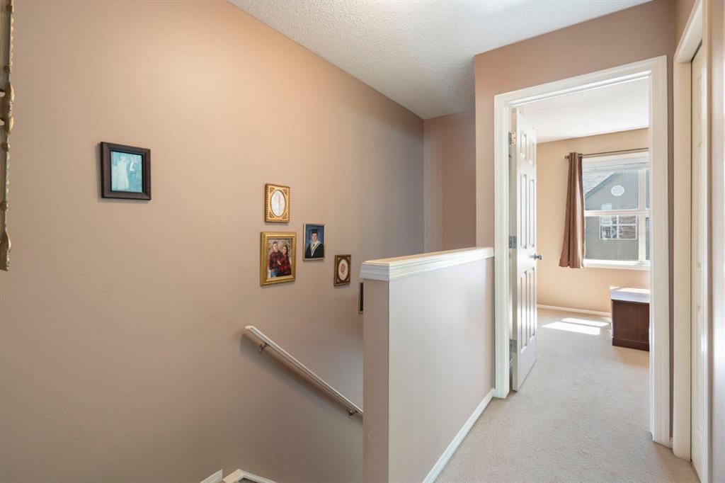OPEN HOUSE SATURDAY OCT 25, 1-3PM! WHY BUY AN APARTMENT WHEN YOU CAN OWN A TOWNHOUSE?? Located in the quiet, well kept Wildflower complex in the desirable community of Bridlewood, this 2 bed 1.5 bath townhouse comes with soaring ceilings, an attached single car garage and LOW CONDO FEES. Entering the unit you'll appreciate the designated entrance which also has access to your attached single car garage. The entrance also has a large closet and access to your undeveloped basement/utility room which is great for additional storage. Up a small set of stairs you'll be impressed with the soaring ceiling height that's accompanied by a generous window with loads of natural light. This convenient living room setup holds a gas fireplace and access to your attached balcony/deck that will be refinished this summer. The dining room has plenty of space to host family dinners while being right off the open concept kitchen with matching appliances and white cabinets. The main floor is complete with a half bathroom. Heading upstairs you'll love the upper laundry that leads into your primary retreat that is fit for a king bed, has a walk-in closet and could easily hold a dresser with night stands. Just outside the primary bedroom you have a 4 piece bathroom with a large countertop and a secondary bedroom. This unit is just steps from parks, schools and a short drive to everything Shawnessy has to offer including the LRT, grocery shopping, banks, restaurants and so much more.