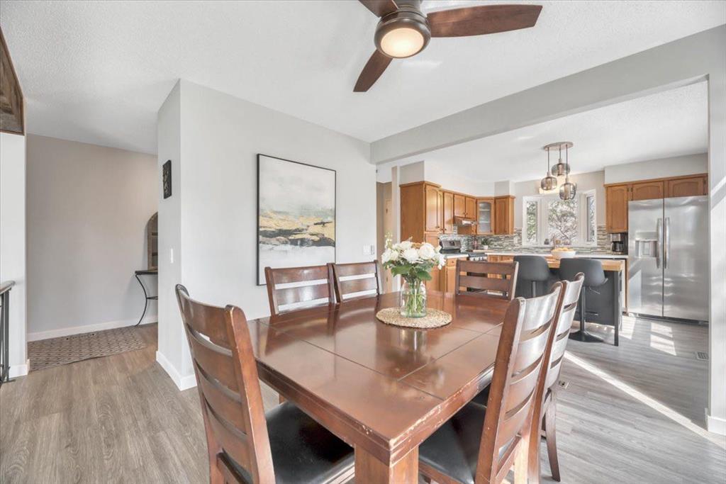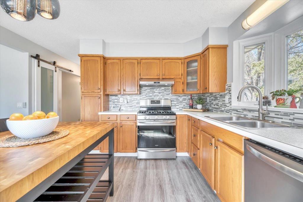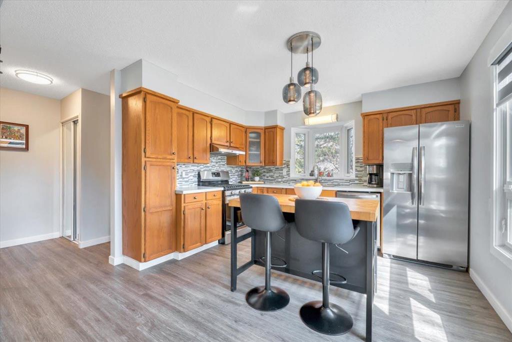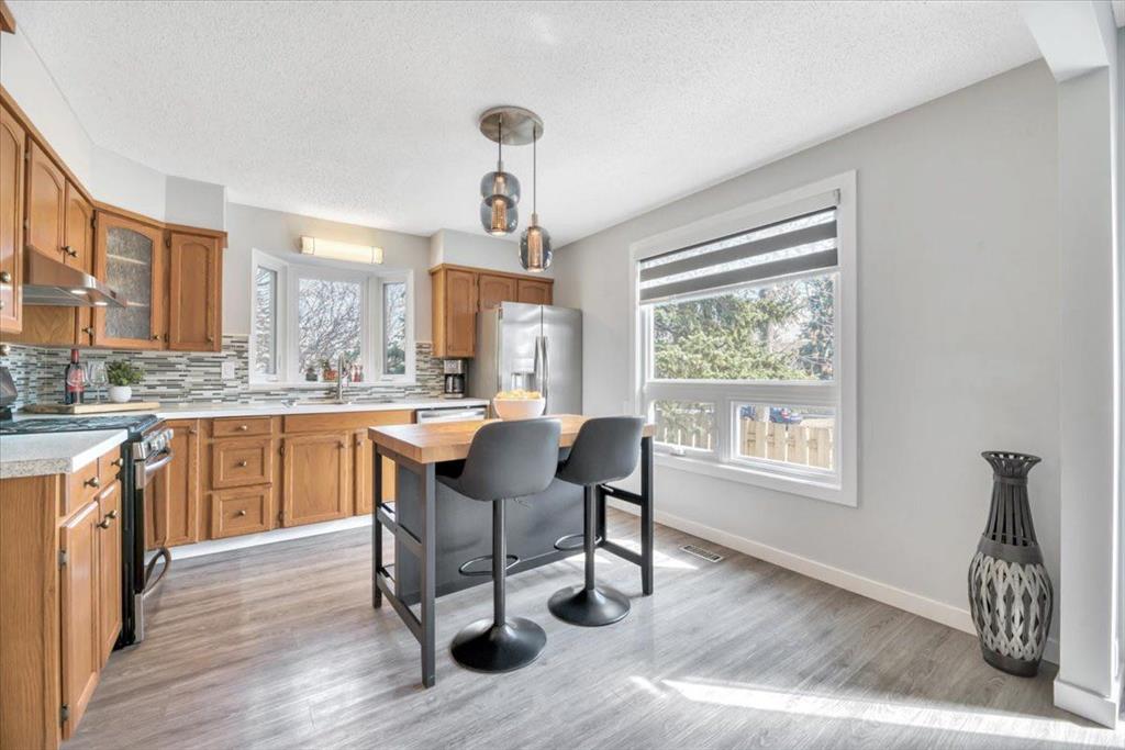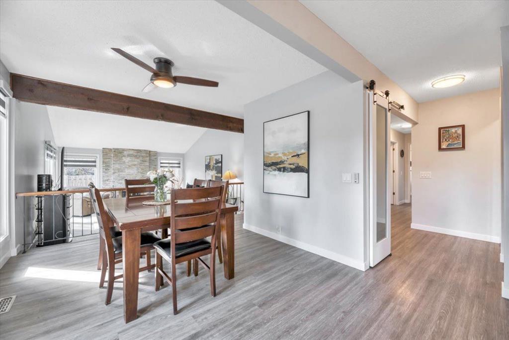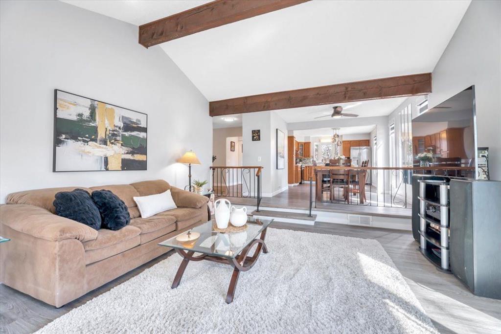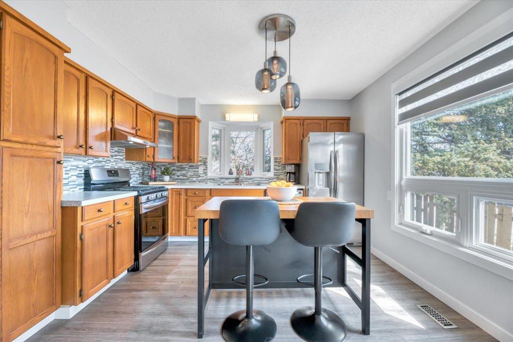 Welcome to this beautifully renovated bungalow in the heart of Woodlands, offering a perfect blend of warmth, character, and modern upgrades. The main living space is truly the showstopper, featuring vaulted ceilings with striking wood beams and a stunning stone wood-burning fireplace that anchors the room. This space flows seamlessly into the dining area and kitchen, creating an open and inviting layout ideal for both everyday living and entertaining. The home has been extensively updated, including all new triple-pane windows on the upper level, central air conditioning, a new furnace (2024), hot water tank (2024), central vacuum system, and a full set of stainless steel appliances (2024) with a gas range. The main floor also features high-quality vinyl flooring throughout, fully renovated bathrooms, and upgraded electrical outlets including USB and USB-C connections for added convenience. Custom dual-layer blinds have also been installed throughout, adding both style and functionality. The main floor features a primary bedroom complete with a full ensuite, along with two additional bedrooms and another full bathroom. The lower level is impressively sized with a large bedroom, full bathroom, comfortable living area, and a separate recreation space, giving you plenty of room to spread out and make it your own. The back entry allows access to both the main level and the basement from the rear of the home, adding to the overall functionality of the layout. Outside, the property features a fully fenced front yard surrounded by mature trees, creating a private outdoor space to enjoy. The charming gazebo adds the perfect touch for relaxing or entertaining. Located within walking distance to schools, parks, the community centre, tennis courts, ball diamonds, and Fish Creek Park, this home offers an exceptional lifestyle in one of Calgary’s most established and desirable neighbourhoods. Complete with a double detached garage, this beautifully updated home is ready to be enjoyed.