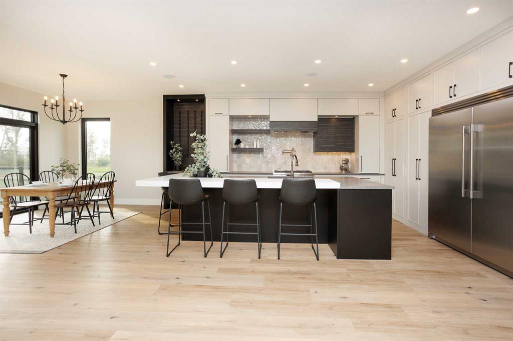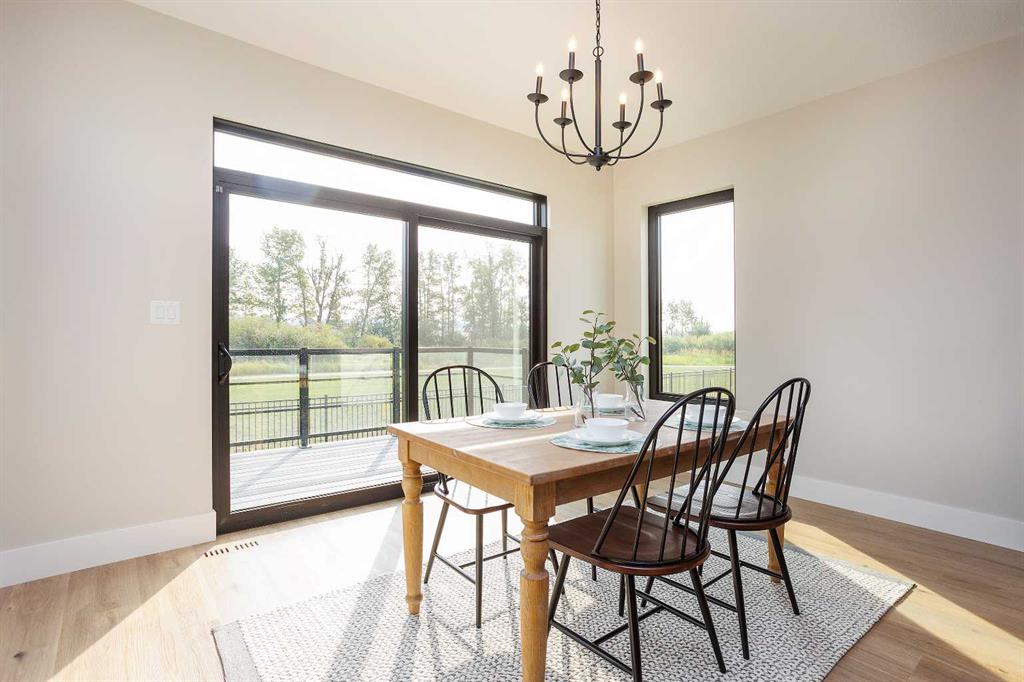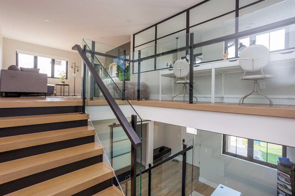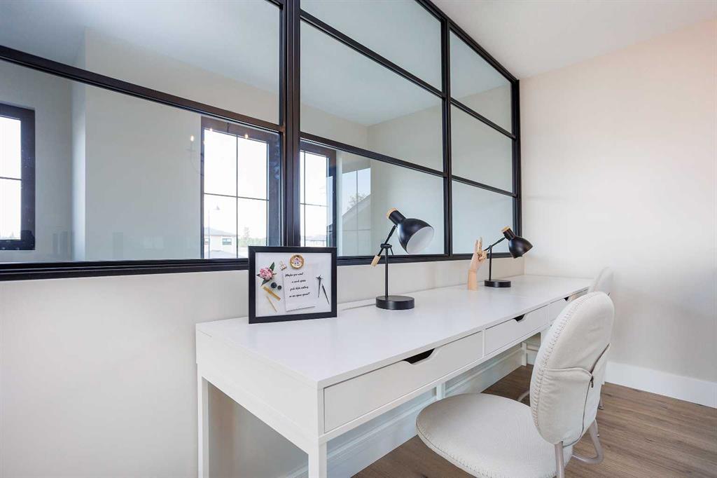 A brand new fully developed Larkaun Homes show home in desirable Evergreen. The curb appeal is accented by the aggregate front driveway & steps, the metal roof accents & vertical board & baton features. The front entryway greets you with towering 18' ceilings in the foyer & main floor office that overlooks the custom staircase with solid wood treads, two tone risers & custom glass guard rails. Ceiling height, soft close kitchen cabinets are accented by a massive island with an eating bar, full chevron tile backsplash, a Franke peak undermount granite bowl sink, a built in fridge/freezer combo, a gas stove with a pot filler, wine storage, a pantry style cabinet with pullouts, a custom wood hood fan & quartz countertops. Walk through the butler's pantry with a prep sink & beverage centre to the back entryway that has mirrored sliding closet doors, a bench seat & built in cabinetry for storage. The powder room has decorative wallpaper, a furniture style vanity accented by a hammered stainless steel under mount sink. The eating area has patio doors to the 14'x8' + 16'x14' composite rear deck. Relax in the living room next to the british fires forest 48" electric fireplace featuring matte black quartz slab surround. Follow the stunning custom staircase up to the bonus room that adjoins to the desk stations with a custom welded wall with glass inserts that overlook the main floor. The king sized primary bedroom has a large window that overlooks the back path & trees, a fan, reading lights on each side of the bed & an oversized walk in custom closet. The gorgeous 5 piece ensuite features heated tiled floors, a 60"x36" curbless walk in tile shower with a built in storage niche, dual heads including a rain head & a sliding hand shower, a freestanding tub below the picture window, double sinks, a makeup counter with an LED mirror, and a water closet with a window. There are two additional bedrooms, a 4 piece bathroom & a laundry room (smart drain under the washing machine) with builtins including baskets & a folding counter. The fully finished basement has operational in floor heat with a family room featuring a sports bar (includes a built-in ice maker & beverage centre), a 4th bedroom, an exercise room with full glass wall and a 4 pc bathroom. The fully landscaped yard backs onto a walking path & treed area. The oversized garage has premium flake epoxy floors, a gas heater, floor drains, a smart car plug in & a rear garage shed with backyard access through the 7'x7' overhead door. Features of the home include: Central air conditioning, basement & ensuite has in floor heat, window blinds, luxury vinyl plank flooring, high quality carpet with an 8lb underlay, solar panel ready, Lutron smart home system connects to the power blinds, pot lights and Sonos system, video doorbell and security cameras, Sonos speaker in the kitchen, living room and sun deck, central vac with floor sweeps & more! Evergreen is an HOA and the fees are $100/year at this time.