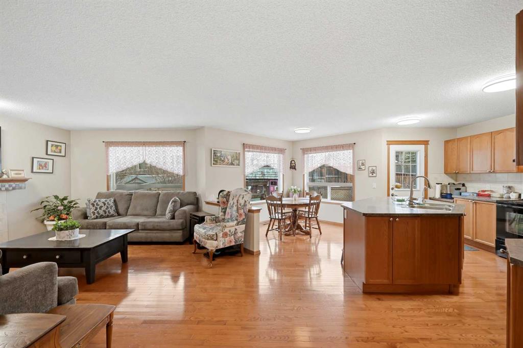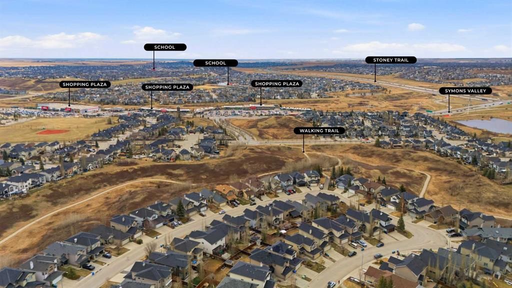 Welcome to 127 Kincora Heights NW! Ideally situated on a tranquil street in one of Kincora’s most sought-after locations, this beautiful two-storey home offers over 3500 sq. ft. of thoughtfully designed living space, combining comfort, style, and functionality. Step inside to a bright and welcoming foyer with a dramatic two-storey entrance. The open-concept design showcases a seamless blend of hardwood and tile flooring, a spacious great room anchored by a cozy gas fireplace, and a warm inviting kitchen featuring a raised eating bar and convenient pantry. The generous dining area easily accommodates gatherings of up to 12 guests—perfect for entertaining. Step outside to an expansive south-facing deck, offering all-day sunshine and overlooking a large backyard with plenty of space for kids to play and enjoy. A versatile main floor den is ideally located next to a FULL bathroom and has been used as a bedroom, offering excellent flexibility for guests, multigenerational living, or a home office. Main floor laundry adds to the everyday convenience. Upstairs offers three generously sized bedrooms, including a spacious primary retreat featuring a walk-in closet and a well-appointed 4-piece ensuite with a jetted tub, separate shower, and private water closet. A bright and expansive bonus room with vaulted ceilings provides the perfect gathering space, complemented by a versatile adjoining area currently used as a home office The fully developed basement expands your living space with 2 additional large bedrooms, full bathroom, and family room—perfect for extended family or additional functionality. The fully landscaped backyard is south backing offering exceptional privacy, serenity, and all-day sunlight. Additional highlights include an oversized double attached garage and outstanding curb appeal. This is a rare opportunity to own a beautifully maintained home in a premium Kincora location.