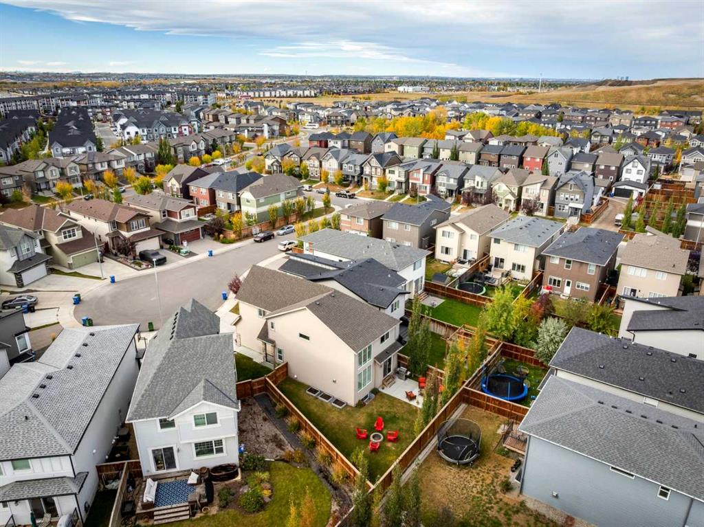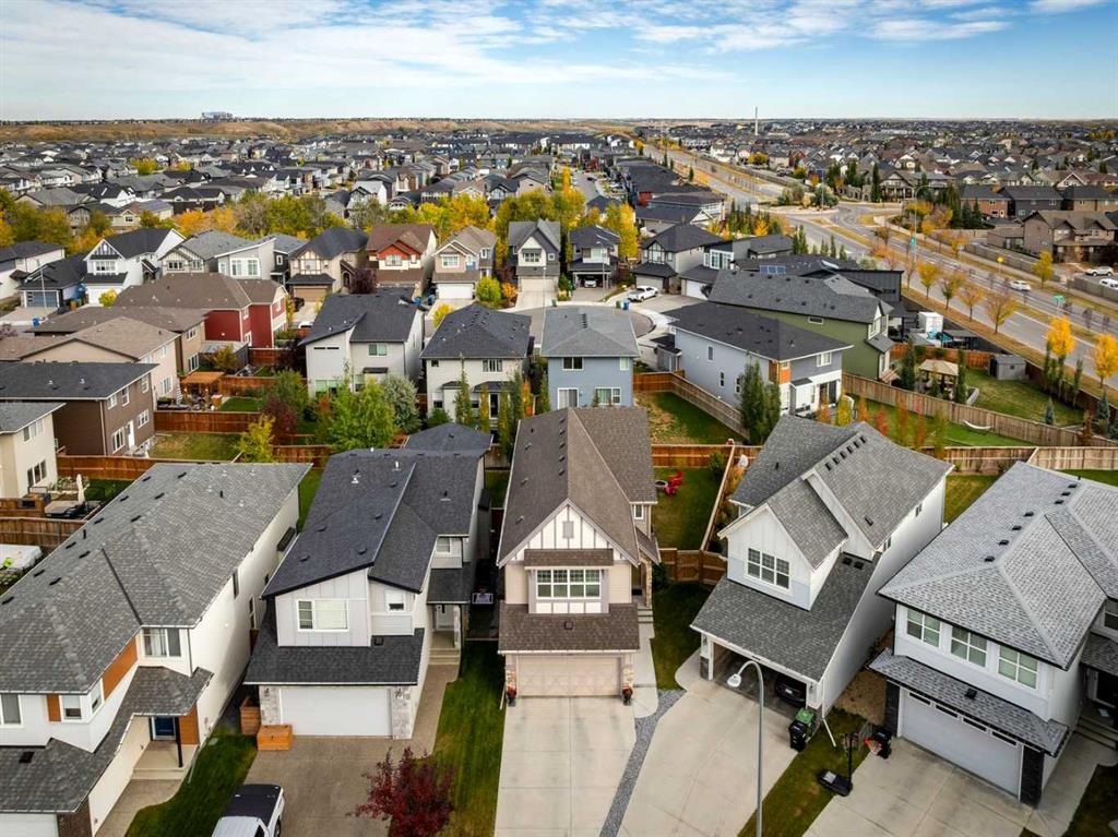 This stunning and fully developed 2-storey home with over 2,900 SQ FT of living space in Walden feels like new and is perfectly tucked away in a rare, quiet cul-de-sac, offering modern comfort, thoughtful upgrades, and exceptional build quality throughout. The main floor welcomes you with 9' ceilings, a spacious office off the front entrance, and an open-concept layout ideal for both family living and entertaining. The living room impresses with 18' vaulted ceilings, a gas fireplace, and luxury vinyl plank flooring, while the kitchen showcases quartz countertops, a large island with breakfast bar, ceiling-height cabinets, and a convenient walk-through pantry connecting directly to the garage entry. All stainless steel appliances were replaced in December 2023 at a cost of $20,000, including a Bosch fridge and dishwasher, JennAir stove and hood fan, and a Breville toaster oven/air fryer instead of a microwave, with several smart-app controls for convenience. The home also features all new light fixtures from 2023, adding to its bright and polished look. Upstairs offers a bright bonus room, a large primary suite with a five-piece ensuite including dual sinks, a soaker tub, tiled shower, and a walk-through closet leading directly to the laundry room with built-in shelving. Two additional bedrooms, both with walk-in closets, share a full bathroom with a tub/shower combo, creating a perfect family-friendly layout. The brand-new basement, completed in 2025, provides even more living space with a bedroom, full bathroom with a beautifully tiled shower, a spacious living room, oversized storage room, and luxury vinyl plank flooring throughout. Additional updates include added insulation to basement walls, CAT6 internet wiring throughout, and roughed-in A/C for future comfort. The attached double garage features high ceilings and a smart garage door opener, while a smart thermostat adds even more tech-friendly functionality inside the home. The fully fenced southeast-facing backyard is private and beautifully landscaped, featuring a built-in fire pit, gas BBQ hook-up, concrete patio, and plenty of room to relax or play. The oversized hot water tank is one year newer than the home, and custom shutters and blinds add a finishing touch throughout. Built by Homes by Avi and lovingly maintained by the original owners, this home stands out for its quality and care. Walden is one of Calgary’s most sought-after communities, offering serene parks, walking paths, playgrounds, a clear-water pond, and convenient access to amenities like grocery stores, restaurants, and services. Families will appreciate proximity to top schools, including All Saints High School, St. Sebastian Elementary, Chaparral School, St. Sebastian School, Father James Whelihan School, and Centennial High School. With fantastic neighbours, stylish finishes, smart home features, and a prime cul-de-sac location, this exceptional Walden home offers a turnkey lifestyle that’s move-in ready and truly special.