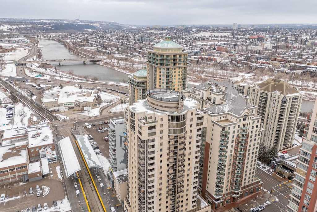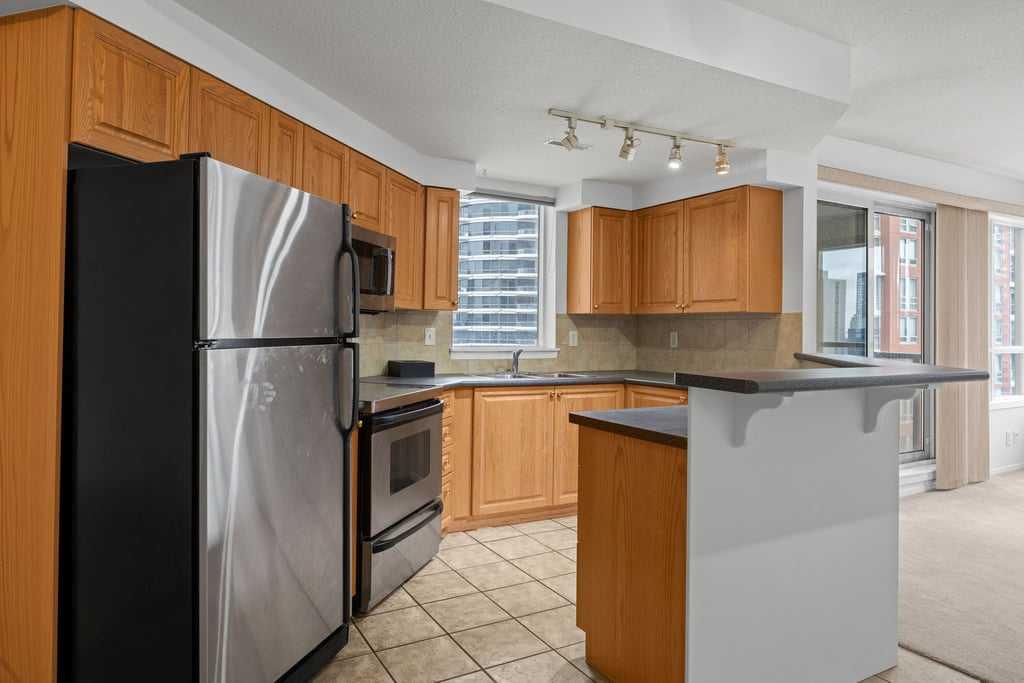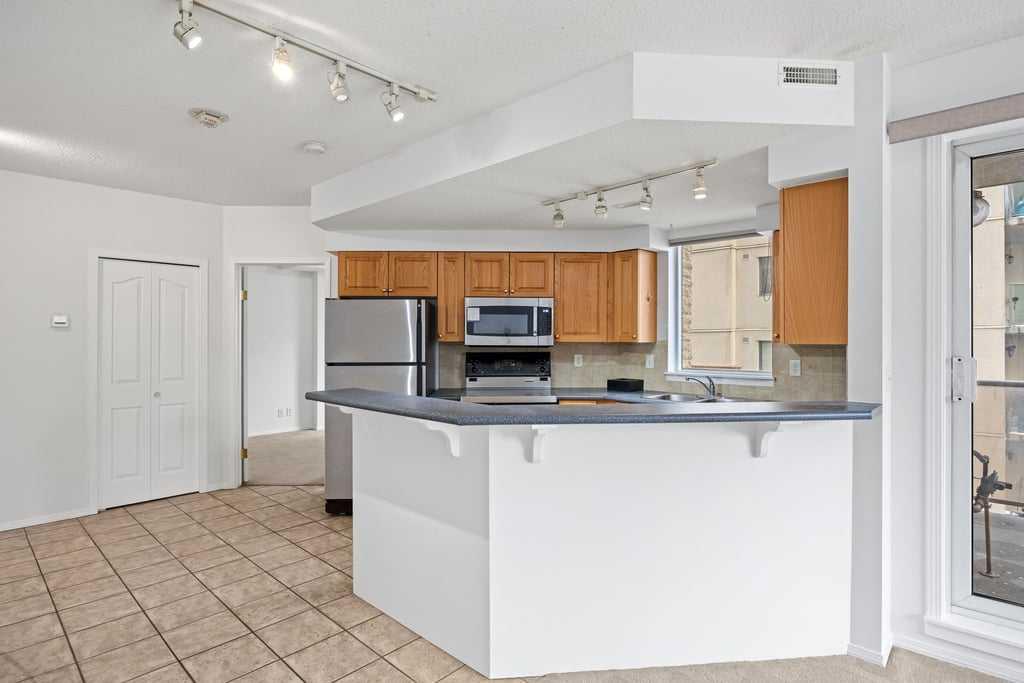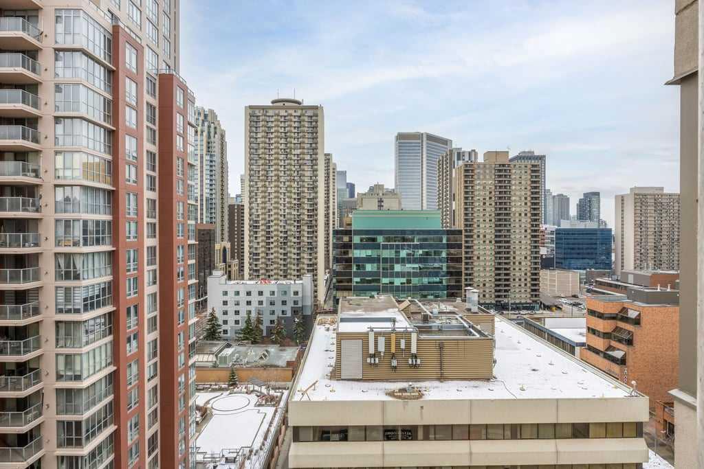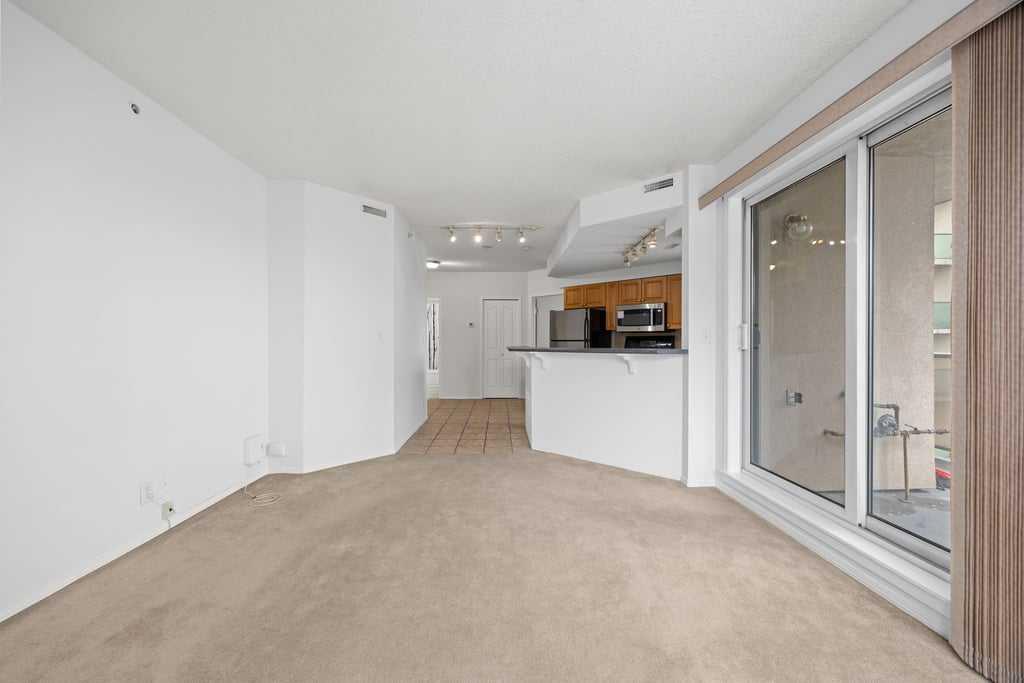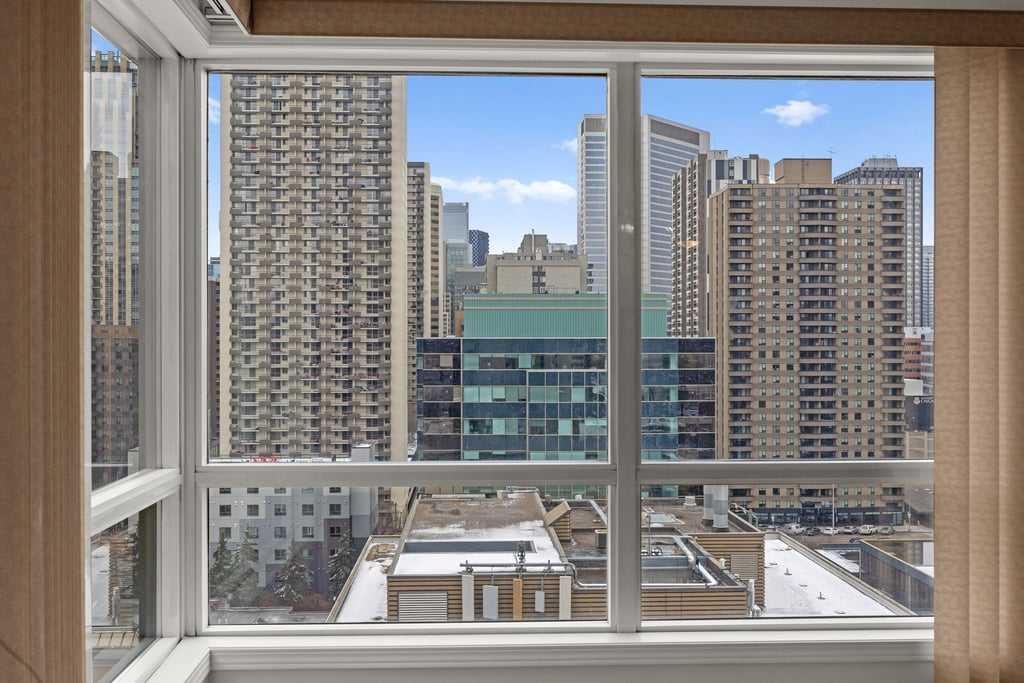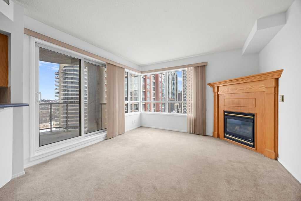 Step into a lifestyle defined by sophistication and convenience in this 747 sq ft condo in the heart of Calgary’s vibrant downtown. Perched on the 13th floor, this residence blends modern design with everyday comfort, offering the perfect balance of function and flair. The open-concept layout is bright and inviting, with large windows that draw in natural light and showcase dynamic city views. A gas fireplace adds warmth and character to the living space, while the kitchen is equipped with stainless steel appliances and a stylish breakfast bar—perfect for morning coffee or relaxed meals at home. The bedroom offers a quiet retreat with a generous walk-in closet, complemented by a versatile den that’s ideal for a home office or personal studio. A sleek bathroom adds to the polished feel, while your private balcony provides a front-row seat to the energy of downtown living. Every detail reflects the best of urban convenience and contemporary design, steps away to the LRT and direct access to the Bow River walkways. From fireside evenings to sunlit mornings on the balcony, this condo is more than a home—it’s a lifestyle upgrade.