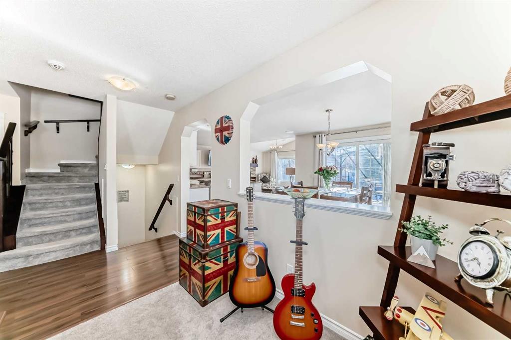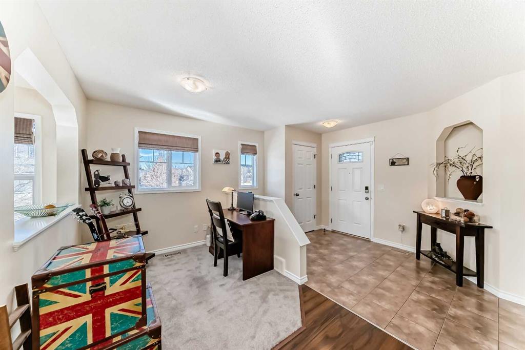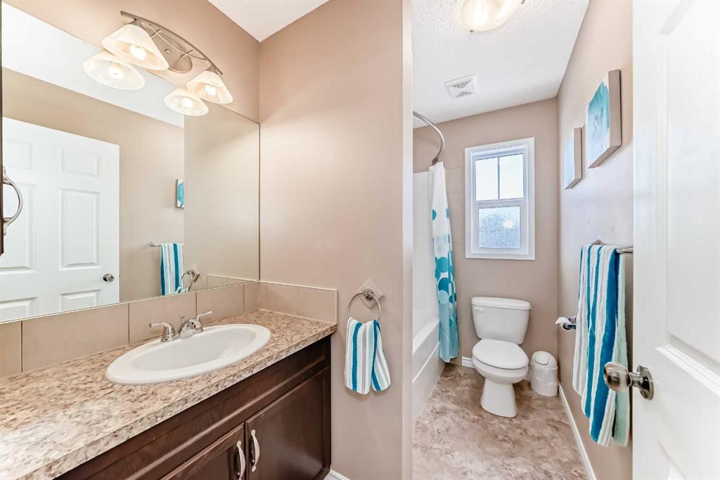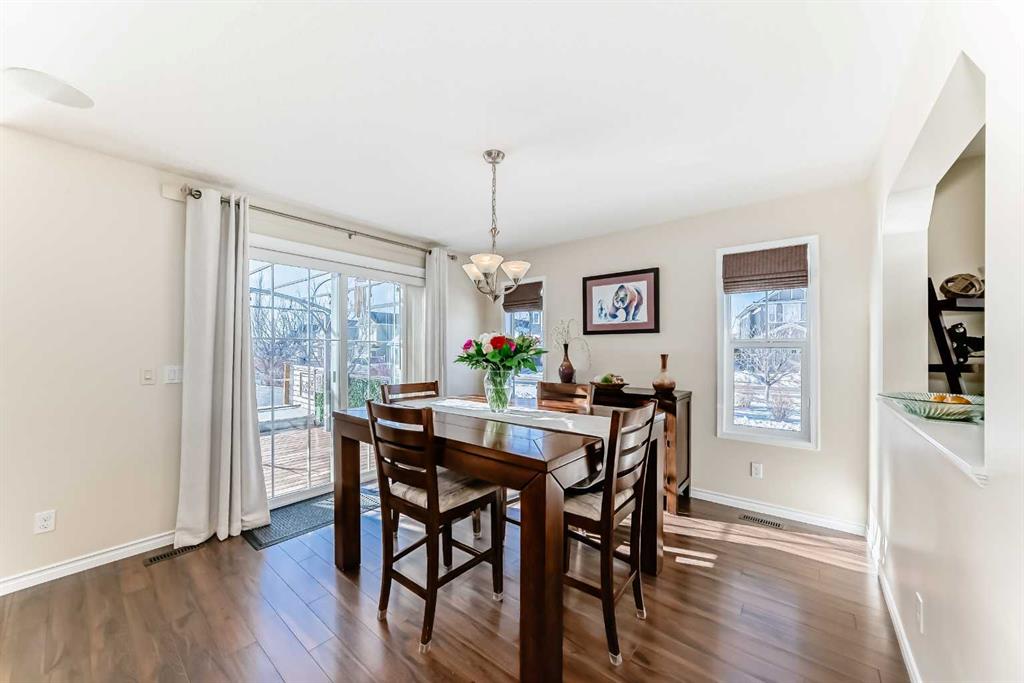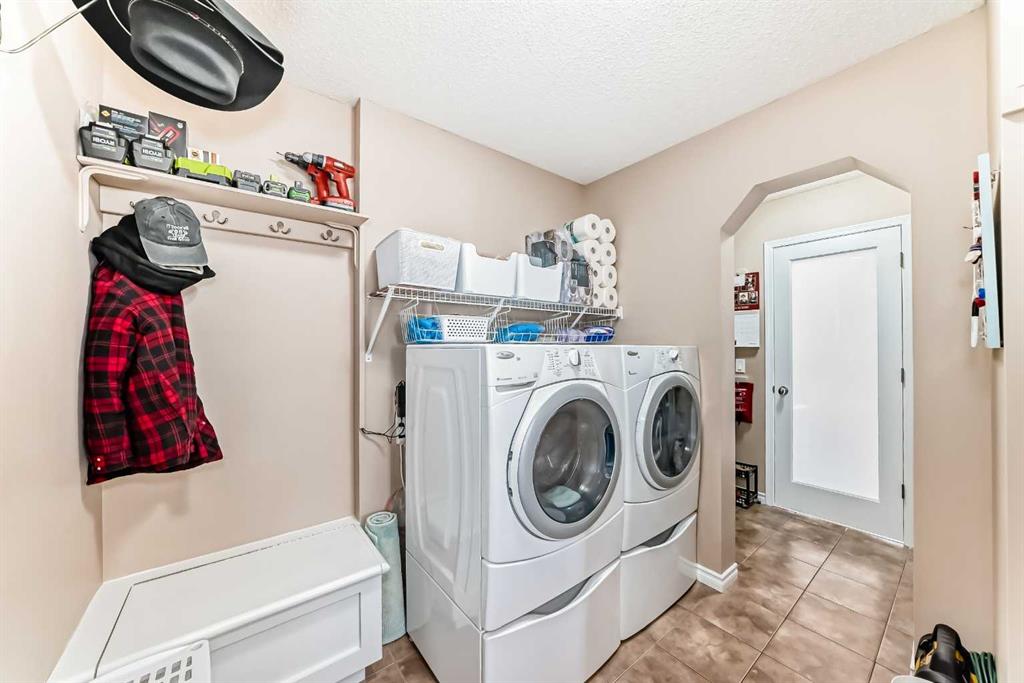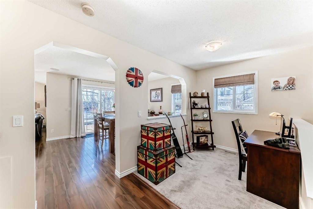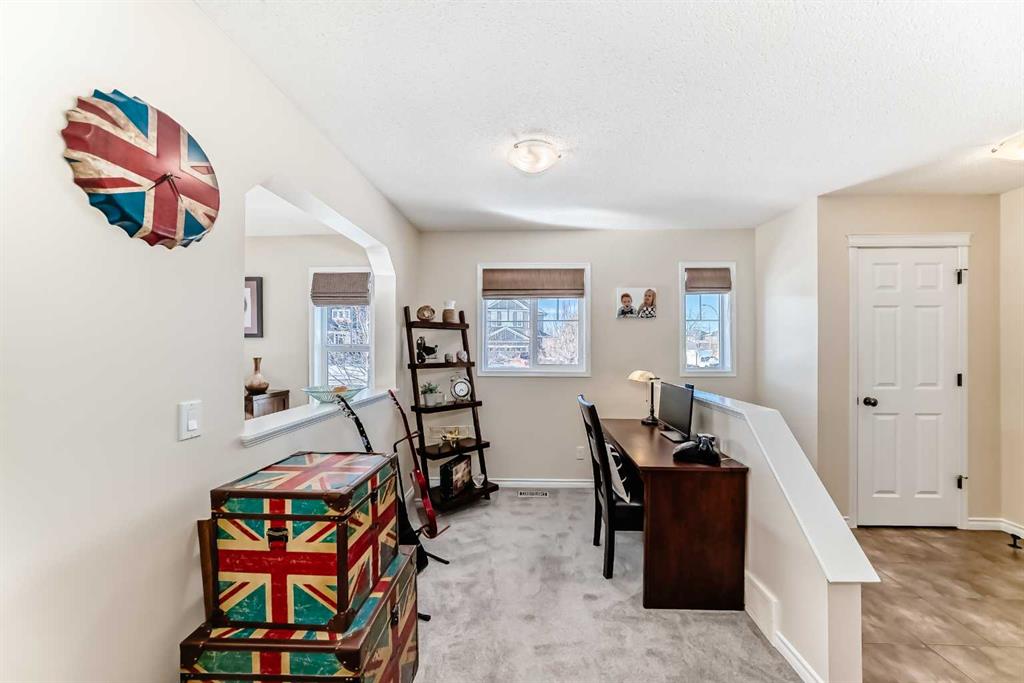 Welcome to this 4 bdrm, 3.5 bath, fully finished, immaculate one-owner home, built by Mckee Homes, in the beautiful, family-friendly, sought-after community of Ravenswood Airdrie. Situated with city greenspace to the north (no shovelling), walking paths behind, with a large sun-catching south/west-facing yard and a 2-tiered deck. With over 2,900 sq ft of finished living space and the flex/poss 5th bdrm in the basement, there is room here for a growing family. Walking in, you will love the open concept, which includes a 2-piece bath to the left, a door to the mudroom that connects to the laundry room, pantry and kitchen, and the garage entrance. Ahead is an office space, then into the open kitchen, dining and living room area. Large south/west windows fill the rooms with an abundance of natural light. The kitchen is for someone who loves to cook and entertain with modern white cabinetry, granite counters with ample counter space and an island. SS appliances, a 5-burner gas stove, a DBL Door refrigerator w water and ice maker and a large pantry make this plan ideal. The living room is vaulted and has a cozy gas fireplace with a fan and a stone front, and the dining area will fit a large table for family meals. Then through the sliding patio doors onto an extra-large 2-tiered deck w a hot tub, paved patio area with a firepit, privacy screen, extra power outlets, and a huge backyard for gardening and entertaining. Upstairs is a vaulted, bright bonus room, perfect for an extra TV room or play area for the kids. 3 bedrooms and 2 bathrooms. All the rooms are a good size, with the primary large enough to fit not only a king-size bed but also all your large bedroom furniture and your extensive wardrobe in the walk-in closet. The ensuite is very spacious with dual vanities on a long counter, a large separate shower and a soaker tub with a separate shower head. Downstairs, you will find a 4 th bdrm without a closet, another flex room with two windows that could easily be turned into a 5 th bdrm. As well as another bathroom, plus a fabulous bar and entertainment room, with a natural theme for relaxing. All TVs and TV mounts throughout the house stay, as do the hot tub, shed, bar fridge, SONOS sound system, and built-in speakers throughout the house, including both back decks, the lower deck is also fitted with low level lighting. New roof shingles in 2021, Gas hot water tank 2020, carpets upstairs 2024, built-in Telus security system that the buyer can take over, the seller is paying $25 + tax a month. The smoke detector is also linked to Telus security. This home is a one-owner home and is immaculate and feels like new inside. You will not be disappointed. It's got quick access to parks, pathways, nearby schools, and shopping at the Yankee Valley Crossing Shopping Plaza, the Kingsview Plaza Sierra Springs Plaza. Access the rest of the city and Calgary through several nearby major roadways, including Deerfoot Trail, Yankee Valley Blvd. Downtown Calgary is a 23 min drive.