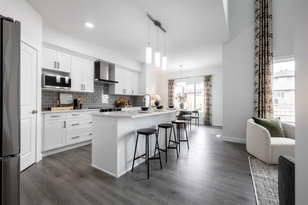 Explore new heights in Sora! This developing community in SE Calgary offers young families plenty of space and amenities toflourish. Explore the convenience of nearby urban attractions, including top-notch shopping and dining. Sora's natural wetlands and parks feature picturesque walking paths, trails, boardwalks, and waterside seating, ensuring nature is always close at hand. Plus, for those seeking more adventure, the Rocky Mountains are only an hour away! Step inside our Otis Z-24 model. With over 2000 SQFT of living space, open to below concept with railing, the Otis-Z is built with your growing family in mind. This single-family home features 3 bedrooms, 2.5 bathrooms and an expansive walk-in closet in the primary bedroom with 5 piece ensuite with double vanity, separate tub and shower. Enjoy extra living space on the main floor with the laundry room and den on the second floor. The SEPARATE ENTRANCE, open to below, 9-foot ceilings, electric fireplace and quartz countertops throughout blends style and functionality for your family to build endless memories. The back deck also include aluminum railings. **PLEASE NOTE** PICTURES ARE OF SHOW HOME; ACTUAL HOME, PLANS, FIXTURES, AND FINISHES MAY VARY AND ARE SUBJECT TO AVAILABILITY/CHANGES WITHOUT NOTICE**