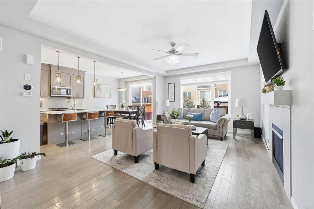 Located on a quiet street just steps from parks and scenic pathways, this beautifully upgraded family home offers nearly 2,800 sq. ft. of modern living space. The bright, open-concept main floor features hardwood flooring, 9’ ceilings, and upgraded stainless steel appliances including a spacious fridge and electric range, walk-through pantry, and large island. The main level also includes a spacious living room with gas fireplace, dining area overlooking the backyard, and a den/office. Upstairs offers 3 bedrooms, including a primary suite with walk-in closet and spa-like ensuite featuring a double vanity, walk-in shower, and soaker tub, along with upper laundry. The partially finished basement includes 2 bedrooms and 1 bathroom, with one bedroom and the bathroom fully completed, offering excellent potential for future development or extended family living. Enjoy the fully landscaped, private backyard with stamped concrete patio and gazebo, perfect for entertaining. Situated in the family-friendly South Windsong community close to schools, shopping, parks, and amenities. Move-in ready and beautifully maintained—this home is a must-see!!