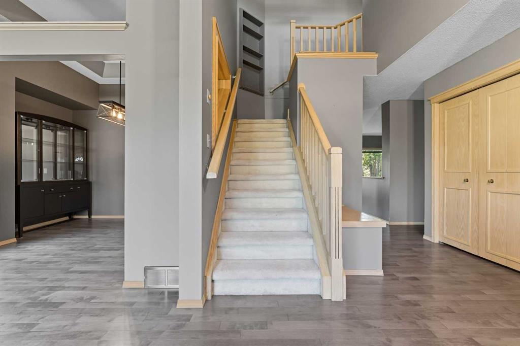 ** OPEN HOUSE, SAT, OCT. 4, 2-4PM & SUN, OCT. 5, 2-4PM ** Welcome to 135 Canterbury Court, a stunning 2-storey walkout home in the coveted community of Canyon Meadows Estates, quietly tucked away on a private cul-de-sac. Offering over 3,000 sq. ft. of finished living space, this home features 4 bedrooms, 3.5 bathrooms, and a fully developed walkout basement. Step inside to a formal living room, spacious dining room, and a grand staircase leading upstairs. The updated kitchen boasts abundant cabinetry, stainless steel appliances, and a sunny south-facing view of the backyard. A breakfast nook opens to the inviting sunken family room with custom built-ins and a cozy wood-burning fireplace. A half bath, laundry room, and access to the double garage complete the main floor. Upstairs, the owner’s retreat offers an electric fireplace, a custom walk-in closet, and a spa-inspired 4-piece ensuite with jetted tub, walk-in shower, and mosaic tile details. Two additional bedrooms and a full 4-piece bath complete this level. The walkout basement expands your living space with a family room, games/rec area, fourth bedroom, and another full bathroom. French doors open to the beautifully landscaped, pie-shaped yard with mature trees. Outdoor living is at its best here, with a large deck, built-in firepit, outdoor kitchen, and balcony. Rarely do homes in Canyon Meadows Estates come to market. This property combines privacy, space, and a prime location with quick access to Fish Creek Park, Macleod Trail, Anderson Road, and Elbow Drive. Don’t miss the chance to make this exceptional home your own.