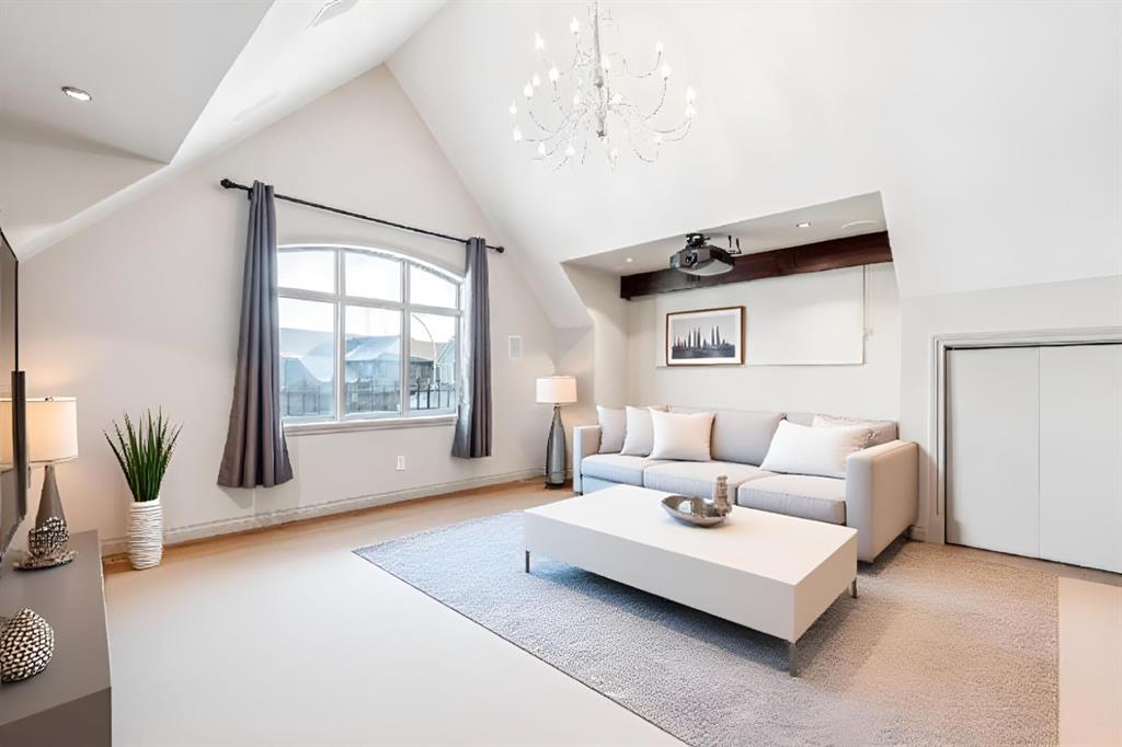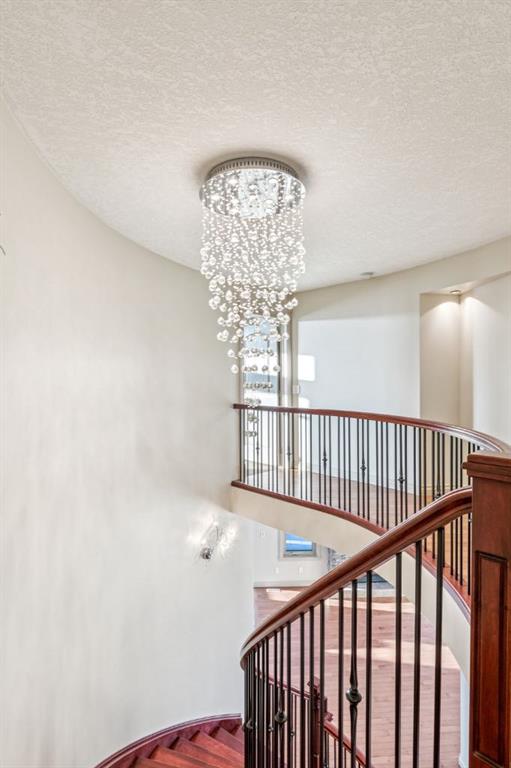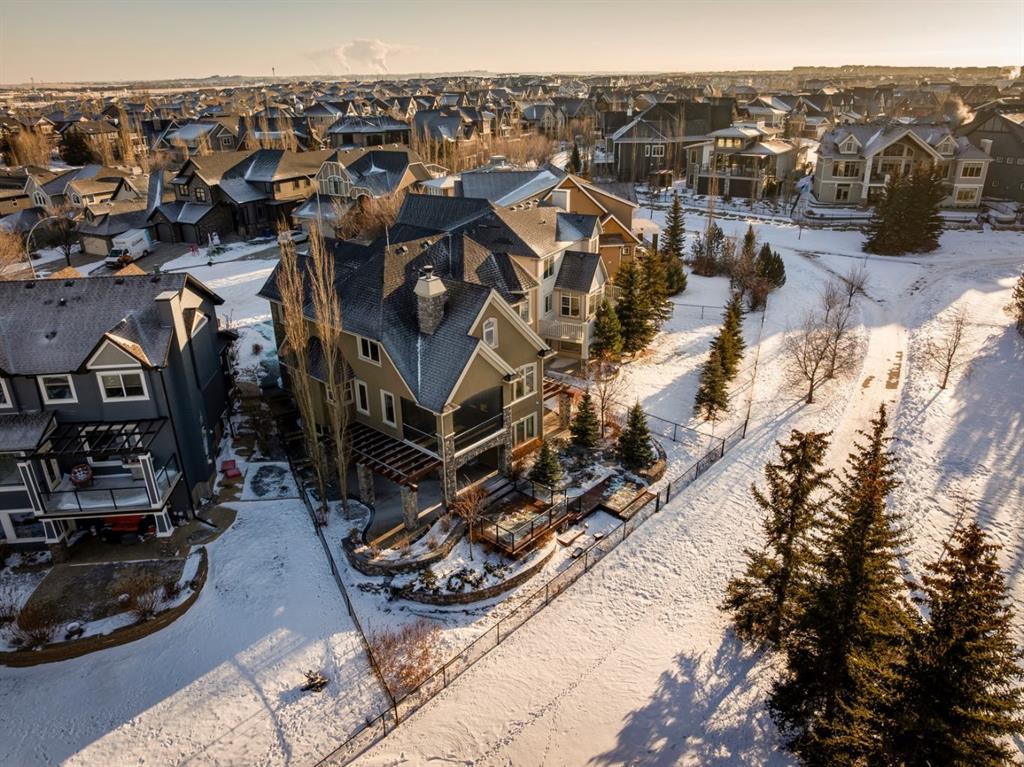 Welcome to an extraordinary custom-built, top-of-the-line geothermal estate tucked away on a quiet cul-de-sac in Airdrie’s most prestigious community—Coopers Crossing. Backing west onto green space, parks, and walking paths, this fully finished walkout home offers breathtaking sunsets, ultimate privacy, and a lifestyle few properties can match. Designed with no expense spared, this 5-bedroom, 3.5-bathroom residence blends striking architecture with leading-edge green technology, including geothermal heating & cooling, ICF foundation, tankless hot water on demand, in-floor radiant heating, and a heated oversized garage with hot & cold taps. Freshly painted in 2025, the home showcases timeless elegance with modern efficiency. Inside, you are greeted by soaring 9’ ceilings, crown molding, coffered details, extensive wall paneling, and a custom curved staircase that gracefully winds through all three levels. Rich cherry wood cabinetry, engineered hardwood, built-ins throughout, and upgraded lighting reflect exceptional craftsmanship and attention to detail. The chef’s kitchen is truly impressive, featuring high-end stainless appliances, a built-in Electrolux fridge/freezer, gas cooktop, prep sink, and an incredible Butler’s pantry with coffee station offering endless storage. Entertain effortlessly in the formal dining room or relax in the sun-filled living areas framed by expansive windows. Upstairs, the vaulted bonus room is a showstopper—complete with a full home theatre setup (projector, screen, amplifier, and subwoofer included). The primary retreat is a private sanctuary with a spa-like en suite, walk-in closet, and a separate reading/relaxation den. The fully developed walkout basement adds a home gym/craft room, additional bedrooms, bathroom, and exceptional storage. Step outside to enjoy multiple lower aggregate patios, two-tier decks, pergolas, a wood-burning exterior fireplace, and stunning professional landscaping complete with waterfall feature, stonework, underground sprinklers, and five cultured-stone retaining walls with custom caps. Additional highlights include screened-in upper balcony with gas line, exposed aggregate driveway with stamped border, central vacuum, in-ceiling speaker system, water softener, acrylic stucco exterior, and unbelievable curb appeal that feels straight out of a castle. Located in a family-friendly executive enclave, within walking distance to schools, parks, and amenities, and offering easy access out of town—this is more than a home; it’s a dream property and a rare opportunity to own one of Coopers Crossing’s finest residences. Book your private tour today and get ready to be blown away with this home’s impressive features!