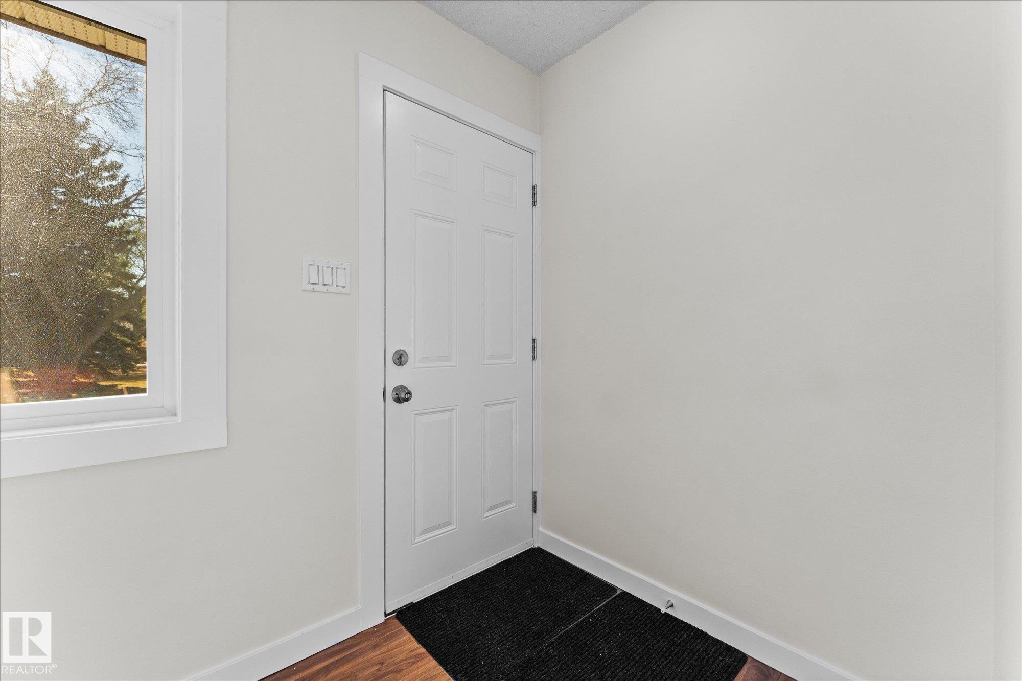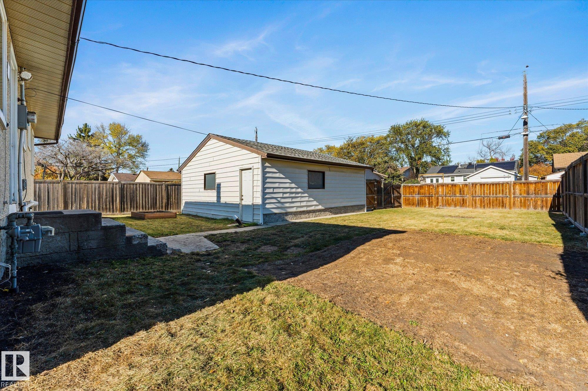Welcome to this charming 5-bedroom, 2-bathroom bungalow on a mature, tree-lined street OVERLOOKING GREENSPACE in Dovercourt! South-facing windows fill the home with natural light and overlook a beautiful treed greenspace. Major updates include a 2013 renovation with new kitchen, flooring, windows, soffits, fascia, shingles, furnace, sump pump, landscaping, and double garage doors with controls. The large living room window was replaced in 2025, and fencing in 2019. Professionally painted October 2025. The main floor features laminate flooring in the living, dining, and kitchen areas with tile in baths and carpet in bedrooms. The fully finished basement offers two bedrooms, a 4-piece bath, and laundry in the utility room. Enjoy the oversized 24’x24’ detached garage with dual doors and remotes. Large 52' x 130' lot (Small Scale Residential Zone). Excellent location with quick access to St. Albert Trail, Yellowhead, Anthony Henday, Costco, and all West Edmonton amenities. Don’t miss this one!