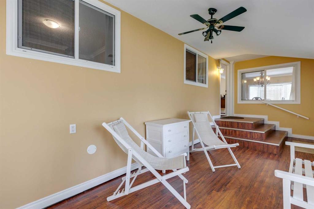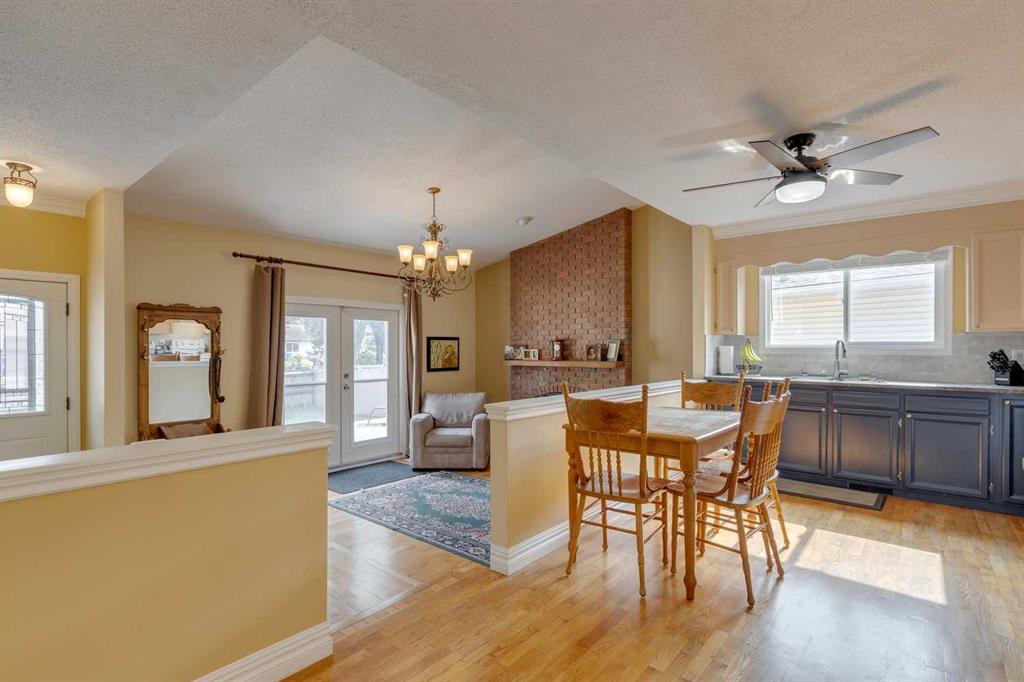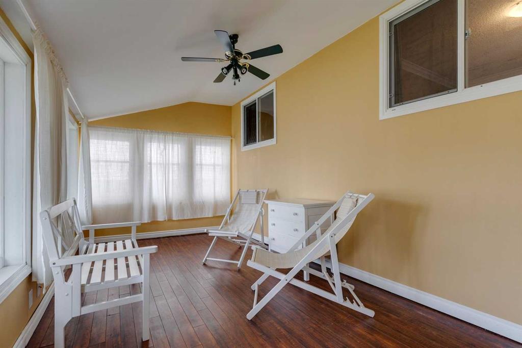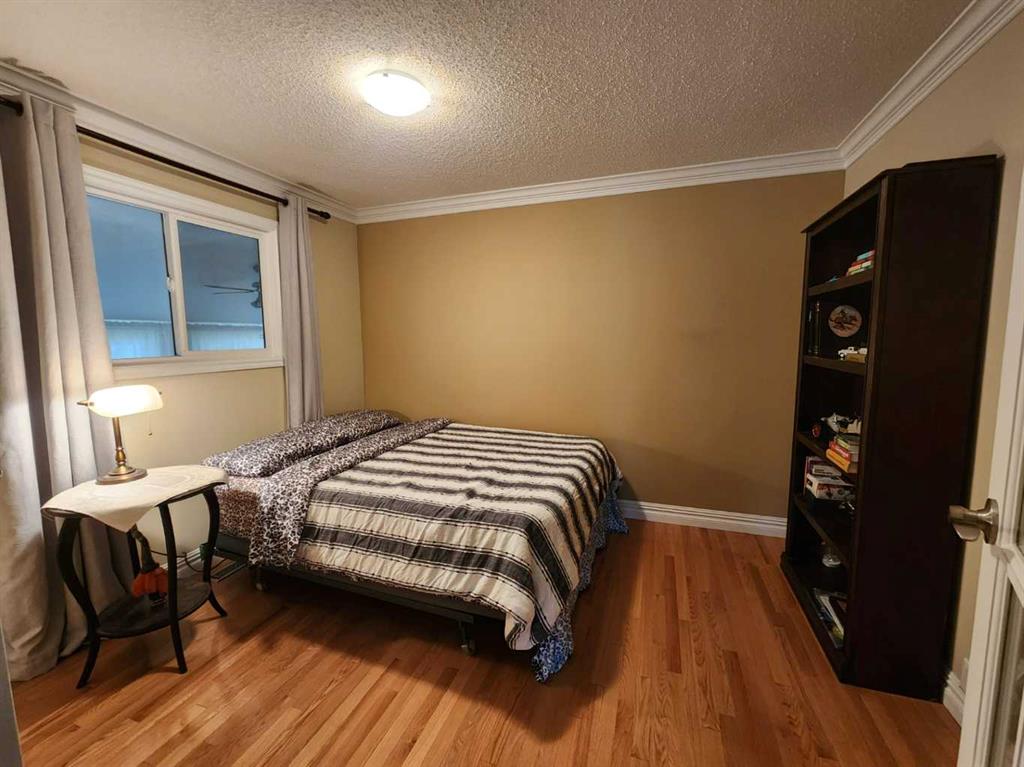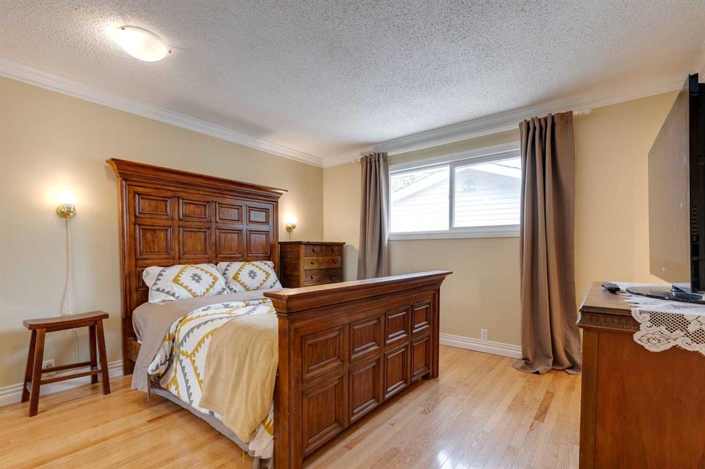 First time offered to market by long-time owner (47 years)! Built by Nu-West Homes, The Catalina bungalow is a popular plan offering 3 spacious bedrooms, living room with bay window (furnished as a dining room), formal dining room (currently being used as a family room), open to the kitchen and eating area – great for family gatherings and entertaining. Over the years the owner added a 3-season sunroom to the front of the home and fully developed the lower level with 1,175 sqft. Over 2,400 sqft of developed living space! Full size primary bedroom with 3 piece ensuite, 2 spacious bedrooms and 4 piece bathroom. There is direct access to the huge 20’x12’ deck and mature, park-like, pie-shaped 6,200 sqft lot with oversized detached double garage with lane access. The lower level is fully developed: open gym with wall sink in the rec room, family room with room for a billiard table, 4th bedroom (window not to egress) with a large walk-in closet and spa-style 4 piece bathroom (jetted soaker tub) and cedar sauna. Ideal space for multi-generational family use! Many upgrades over the last 20 years: roof, furnace, most PVC windows, hot water tank, gas fireplace insert, gleaming hardwood flooring throughout, and most recently, the front sunroom addition. Quiet street, surrounded by well-cared for homes and excellent long-time neighbors. This home has been well maintained but still offers the new owners to upgrade & personalize to their liking. Close to shopping, transit, LRT and all levels of schools.
