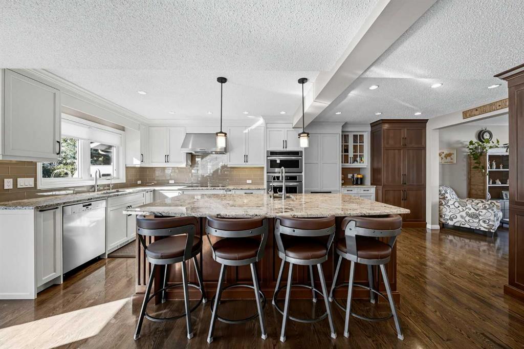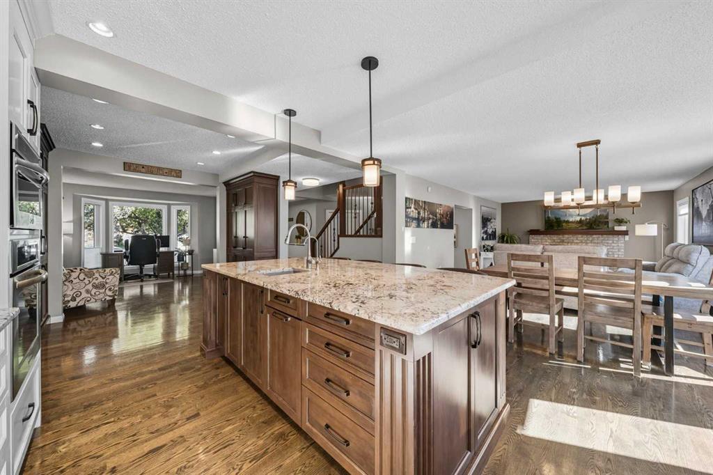 Beautifully renovated 4-Bedroom, 3-Bathroom Home in Desirable Lake Sundance! Tucked away on a quiet street in one of Calgary’s most coveted lake communities, this beautifully updated and fully developed home offers over 2,840 sq. ft. of refined living space and showcases exceptional pride of ownership. Featuring over $100,000 in high-quality upgrades, this home is truly move-in ready. Step inside to discover a chef-inspired designer kitchen with timeless cabinetry, extensive storage and pull-outs, a large island with a prep sink, and a suite of premium appliances—Miele integrated refrigerator, KitchenAid induction range (2024), built-in oven and microwave, Miele dishwasher, and a new bar fridge (2024). A new skylight (2023) and large picture windows flood the main floor with natural light, creating an inviting, open atmosphere perfect for family living and entertaining. The upper-level features three spacious bedrooms finished with rich oak hardwood flooring, including a generous primary suite with a newly renovated ensuite (2024)—one of three modernized bathrooms throughout the home. The fully finished basement provides additional versatility, offering a comfortable rec room, a fourth bedroom or flex space, and abundant storage options. Step outside to your private, beautifully landscaped backyard—a true outdoor retreat designed for relaxing or entertaining, complete with a large patio, a gorgeous stone waterfall, and BBQ area ideal for gatherings with family and friends. Additional highlights include custom blinds (2025), new washer and dryer (2024), solar-powered roof vents, high-R insulation upgrade (2023), central air conditioning, central vacuum, water filtration system, and dual-pane windows (2014). For a full list of updates, see the supplements. With every detail thoughtfully upgraded, this Lake Sundance treasure blends luxury, comfort, and functionality—offering a rare opportunity to live, relax, and play in one of Calgary’s premier lake communities. Enjoy exclusive year-round lake access, scenic walking paths, and the natural beauty of Fish Creek Park just minutes away. Families will appreciate the convenience of nearby Catholic, Public, and French Immersion schools (K–12), as well as quick access to Stoney Trail and MacLeod Trail for easy commuting. Homes of this caliber in Lake Sundance don’t come along often—book your showing today, this one won’t last!