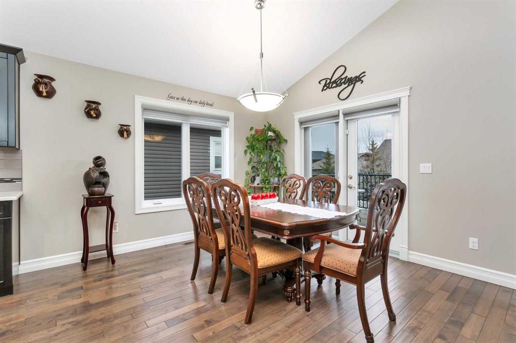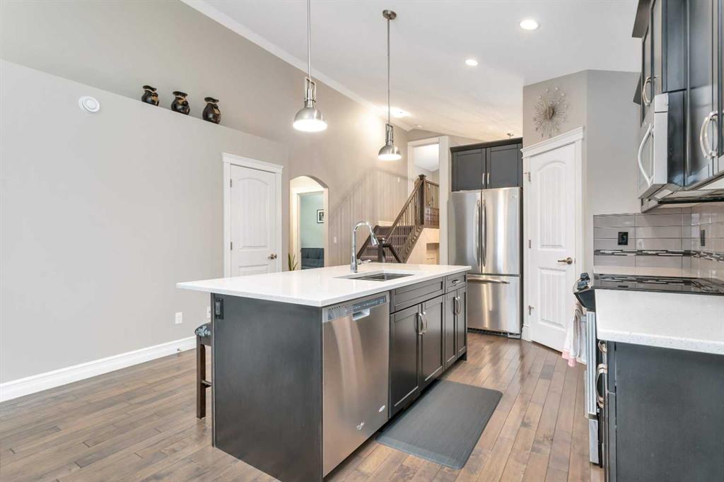 Welcome to this fully developed 5 bedroom, 3 bathroom home with a walkout basement, ideally located backing onto open green space. This well cared for property offers the perfect blend of comfort, space, and location. The main floor features a bright and open layout with beautiful hardwood flooring and large windows that bring in plenty of natural light while showcasing the peaceful views out front. The kitchen flows seamlessly into the dining and living areas, making it ideal for both everyday living and entertaining. With five spacious bedrooms and three full bathrooms, there is plenty of room for families of all sizes. The walkout basement adds even more functional living space and provides direct access to the beautifully maintained backyard. Enjoy year round comfort with air conditioning and the added luxury of in floor heating. Outside, the backyard offers a private and inviting space to relax or entertain. Located close to schools, shopping, and walking paths, this home checks all the boxes in a family friendly setting.