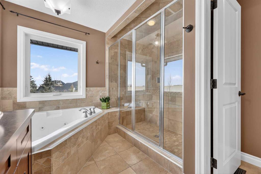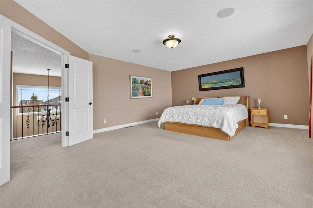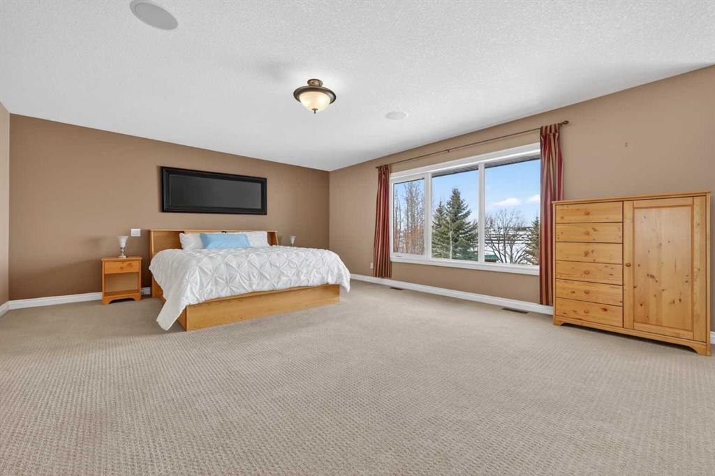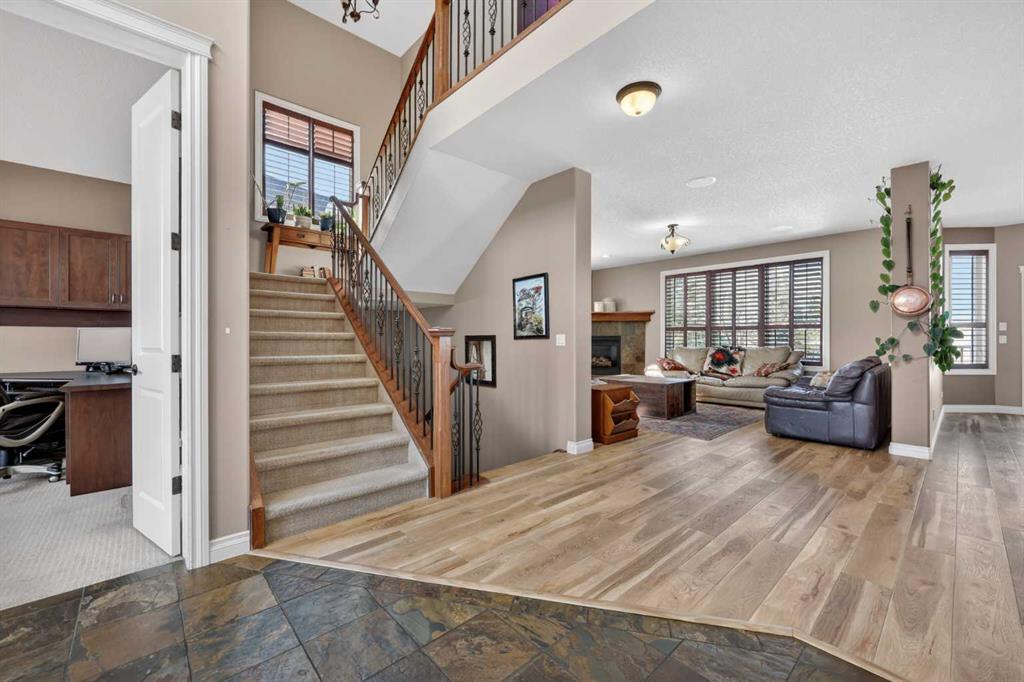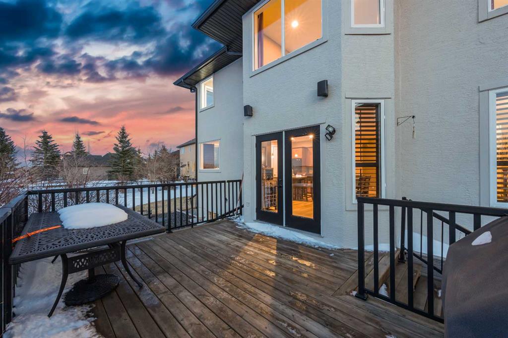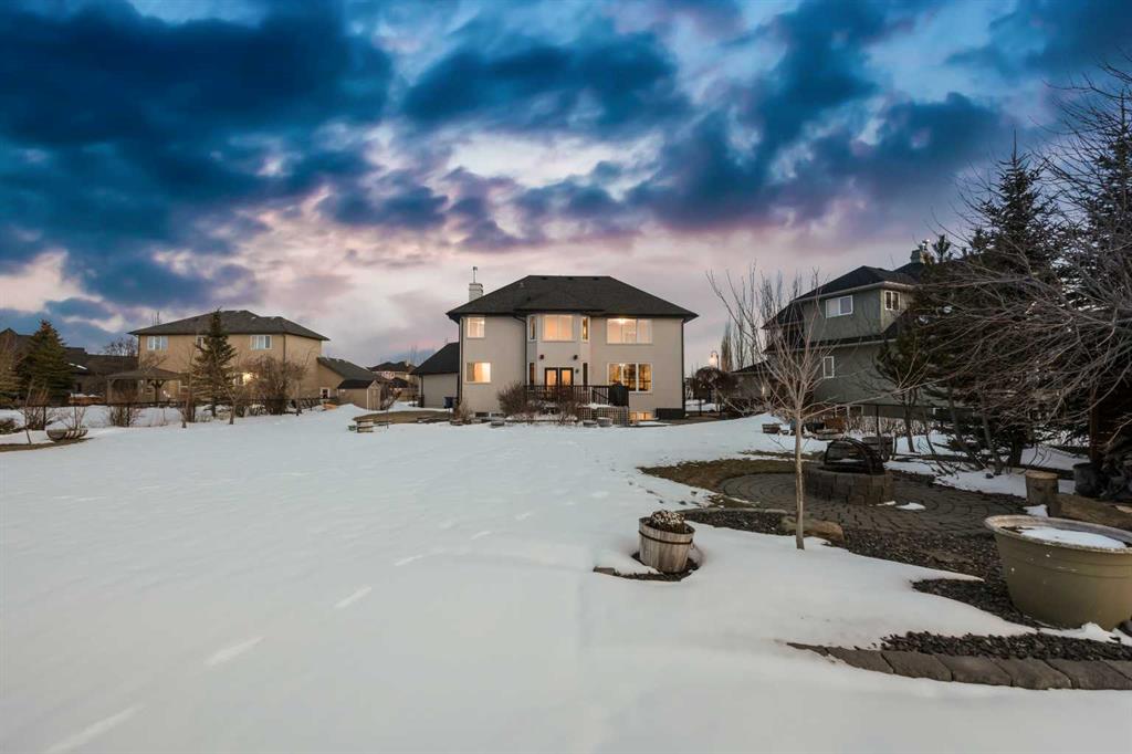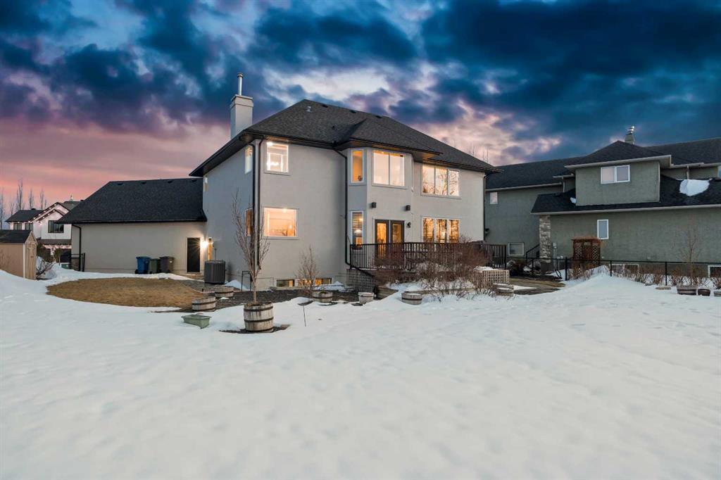 Welcome to 14 Cameron Close, an exceptional custom-built estate home tucked away in a private cul-de-sac in the prestigious Air Ranch community of Okotoks. Backing onto nothing but expansive green space and located near Crystal Ridge Golf Course, this home offers a rare blend of privacy, luxury, and natural beauty. Step inside to a grand foyer that immediately sets the tone for the scale and elegance found throughout. The main floor is thoughtfully designed with expansive living and dining areas anchored by a gas fireplace, ideal for both everyday living and entertaining. Large windows frame the surrounding greenery, filling the home with natural light. At the heart of the home, the gourmet kitchen features a striking poured concrete island, custom alder cabinetry, high-end appliances, and generous workspace. A dedicated main floor study provides the perfect home office or quiet retreat. Completing the main level is a well-appointed 2-piece powder room and a convenient laundry area, thoughtfully positioned for everyday functionality. Upstairs, the home continues to impress with a well-designed layout that balances luxury and functionality. The expansive primary suite serves as a true private retreat, featuring a generous sitting area, large windows overlooking the green space, and a spa-inspired ensuite designed for relaxation. Additional bedrooms are spacious and thoughtfully positioned, offering comfort for family or guests. The upper level also benefits from air conditioning, ensuring a cool and comfortable environment throughout the warmer months. The fully finished basement extends the living space with a large recreation and entertainment area complete with a gas fireplace, dry sauna, fourth and fifth bedroom, and a full bathroom—ideal for guests or family. The heated triple car garage is a standout feature, complete with a workshop, extensive built-in storage, and a rare adjoining gardening room for added versatility. The home also includes two furnaces, a water softener, a full sprinkler system, and a Hide-A-Hose central vacuum system with dedicated hoses on every floor and a kitchen-specific hose for effortless daily maintenance. Step outside to your private backyard oasis, designed for both relaxation and entertaining. Enjoy the new deck, slate pathways, fire pit, mature trees, and a dedicated dog run, all set against a peaceful backdrop of uninterrupted green space. The exterior has been meticulously maintained and updated with durable epoxy paint within the past 2–3 years, enhancing both curb appeal and longevity. Located in one of Okotoks' most sought-after communities, the west side of Air Ranch is synonymous with luxury estate living—offering large lots, mature trees, and a quiet, neighbourly atmosphere. This is a location that feels miles away from the city, yet remains close to all amenities. A rare opportunity to own a truly refined estate home where space, privacy, and timeless design come together seamlessly.