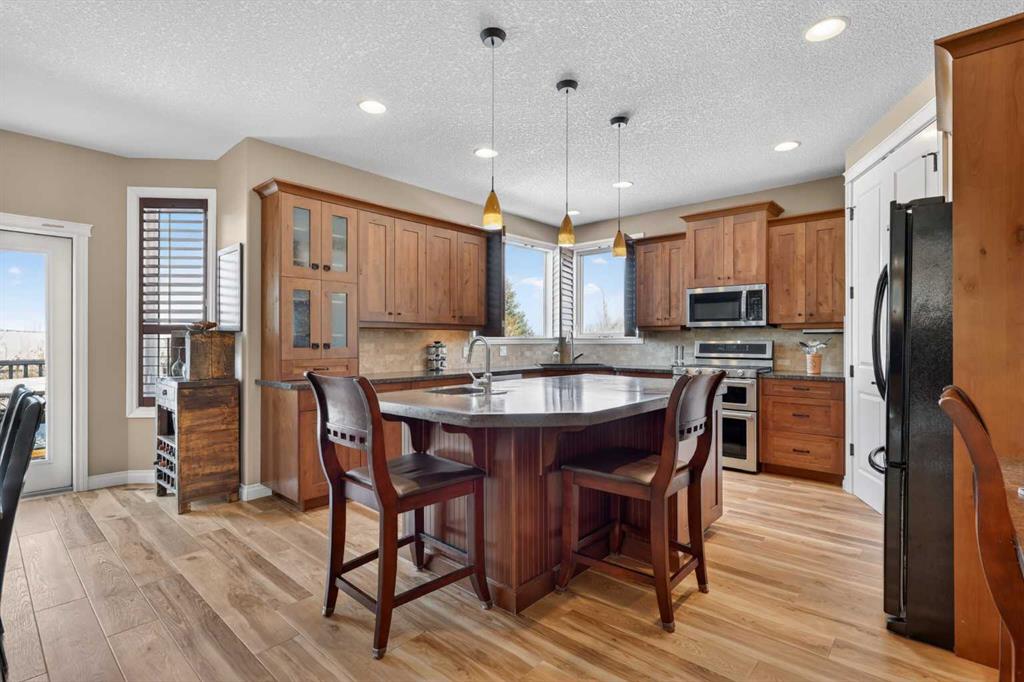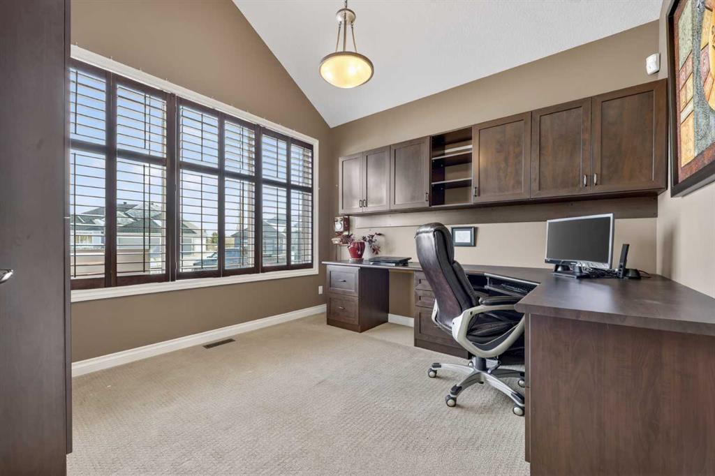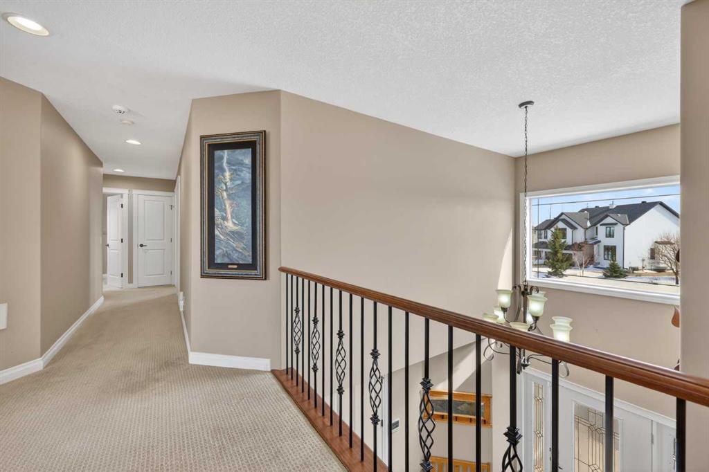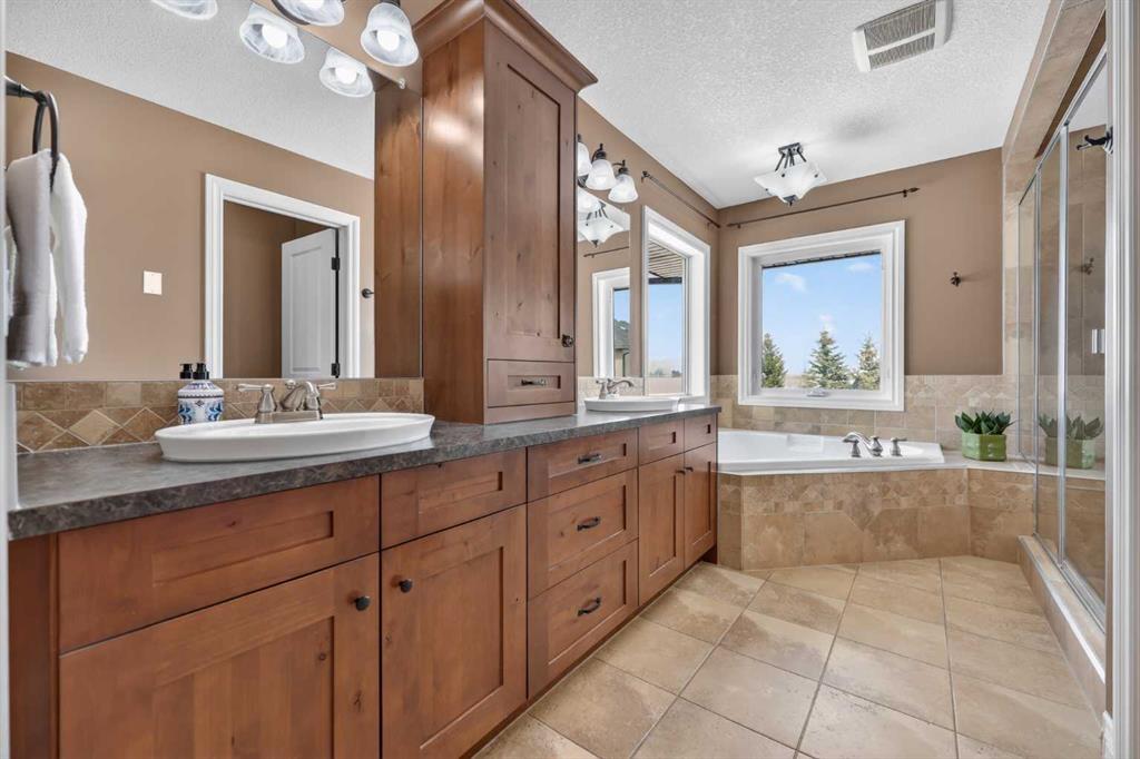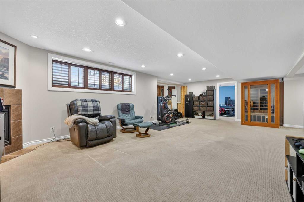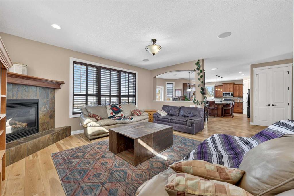 Welcome to 14 Cameron Close, an exceptional custom-built estate home tucked away in a private cul-de-sac in the prestigious Air Ranch community of Okotoks. Backing onto nothing but expansive green space and located near Crystal Ridge Golf Course, this home offers a rare blend of privacy, luxury, and natural beauty. Step inside to a grand foyer that immediately sets the tone for the scale and elegance found throughout. The main floor is thoughtfully designed with expansive living and dining areas anchored by a gas fireplace, ideal for both everyday living and entertaining. Large windows frame the surrounding greenery, filling the home with natural light. At the heart of the home, the gourmet kitchen features a striking poured concrete island, custom alder cabinetry, high-end appliances, and generous workspace. A dedicated main floor study provides the perfect home office or quiet retreat. Completing the main level is a well-appointed 2-piece powder room and a convenient laundry area, thoughtfully positioned for everyday functionality. Upstairs, the home continues to impress with a well-designed layout that balances luxury and functionality. The expansive primary suite serves as a true private retreat, featuring a generous sitting area, large windows overlooking the green space, and a spa-inspired ensuite designed for relaxation. Additional bedrooms are spacious and thoughtfully positioned, offering comfort for family or guests. The upper level also benefits from air conditioning, ensuring a cool and comfortable environment throughout the warmer months. The fully finished basement extends the living space with a large recreation and entertainment area complete with a gas fireplace, dry sauna, fourth and fifth bedroom, and a full bathroom—ideal for guests or family. The heated triple car garage is a standout feature, complete with a workshop, extensive built-in storage, and a rare adjoining gardening room for added versatility. The home also includes two furnaces, a water softener, a full sprinkler system, and a Hide-A-Hose central vacuum system with dedicated hoses on every floor and a kitchen-specific hose for effortless daily maintenance. Step outside to your private backyard oasis, designed for both relaxation and entertaining. Enjoy the new deck, slate pathways, fire pit, mature trees, and a dedicated dog run, all set against a peaceful backdrop of uninterrupted green space. The exterior has been meticulously maintained and updated with durable epoxy paint within the past 2–3 years, enhancing both curb appeal and longevity. Located in one of Okotoks' most sought-after communities, the west side of Air Ranch is synonymous with luxury estate living—offering large lots, mature trees, and a quiet, neighbourly atmosphere. This is a location that feels miles away from the city, yet remains close to all amenities. A rare opportunity to own a truly refined estate home where space, privacy, and timeless design come together seamlessly.
