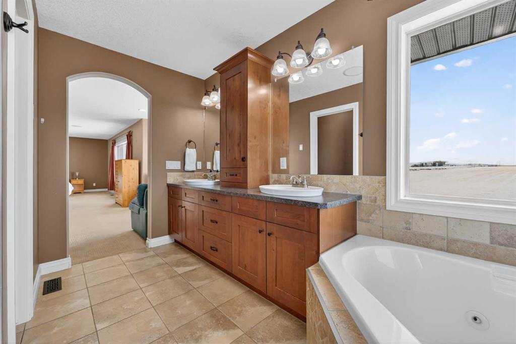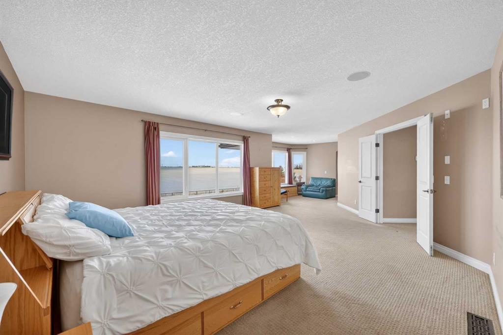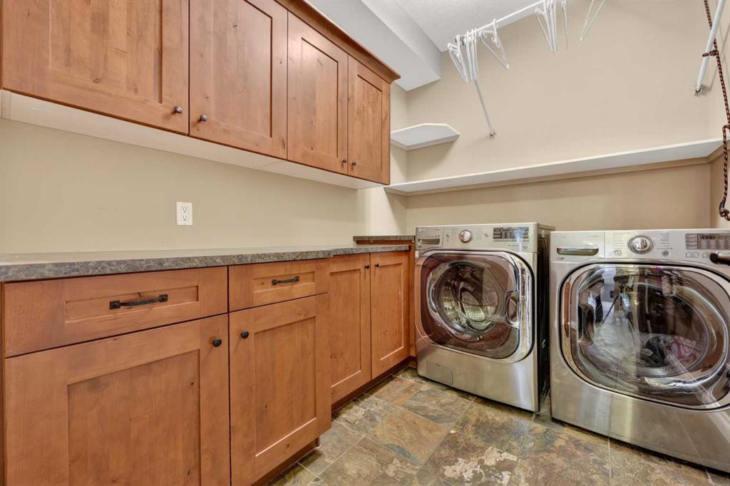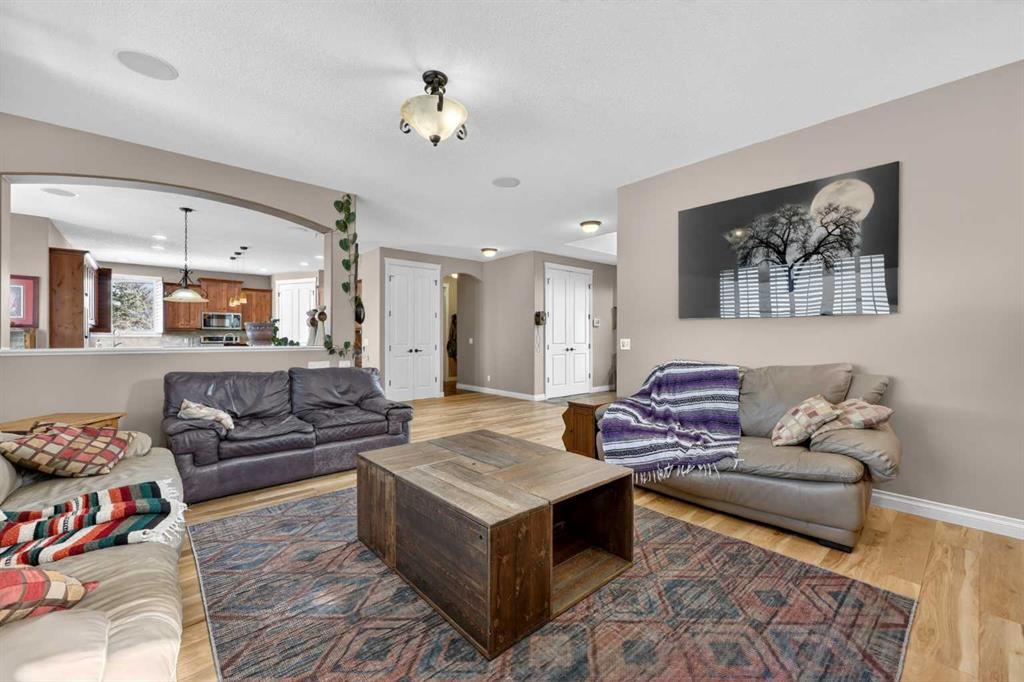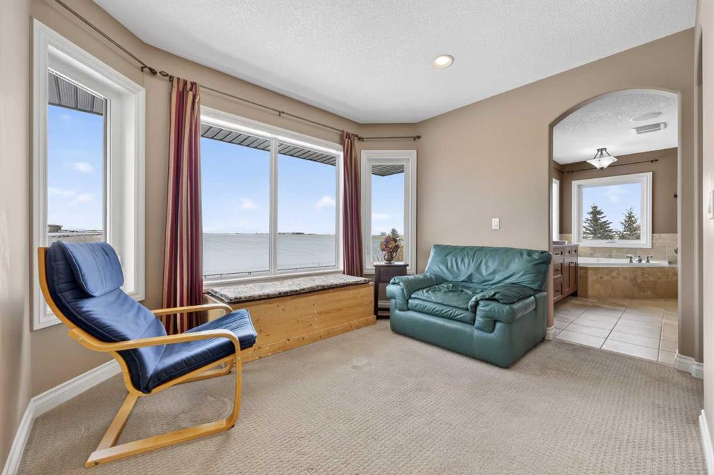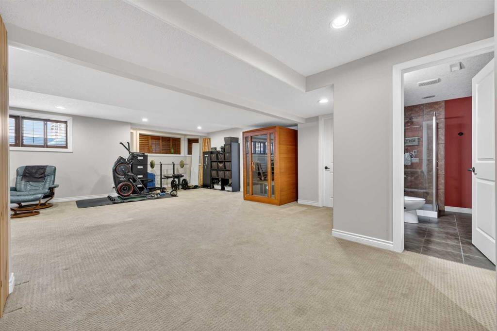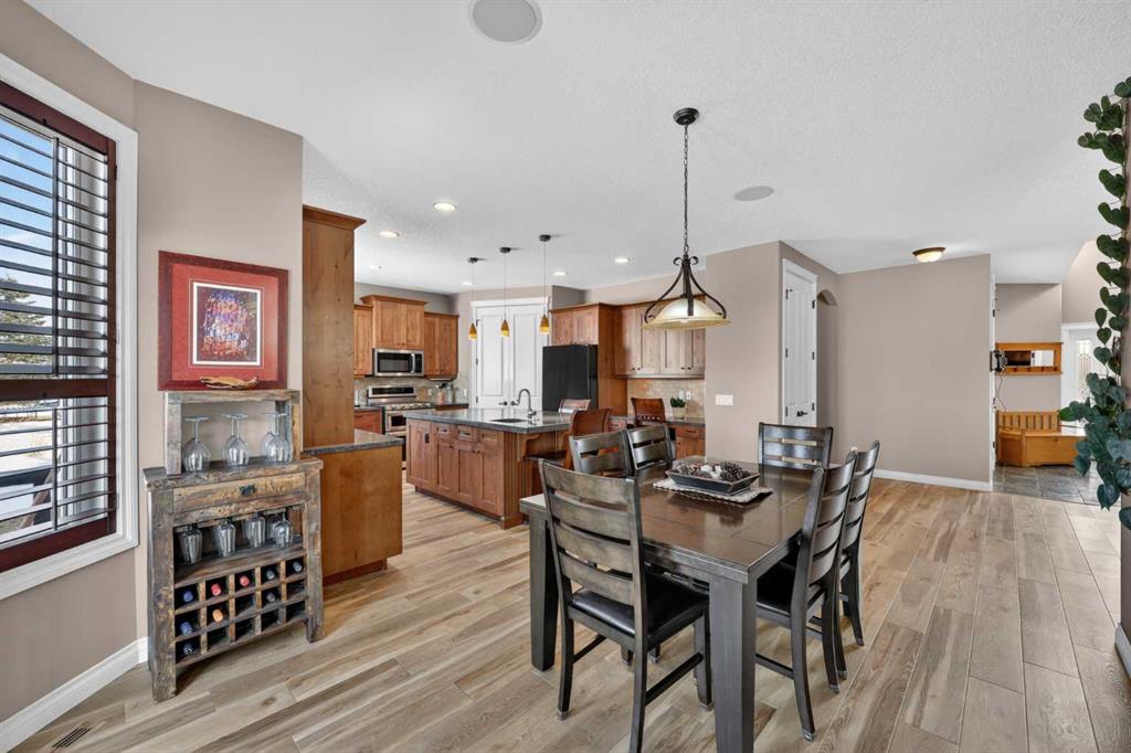 Welcome to 14 Cameron Close, an exceptional custom-built estate home tucked away in a private cul-de-sac in the prestigious Air Ranch community of Okotoks. Backing onto nothing but expansive green space and located near Crystal Ridge Golf Course, this home offers a rare blend of privacy, luxury, and natural beauty. Step inside to a grand foyer that immediately sets the tone for the scale and elegance found throughout. The main floor is thoughtfully designed with expansive living and dining areas anchored by a gas fireplace, ideal for both everyday living and entertaining. Large windows frame the surrounding greenery, filling the home with natural light. At the heart of the home, the gourmet kitchen features a striking poured concrete island, custom alder cabinetry, high-end appliances, and generous workspace. A dedicated main floor study provides the perfect home office or quiet retreat. Completing the main level is a well-appointed 2-piece powder room and a convenient laundry area, thoughtfully positioned for everyday functionality. Upstairs, the home continues to impress with a well-designed layout that balances luxury and functionality. The expansive primary suite serves as a true private retreat, featuring a generous sitting area, large windows overlooking the green space, and a spa-inspired ensuite designed for relaxation. Additional bedrooms are spacious and thoughtfully positioned, offering comfort for family or guests. The upper level also benefits from air conditioning, ensuring a cool and comfortable environment throughout the warmer months. The fully finished basement extends the living space with a large recreation and entertainment area complete with a gas fireplace, dry sauna, fourth and fifth bedroom, and a full bathroom—ideal for guests or family. The heated triple car garage is a standout feature, complete with a workshop, extensive built-in storage, and a rare adjoining gardening room for added versatility. The home also includes two furnaces, a water softener, a full sprinkler system, and a Hide-A-Hose central vacuum system with dedicated hoses on every floor and a kitchen-specific hose for effortless daily maintenance. Step outside to your private backyard oasis, designed for both relaxation and entertaining. Enjoy the new deck, slate pathways, fire pit, mature trees, and a dedicated dog run, all set against a peaceful backdrop of uninterrupted green space. The exterior has been meticulously maintained and updated with durable epoxy paint within the past 2–3 years, enhancing both curb appeal and longevity. Located in one of Okotoks' most sought-after communities, the west side of Air Ranch is synonymous with luxury estate living—offering large lots, mature trees, and a quiet, neighbourly atmosphere. This is a location that feels miles away from the city, yet remains close to all amenities. A rare opportunity to own a truly refined estate home where space, privacy, and timeless design come together seamlessly.